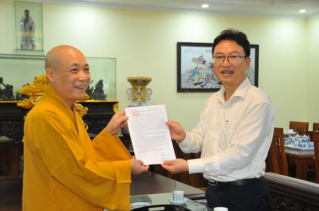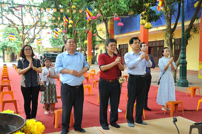 Nhân dịp này, các phái đoàn Đảng ủy – HĐND - UBND – UBMTTQVN quận Hoàng Mai, phường Hoàng Liệt đã tới thăm chùa, lễ Phật và chúc mừng Hòa thượng Thích Bảo Nghiêm.