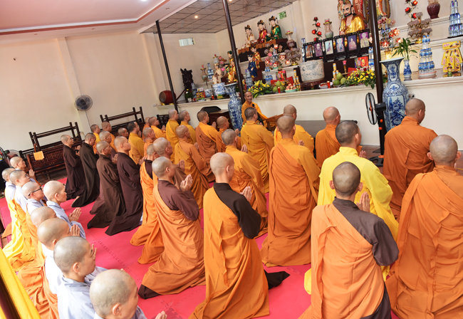 Chư Tôn đức trường hạ làm lễ trước Tam bảo