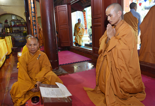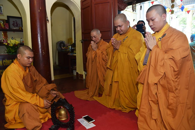 Các vị Sa di làm lễ chào xin phép tòng tăng an cư