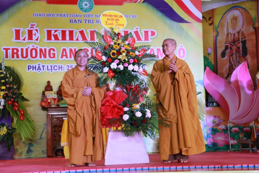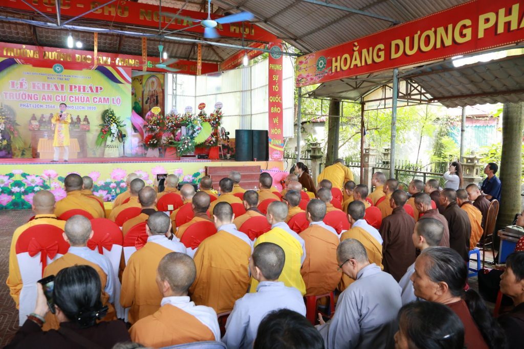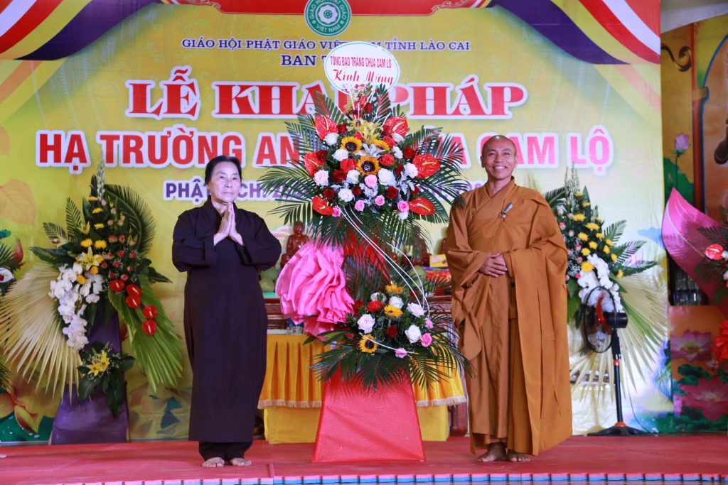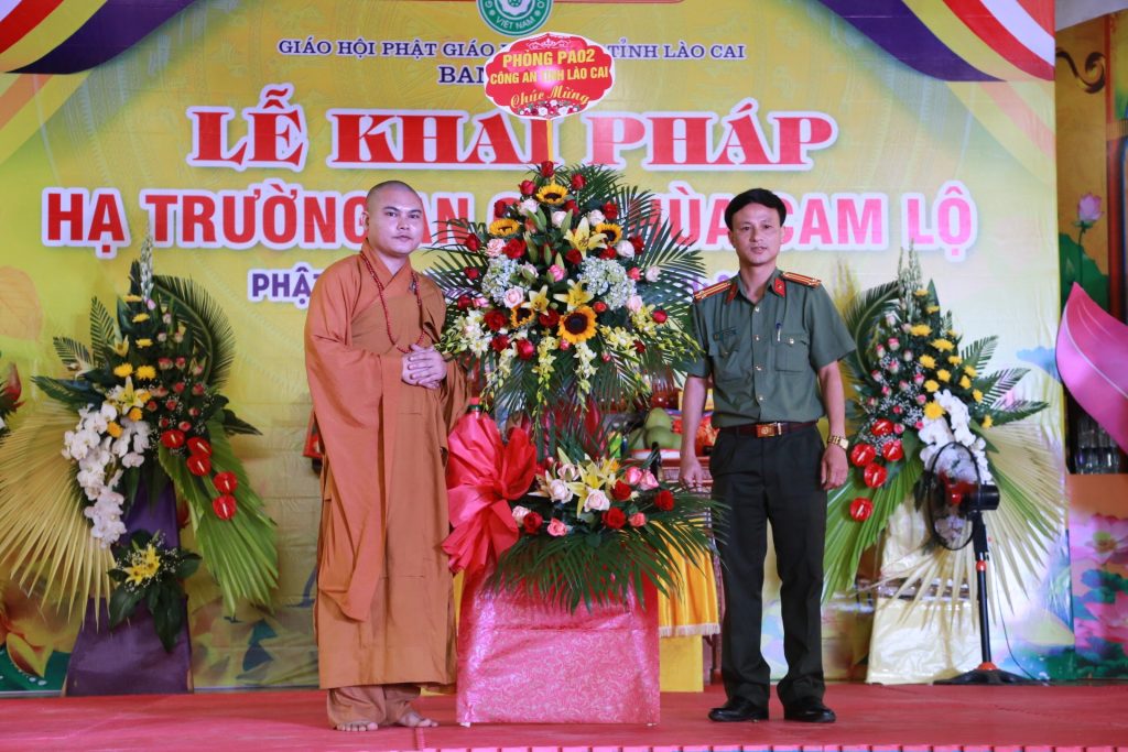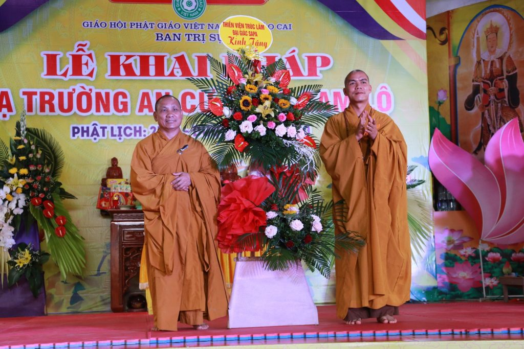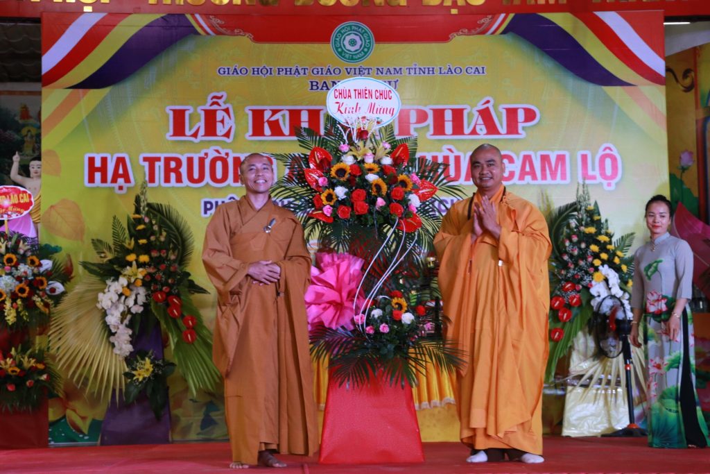 Buổi lễ khai pháp dưới sự chứng minh và chủ trì của HT.Thích Thanh Điện - Phó Tổng thư ký HĐTS, Chánh văn phòng I TƯ GHPGVN, Trưởng BTS GHPGVN tỉnh Lào Cai, Đường chủ hạ trường chùa Cam Lộ; TT. Thích Tâm Thuần - Ủy viên Ban Hoằng pháp TƯ, Phó BTS GHPGVN tỉnh Lào Cai; ĐĐ.Thích Chân Tín - Phó ban Ban HDPT TƯ, Phó BTS GHPGVN tỉnh Lào Cai, Chánh Duy-na hạ trường cùng chư Tôn đức và các vị cư sĩ trong BTS GHPGVN tỉnh Lào Cai.