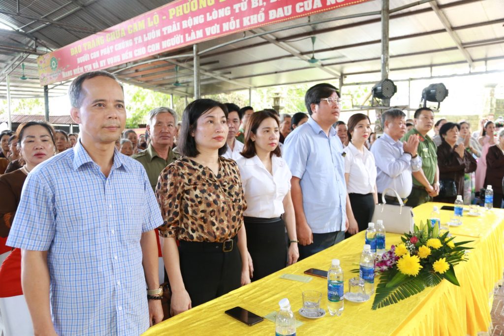 Đại diện chính quyền tham dự có bà Bàn Thanh Thảo - Phó Chủ tịch MTTQ tỉnh Lào Cai; ông Trần Phùng - Phó ban dân tộc tỉnh Lào Cai; ông Vũ Trọng Khuynh - Trưởng BTG tỉnh Lào Cai cùng các vị đại biểu các cơ quan ban ngành chức năng trong tỉnh Lào Cai, TP. Lào Cai, P. Bình Minh tín đồ Phật tử đạo tràng các chùa trong toàn tỉnh cùng về tham dự.