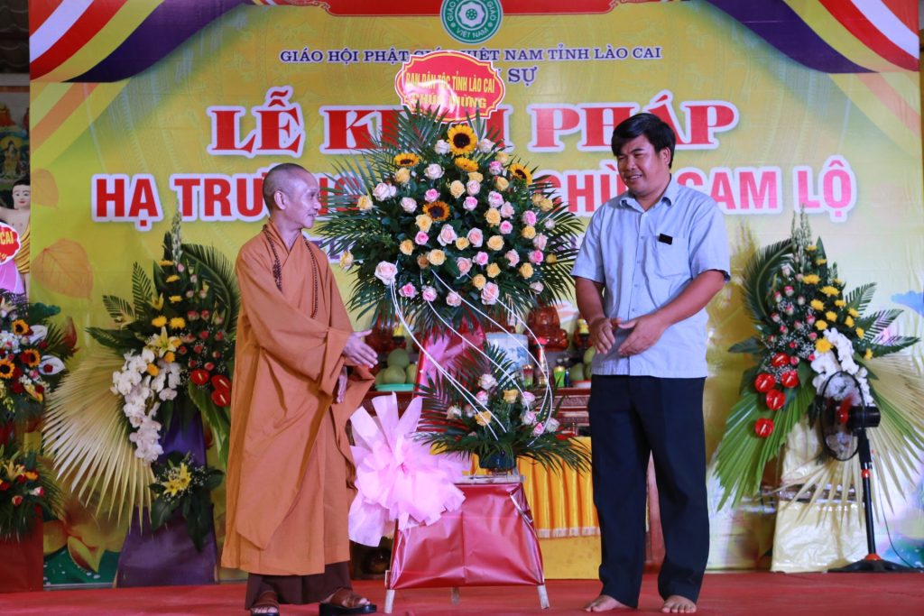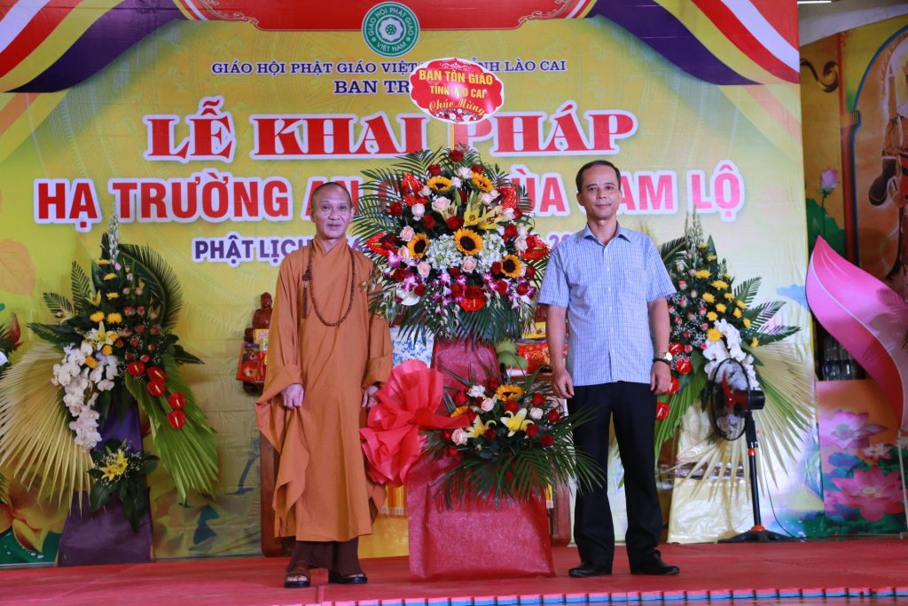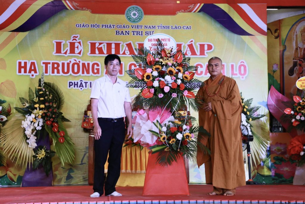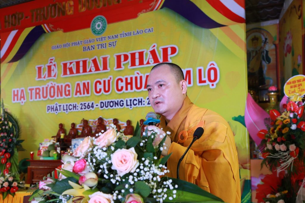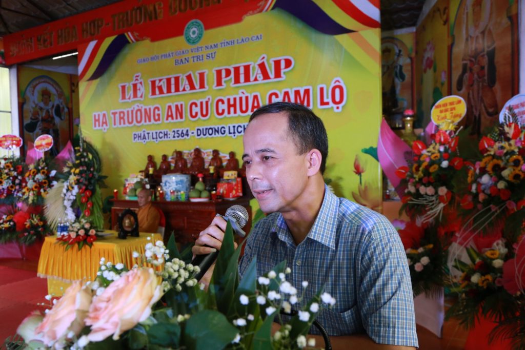 Tại buổi lễ ông Vũ Trọng Khuynh - Trưởng BTG tỉnh Lào Cai đại diện lãnh đạo chính quyền tỉnh phát biểu, ông bày tỏ mong muốn Tăng đoàn luôn hòa hợp và cùng đồng hành với dân tộc, thực hiện tốt mọi công tác Phật sự, hướng dẫn cho các đạo tràng Phật tử tu tập tinh tấn.