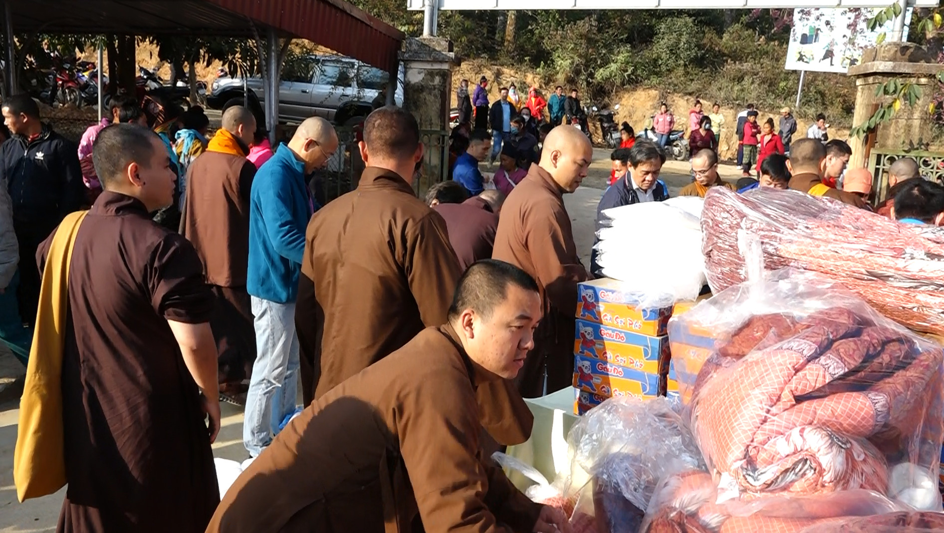Tham dự buổi phát quà có: TT. Thích Đức Thiện - Phó chủ tịch Tổng thư ký HĐTS, Trưởng BTS Phật giáo tỉnh Điện Biên; cùng các cấp chính quyền địa phương.
