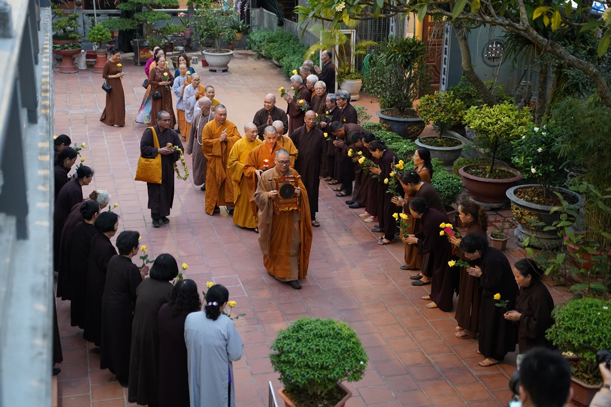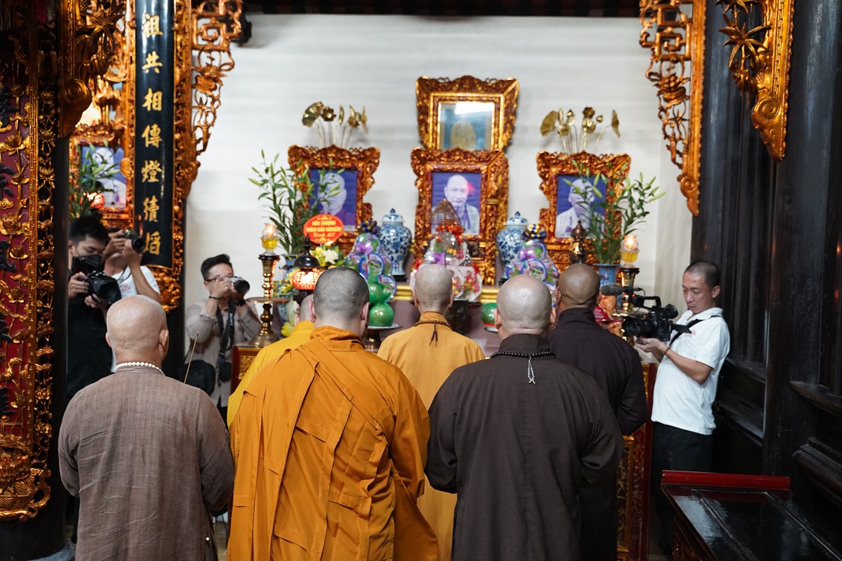 Tại nơi đây, Đức Đệ tứ Pháp chủ GHPGVN cùng chư vị Hòa thượng Thích Bảo Nghiêm - Phó Chủ tịch Hội đồng Trị sự, Trưởng ban Hoằng pháp T.Ư, Trưởng ban Trị sự GHPGVN TP.Hà Nội; Hòa thượng Thích Quảng Hà - Phó Chủ tịch Hội đồng Trị sự, Trưởng ban Trị sự GHPGVN tỉnh Nam Định; Thượng tọa Thích Giác Dũng - Thư ký Văn phòng II Hội đồng Chứng minh; Thượng tọa Thích Thanh Phong - Phó Chủ tịch Hội đồng Trị sự, Trưởng ban Kinh tế - Tài chính T.Ư cùng cùng chư Thượng tọa Văn phòng Đức Pháp chủ, Ban Trị sự các tỉnh phía Bắc đã lễ Phật, dâng hương lễ Tổ tại Tổ đường.