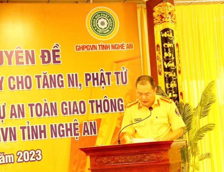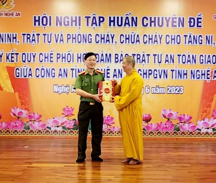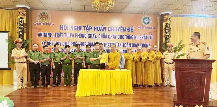 PSO - Sáng ngày 21/06/2023 (nhằm ngày 04/05 năm Qúy Mão), tại Trụ sở Tỉnh hội – Chùa Diệc, phường Quang Trung, thành phố Vinh đã trọng thể khai mạc Hội nghị tập huấn chuyên đề an ninh trật tự và phòng cháy chữa cháy, ký kết quy chế phối hợp đảm bảo trật tự an toàn giao thông giữa Ban Trị sự GHPGVN tỉnh với Công an tỉnh.