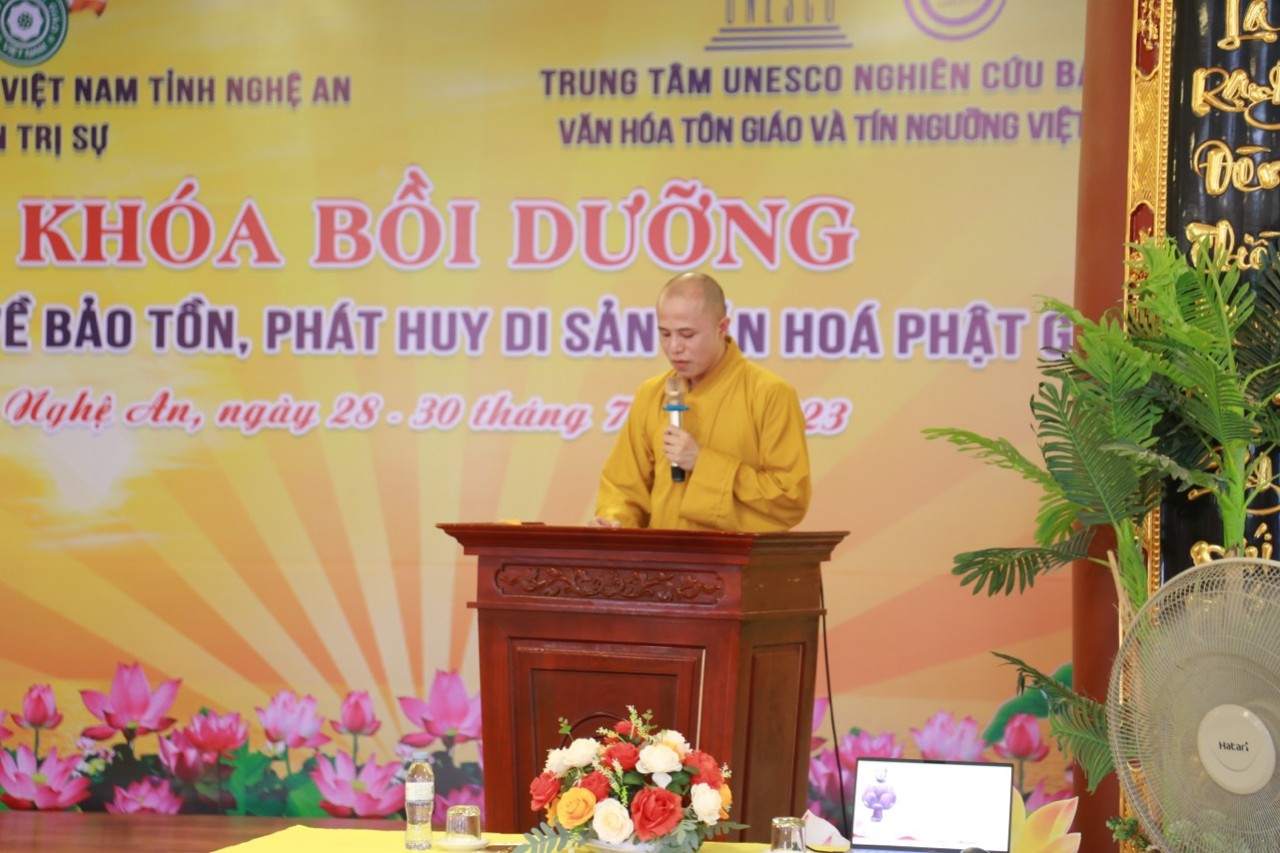 Thông tin từ Ban Tổ chức cho biết khóa bồi dưỡng diễn ra trong 3 ngày, từ ngày 28 đến ngày 30/07 với các chủ đề: Di sản văn hóa và đặc trưng Di sản văn hóa Phật giáo Việt Nam; Di sản văn hóa và những vấn đề liên quan đến công tác bảo tồn, gìn giữ và phát huy các giá trị văn hóa, di sản văn hóa Phật giáo; Hiện trạng công tác bảo tồn các giá trị văn hóa, di sản văn hóa Phật giáo, những thách thức và phương pháp tiếp cận tại Việt Nam hiện nay.