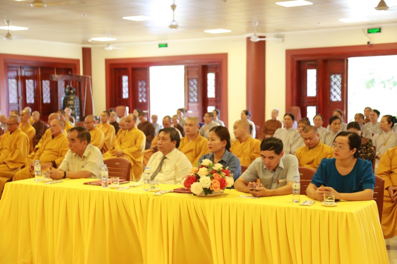 Tham dự và chứng minh buổi lễ HT. Thích Thanh Nhiễu - Phó Chủ tịch Thường trực HĐTS GHPGVN, Trưởng ban BTS GHPGVN tỉnh Nghệ An; HT. Thích Thọ Lạc - Trưởng ban Văn hóa Trung ương GHPGVN, Phó ban Thường trực BTS GHPGVN tỉnh; ĐĐ. Thích Tâm Thành - Chánh Thư ký BTS GHPGVN tỉnh; ĐĐ. Thích Minh Hải - Chánh văn phòng BTS GHPGVN kiêm Trưởng ban Văn hóa BTS GHPGVN tỉnh; ĐĐ. Thích Châu Phong - Phó chánh Văn phòng BTS GHPGVN tỉnh; ĐĐ. Thích Định Tuệ - Trưởng ban TTTT BTS GHPGVN tỉnh; cùng chư Tôn đức Tăng Ni, Phật tử tiêu biểu trong BTS GHPGVN tỉnh đồng tham dự.