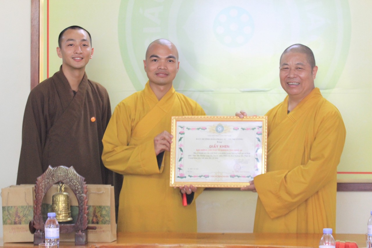 Đại diện Ban Hướng dẫn Phật tử tỉnh, Đại đức Thích Minh Hải đã gửi lời tri ân đến Hòa thượng Thích Thọ Lạc và đoàn đã quan tâm, giúp đỡ và đến chúc mừng Ban Hướng dẫn Phật tử tỉnh.