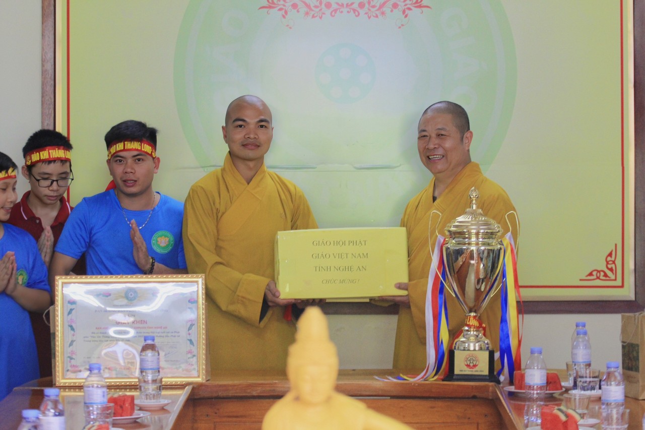 Tại buổi gặp mặt đại diện đoàn đến thăm, ông Nguyễn Văn Long Quyền đã gửi lời chúc mừng và biểu dương đến Ban Hướng dẫn Phật tử Nghệ An tham dự Hội trại đã cùng nhau đoàn kết chung sức đồng lòng, phát huy tin thần trí tuệ của người con Phật tiến lên giành cúp vàng tại Hội trại.