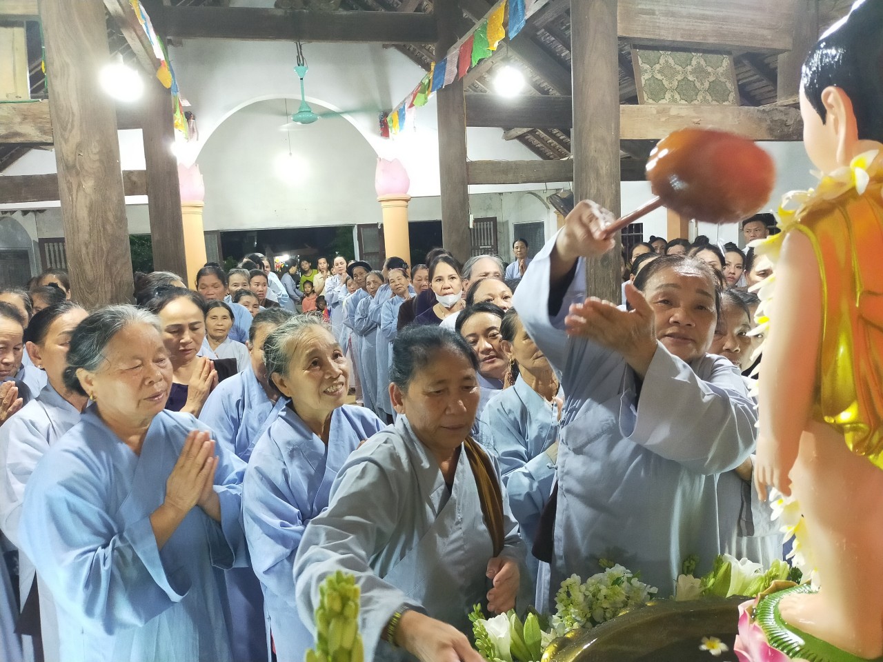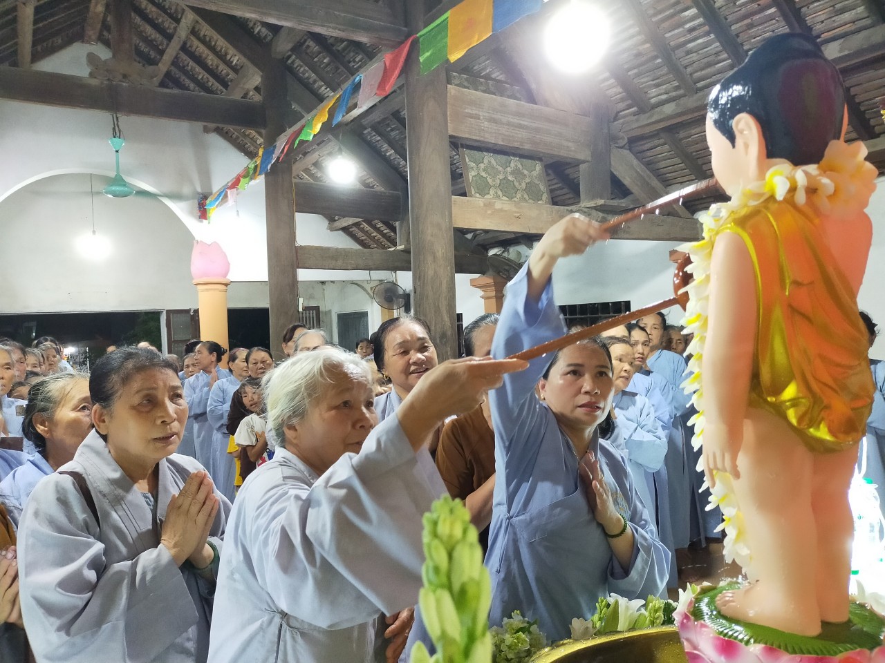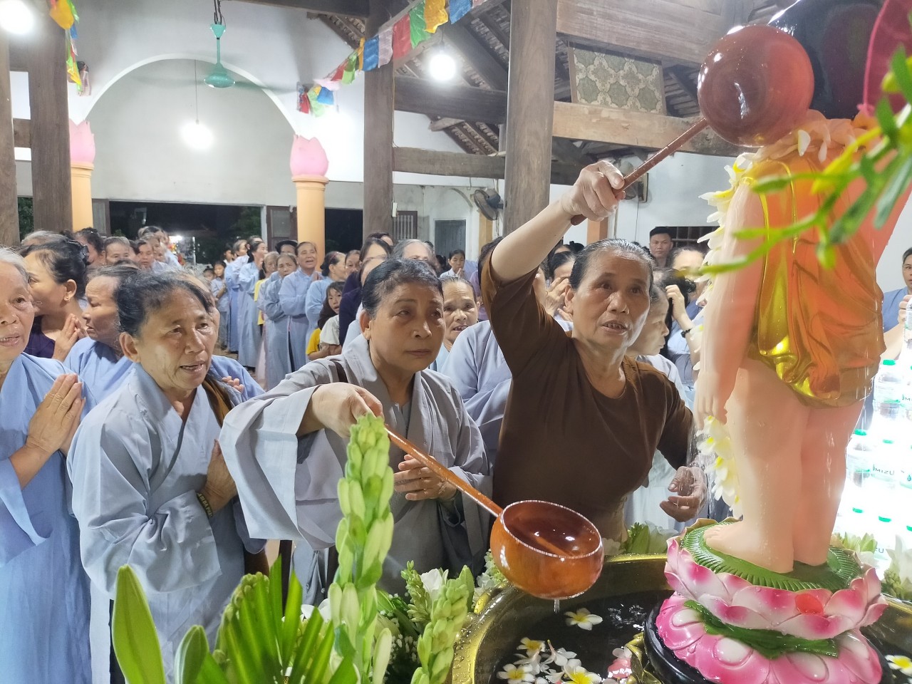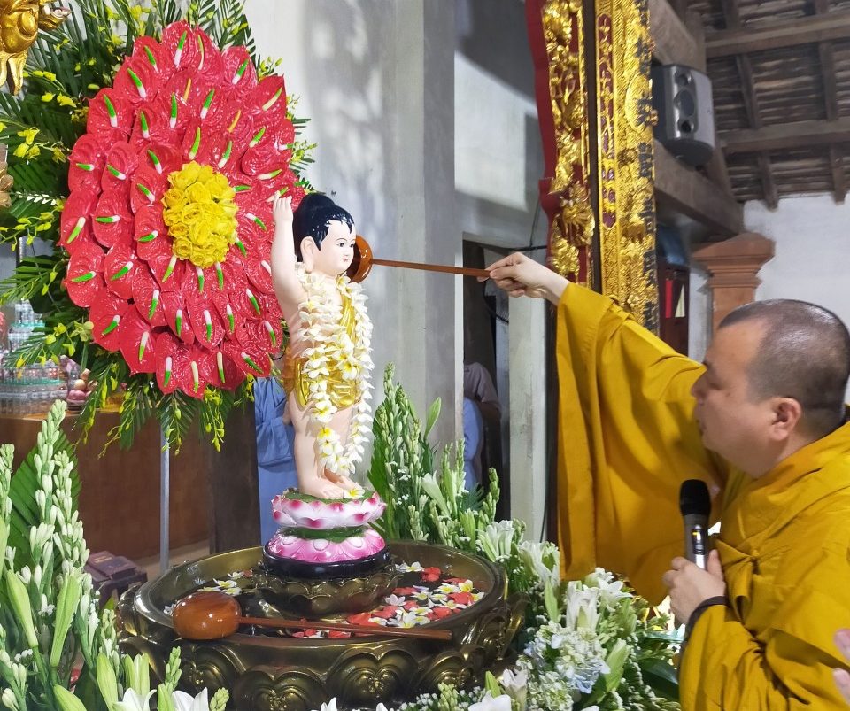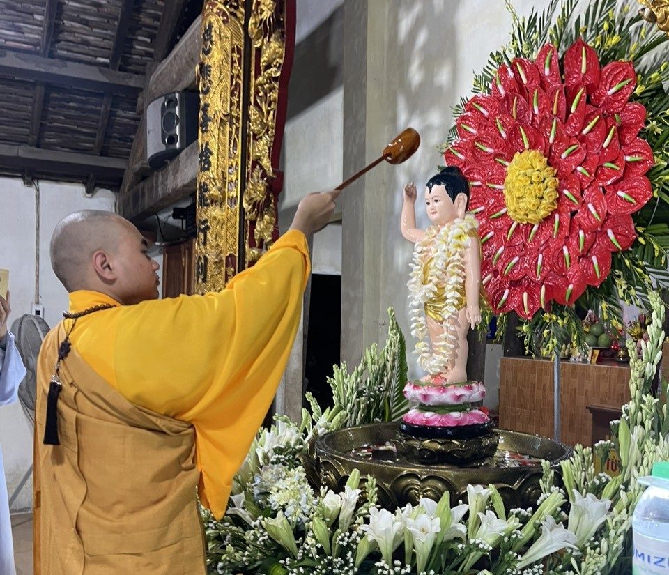 Sau đó, chư Tôn đức cùng hội chúng trang nghiêm hực hiện nghi thức tắm Phật truyền thống. Khoảnh khắc khi rưới những dòng nước tinh khiết lên tôn tượng của Đấng Từ Phụ, đó chính là nhân duyên thù thắng để mỗi người quay về với chính mình, hầu tự sách tấn, tự trang nghiêm cho bản thân bằng hương đức hạnh, bằng hoa trí tuệ, và bằng nước nhẫn nhục, từ Ái