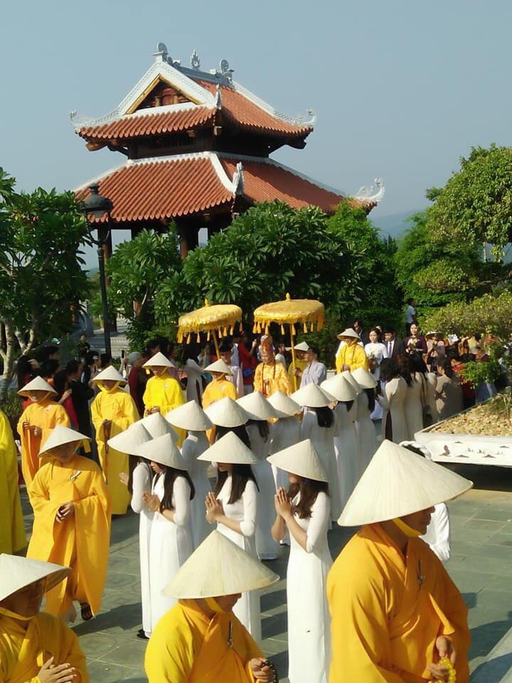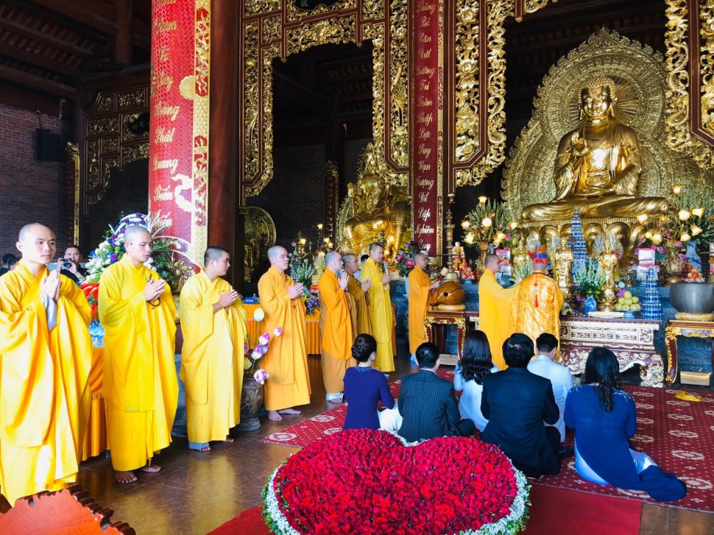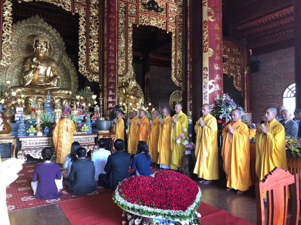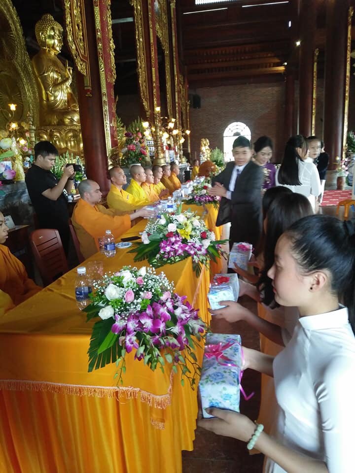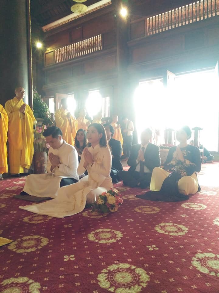 Tiếp theo, đôi uyên ương phát nguyện sống chung thủy, tôn trọng lẫn nhau và vui vẻ hạnh phúc, sống trên tinh thần tu tập của người con Phật dưới sự hướng dẫn của chư Tôn đức Tăng và nhận lời ban phước của quý Thầy chứng minh buổi lễ.