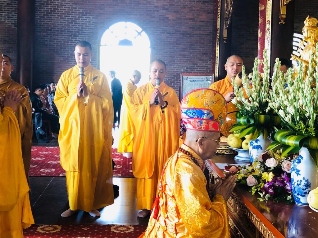 Buổi lễ dưới sự chứng minh của: Hoà thượng Thích Khế Chơn - Phó Chủ tịch Hội đồng Trị sự, Phó ban Thường trực Ban Kiểm soát TƯ, Phó ban Thường trực Ban Trị sự Giáo hội Phật giáo Việt Nam (BTS GHPGVN) tỉnh Thừa Thiên Huế, trụ trì chùa Thiên Minh, chùa Quang Minh và Khu Du lịch Tâm linh thánh tích tượng đài Quan Thế Âm; Đại đức Thích Thiện Mỹ - Ủy viên BTS, Phó Trưởng ban Hoằng pháp Phật giáo tỉnh, Phó ban Thường trực kiêm Trưởng ban Hoằng pháp GHPGVN huyện Phú Lộc, trụ trì chùa Diệu Ngộ (tỉnh Thừa Thiên Huế) và chùa Lâm Hà, chùa Mai Nữ (tỉnh Nghệ An); ĐĐ. Thích Thiện Tuệ - Ủy viên BTS, Phó Trưởng ban Thông tin Truyền thông Phật giáo tỉnh; cùng hơn 30 chư Tăng đồng tham dự và cầu nguyện.