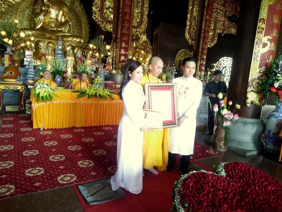 Đại đức Thích Thiện Tuệ - Ủy viên BTS, Phó Trưởng ban Thông tin Truyền thông Phật giáo tỉnh trao chứng nhận hằng thuận và quy y Tam bảo cho đôi bạn trẻTrước khi kết thúc, là phần thả bồ câu cầu nguyện và chụp hình lưu niệm. Buổi lễ đã khép lại với nhiều giá trị lợi lạc cho đôi bạn trẻ và gia đình hai bên.