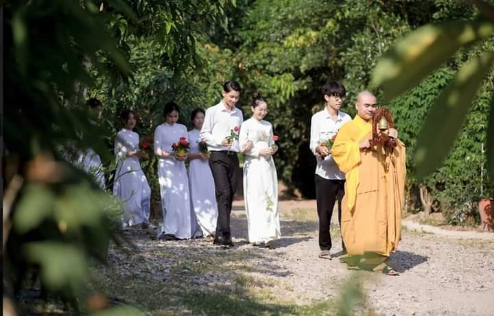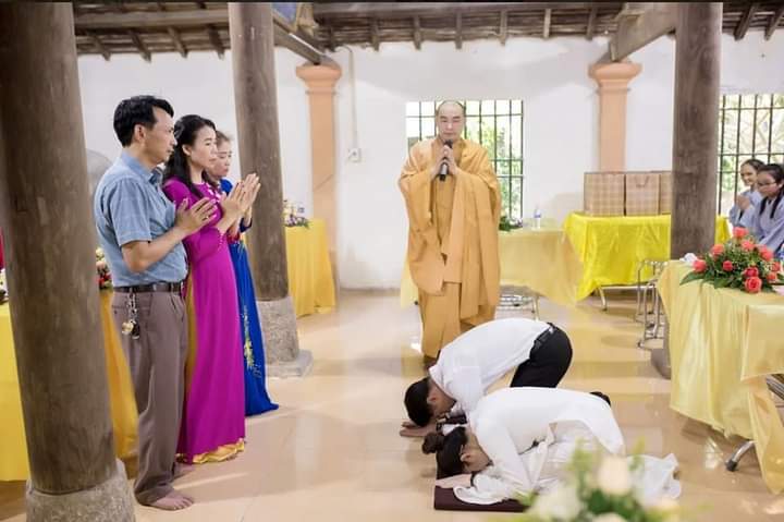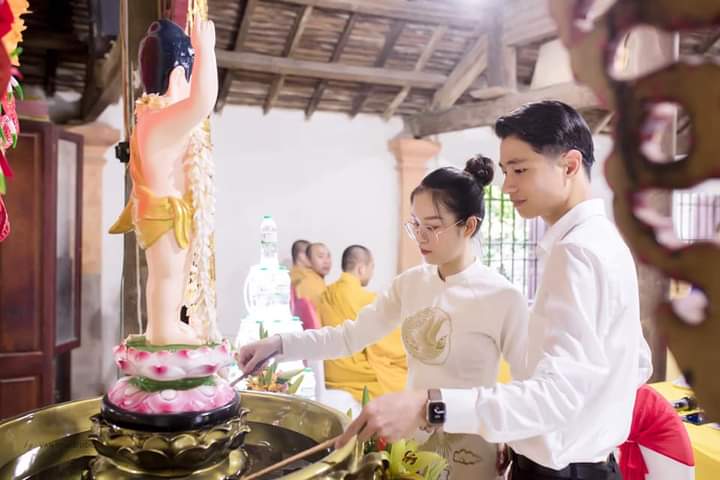 Dưới sự gia hộ của mười phương chư Phật và sự chứng minh của chư Tôn đức Tăng hiện tiền, đôi bạn trẻ đã làm lễ tạ ơn Tam Bảo, lễ tri ân công sinh thành dưỡng dục của hai đấng song thân.