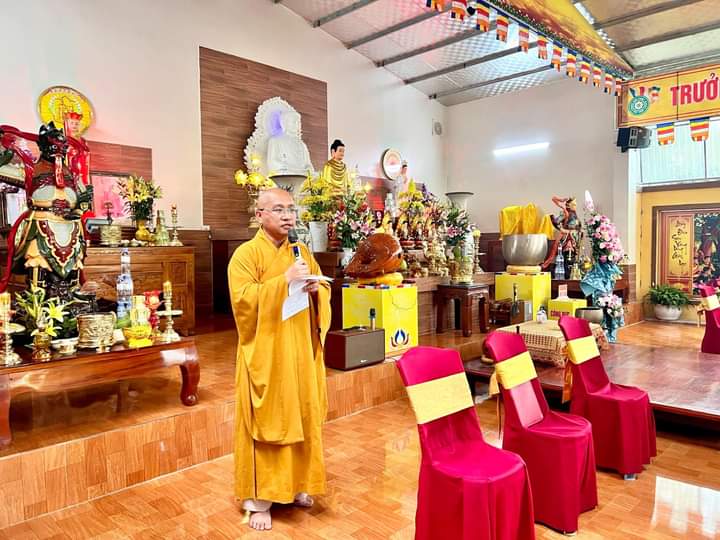 Tại buổi lễ, chư Tôn thiền đức cung tuyên bức Thông điệp của Đức Pháp chủ và Diễn văn Phật đản của Hoà thượng Chủ tịch HĐTS.