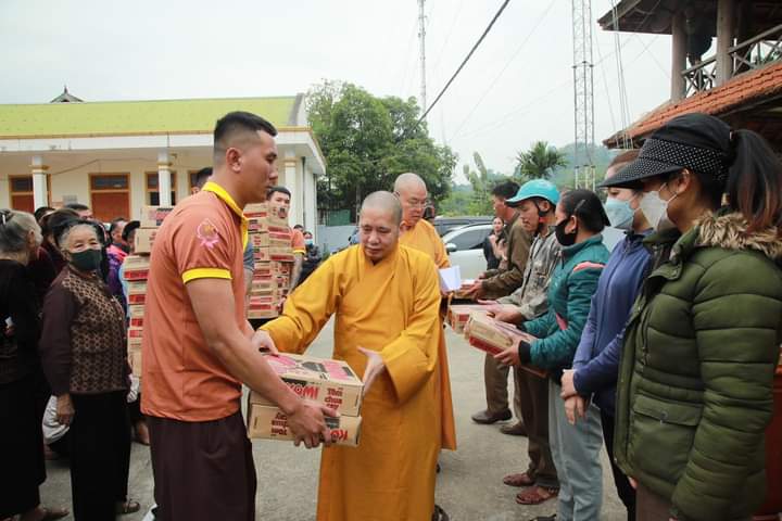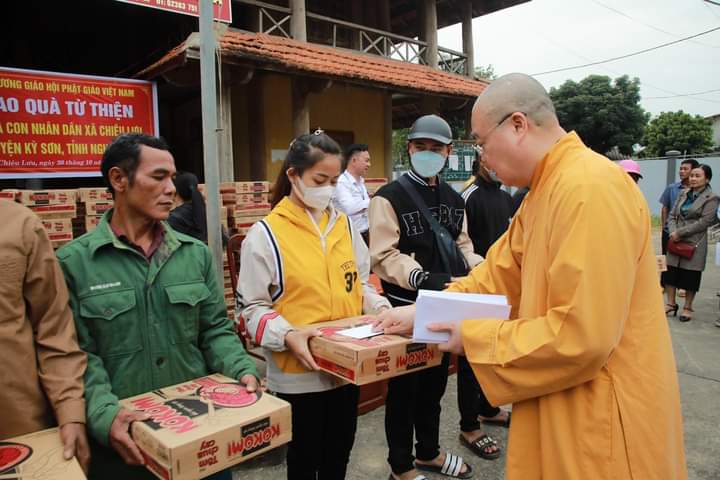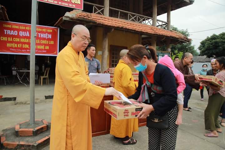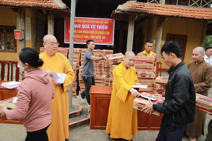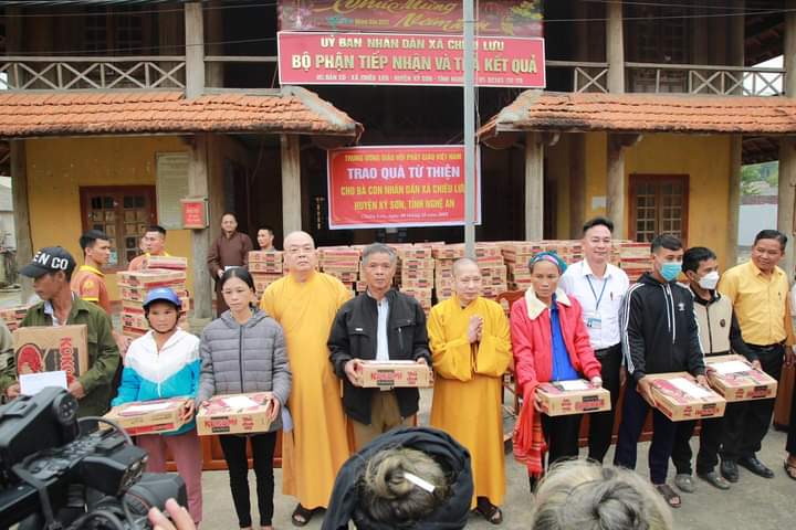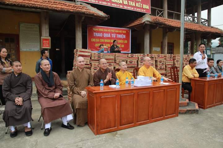 Đoàn từ thiện do Hòa thượng Thích Thanh Nhiễu – Phó chủ tịch Thường trực HĐTS GHPGVN, Trưởng ban Trị sự GHPGVN tỉnh Nghệ An làm trưởng đoàn, đi cùng đoàn có Thượng toạ Thích Thanh Tuấn - Ủy viên Thường trực, Phó Văn phòng Trung ương GHPGVN và Đại đức Thích Nguyên Chính – đồng Phó chánh văn phòng Trung ương GHPGVN; Đại đức Thích Tâm Thành – Chánh Thư ký Ban Trị sự, Trưởng ban Phật giáo Quốc tế GHPGVN tỉnh Nghệ An.
