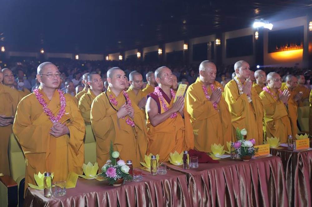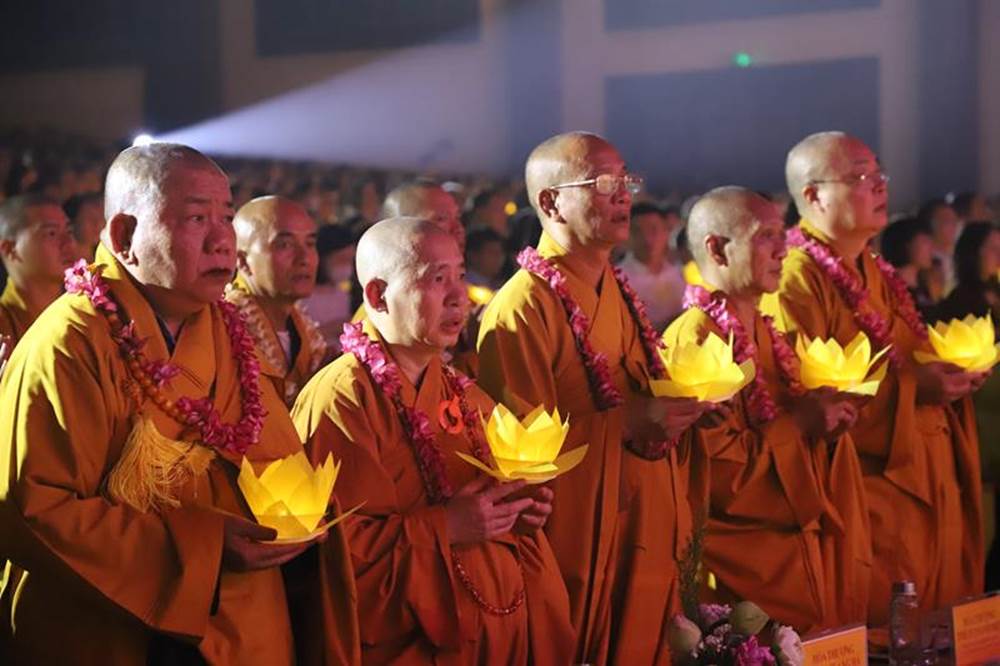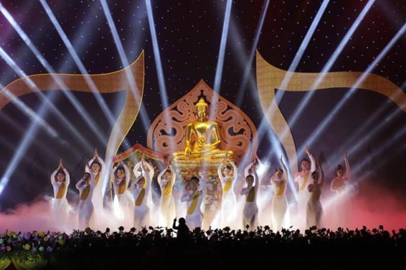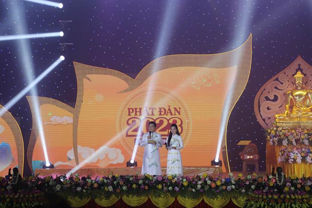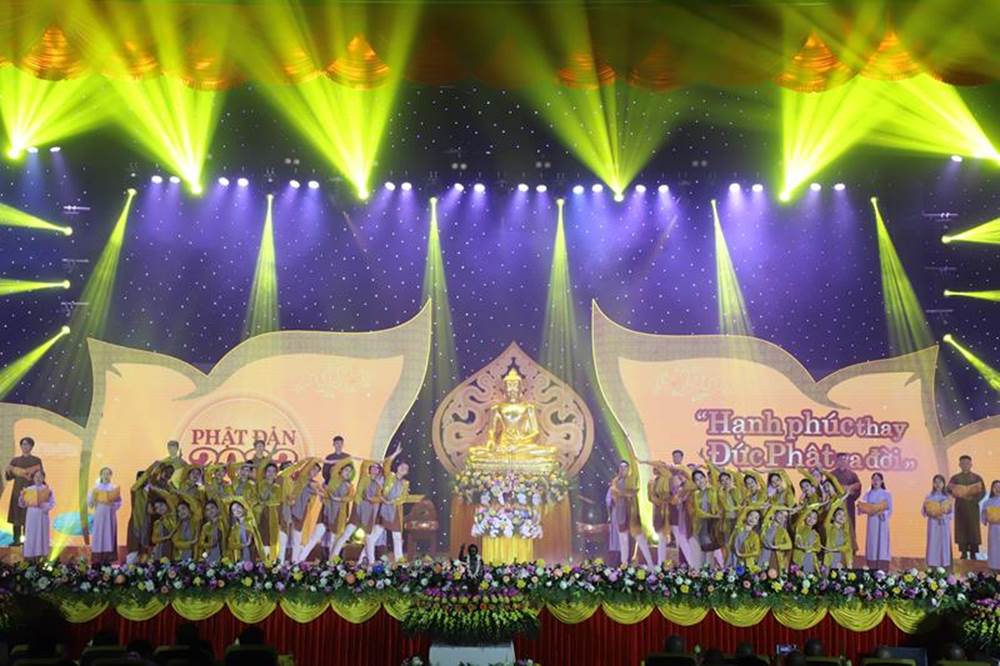 Tại buổi lễ, chư Tôn đức cùng toàn thể đại biểu được thưởng thức chương trình Nhạc kịch “Hạnh phúc thay Đức Phật ra đời”, nội dung tái hiện cảnh rước Phật thời Lý qua màn múa rước Phật đản sinh an vị tại lễ đài.