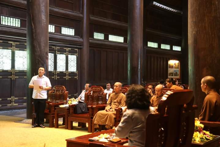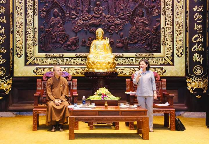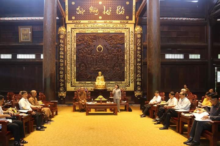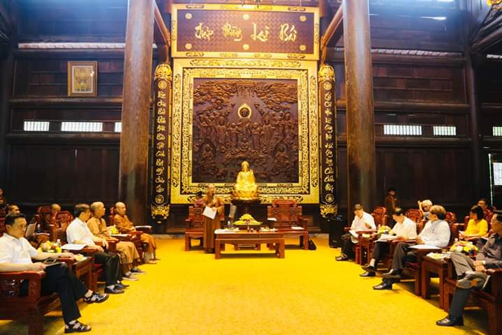 PSO - Ngày 07/07/2020 (nhằm ngày 17/06 năm Canh Tý), tại Hội trường nhà khách chùa Bái Đính, đoàn Giám sát của Ủy ban Văn hóa, Giáo dục, Thanh niên, Thiếu niên và Nhi đồng của Quốc Hội có buổi thăm quan, làm việc với chư Tôn đức Tăng, ban quản lí xây dựng chùa Bái Đính trong không khí cởi mở, hoan hỉ và thân mật. Về phía chư Tôn đức đón tiếp phái đoàn có TT. Thích Minh Quang - Ủy viên HĐTS, Phó chánh Văn phòng I TƯGH, Phó trưởng BTS GHPGVN tỉnh Ninh Bình, Phó Trụ trì Thường trực chùa Bái Đính cùng quý chư Tôn đức, Phật tử: Nguyễn Văn Trường - Giám đốc doanh nghiệp Xuân Trường đầu tư xây dựng chùa Bái Đính. Về phía phái đoàn có bà Hoàng Thị Hoa - Phó Chủ nhiệm Ủy ban Văn hóa, Giáo dục, Thanh niên, Thiếu niên và Nhi đồng của Quốc hội, Chủ tịch Nhóm nghị sĩ hữu nghị Việt Nam - Ai Cập làm trưởng đoàn cùng các Ủy viên Thường trực, ủy viên, thành viên trong Ủy ban Văn hóa, Giáo dục, Thanh niên, Thiếu niên và Nhi đồng của Quốc hội. Thay mặt chư Tôn đức Tăng chùa Bái Đính, TT. Thích Minh Quang cũng gửi lời phú chúc sức khỏe, bình an, công tác tốt tới các thành viên trong đoàn và tiếp đến có những báo cáo tóm tắt sơ bộ công tác Phật sự quý I, quý II năm 2020 và một số hoạt động trọng tâm của chùa Bái đính trong 6 tháng đầu năm 2020 gửi tới phái đoàn, do ảnh hưởng từ đại dịch Covid-19 đã làm tạm ngừng toàn bộ các hoạt động đời sống, tinh thần của toàn xã hội, mọi hoạt động tập trung đông người đều tạm dừng. Trong bối cảnh tình hình chung, thực hiện nghiêm các Chỉ thị của Thường trực Ban Bí thư, của Thủ tướng Chính phủ về phòng chống dịch Covid-19, chùa Bái Đính đã tạm ngưng tất cả các hoạt động kể cả lễ hội xuân Canh Tý, chư Tăng tích cực khuyến cáo Phật tử tránh tập trung đông người, nhất tâm ngồi nhà hành trì tụng niệm cầu nguyện dịch bệnh tiêu trừ, để xã hội đi về quỹ đạo phát triển ổn định. Bên cạnh đó chùa cũng đã tổ chức phát hàng vạn chiếc khẩu trang y tế, dung dịch rửa tay sát khuẩn, ủng hộ hàng trăm triệu đồng tiền mặt chung tay cùng Đảng, Nhà nước và nhân dân phòng chống dịch,…tích cực động viên Phật tử thực hiện tốt chính sách pháp luật của Nhà nước, nhằm xây dựng bảo vệ đất nước văn minh, giàu mạnh, thực hiện đúng theo tinh thần sống: “tốt đời, đẹp đạo”… Thứ đến bà Hoàng Thị Nga đại diện phái đoàn cũng gửi lời vấn an sức khỏe chư Tôn đức Tăng tại chùa Bái Đính, tiếp đến bà cũng đánh giá cao những hoạt động tích cực chung tay của chùa Bái Đính cùng hệ thống chính trị từ Trung ương đến địa phương đoàn kết chống dịch, bảo vệ sức khỏe cộng đồng, đồng thời bà cũng mong muốn thời gian tới chùa Bái Đính tiếp tục phát huy tinh thần đoàn kết, thống nhất hành động, hoạt động theo đúng Hiến chương Giáo hội, đúng pháp luật Nhà nước, phối hợp cùng các tổ chức chính trị - xã hội vận động các tín đồ Phật tử đẩy mạnh các phong trào từ thiện, phát triển đường hướng hành đạo: “ Đạo pháp - Dân tộc - Chủ nghĩa xã hội".