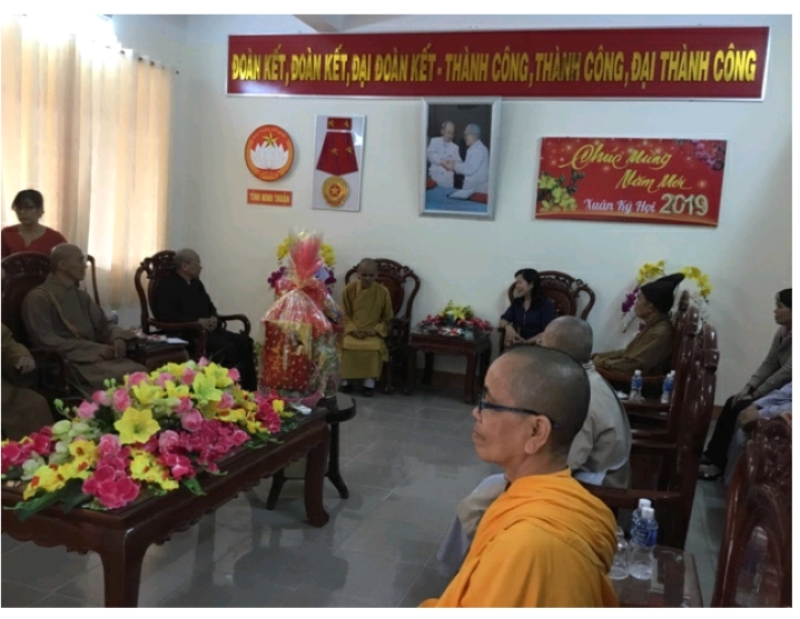 Sáng ngày 25/1/2019 (nhằm 20/12/ Mậu Tuất), chư Tôn đức Tăng Ni trong Ban Thường trực GHPG tỉnh thăm và chúc Tết 13 cơ quan ban ngành trên địa bàn tỉnh. Trưởng đoàn TT. Thích Hạnh Thể - Trưởng BTS kiêm Trưởng Ban Tăng sự GHPGVN tỉnh Ninh Thuận.