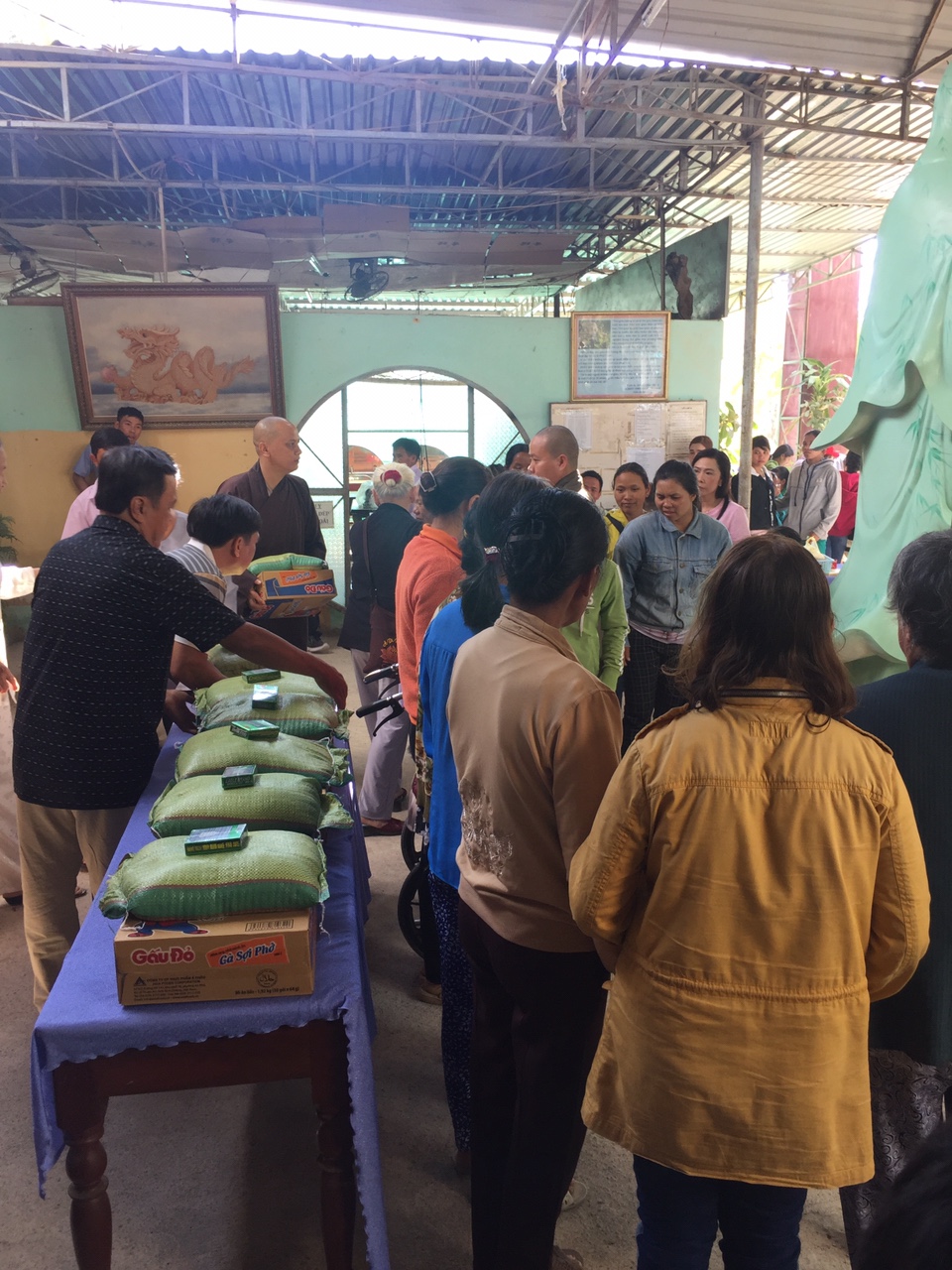 Phần quà gồm: 10kg gạo, 1 thùng mì, dầu và bao lì xì 300.000đ, trị giá phần quà là 500.000đ. Tổng kinh phí chuyến từ thiện là 50 triệu đồng.