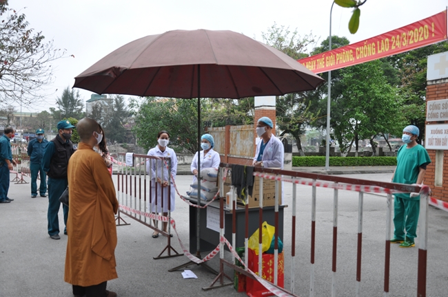 PSO - Thực hiện theo tinh thần chỉ đạo của TƯ GHPGVN trong việc phòng, chống dịch bệnh viêm đường hô hấp cấp COVID-19, chùa Tiêu Dao, P. Hà Khẩu, TP. Hạ Long kết hợp với Ban Dân vận tỉnh Quảng Ninh, Hội Liên hiệp Phụ nữ tỉnh đã trao tặng khẩu trang y tế cho 3 bệnh viện và trao tặng miễn phí khẩu trang vải kháng khuẩn cho người dân và Phật tử khi đi đến lễ chùa.