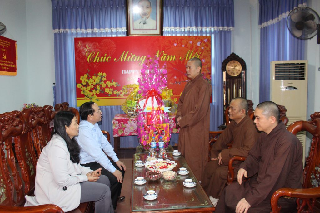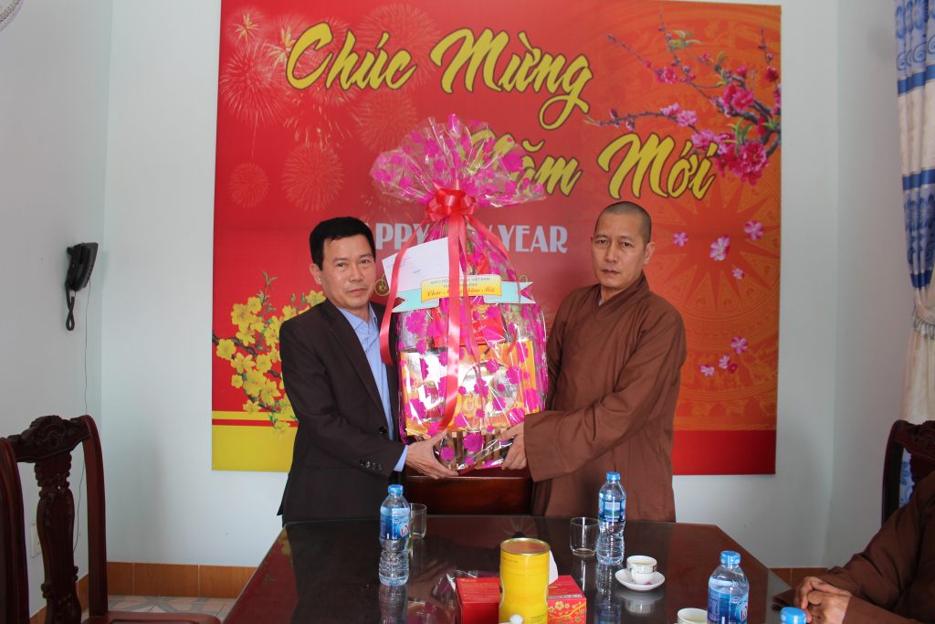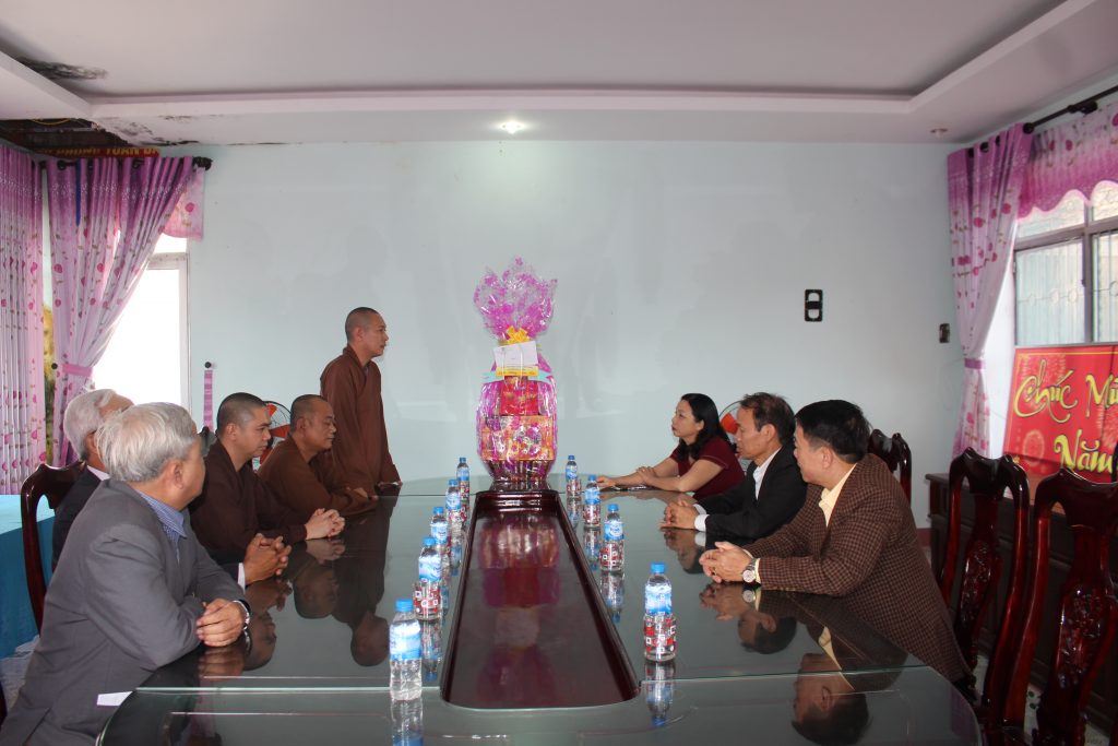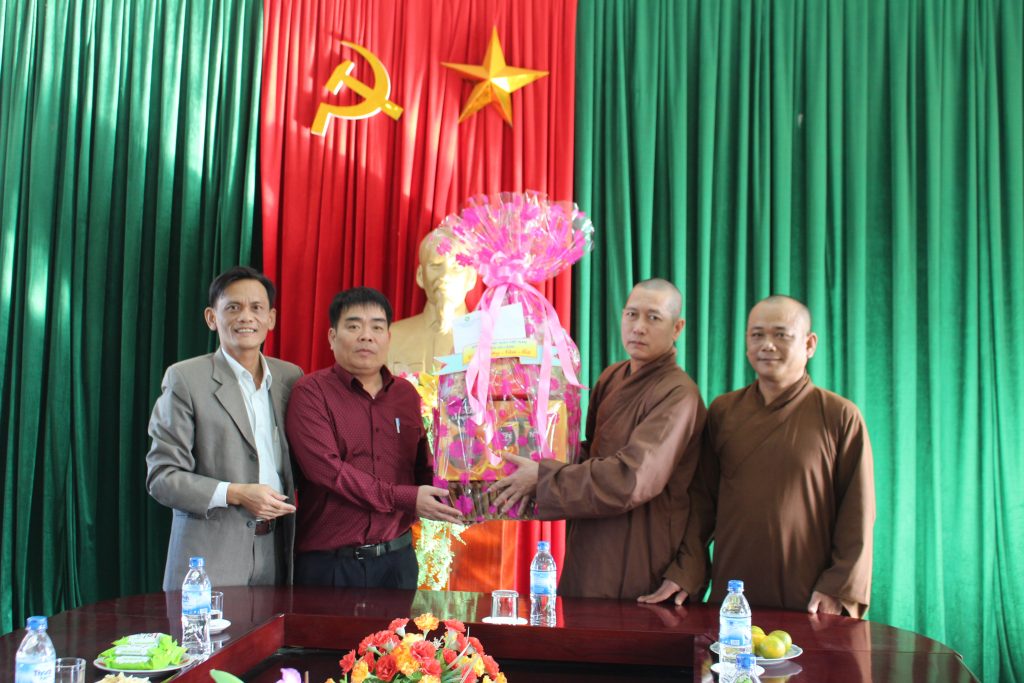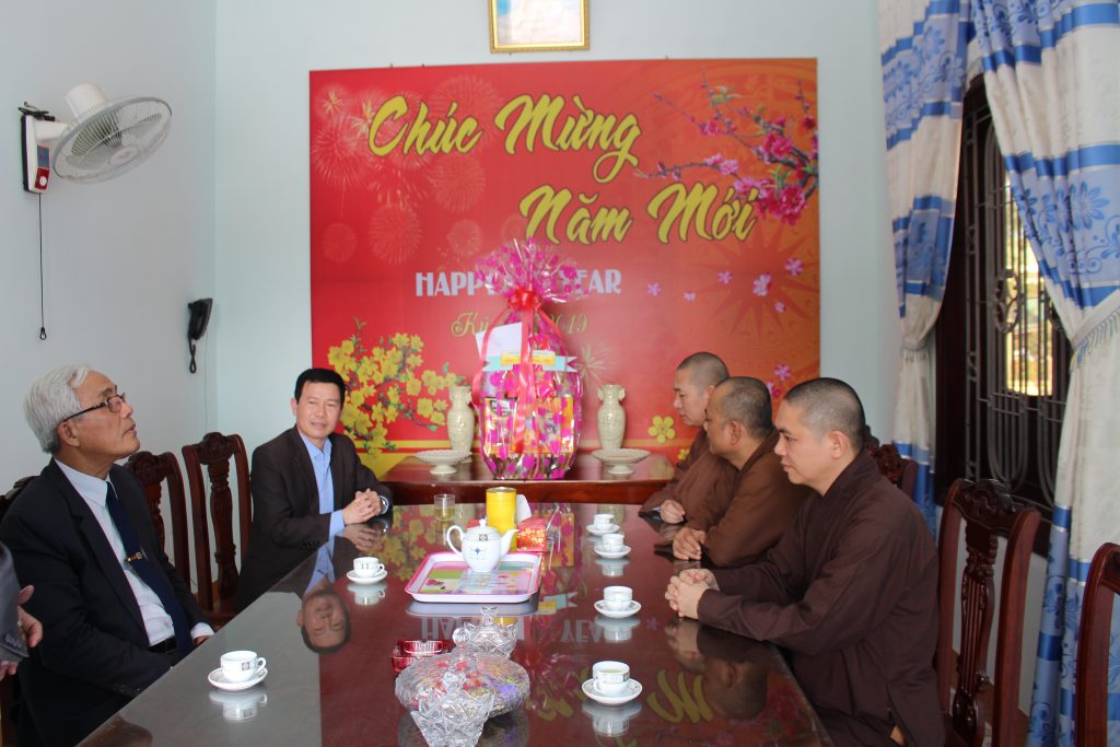 Đại diện các cơ quan, ban, ngành thân mật đón tiếp đoàn và gửi lời chúc đến chư tôn đức lãnh đạo Phật giáo huyện cùng toàn thể Tăng, Ni trong địa bàn huyện luôn được khỏe mạnh, đón xuân an lạc và hoàn thành tốt các Phật sự trong năm 2019 trên nền tảng “tốt đạo đẹp đời” - góp phần vào công cuộc phát triển xã hội xây dựng đất nước ngày càng giàu đẹp.