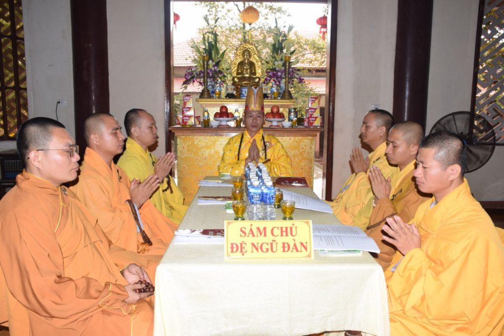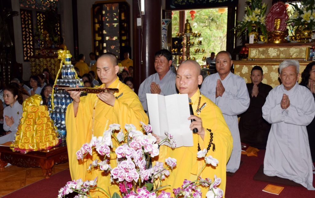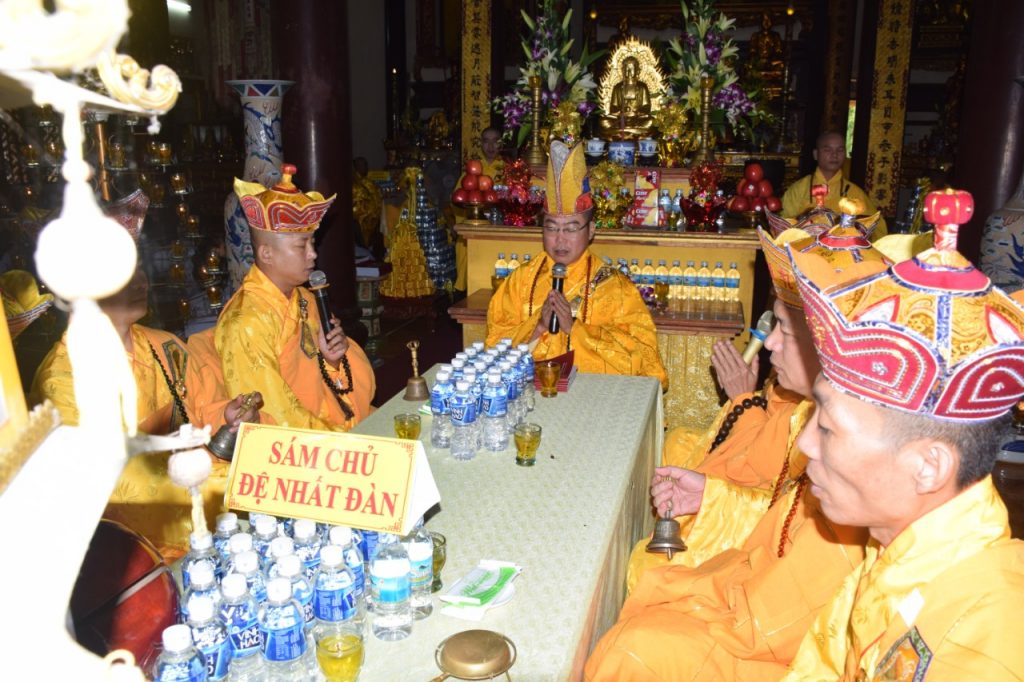 Thượng tọa Thích Quảng Thiện - Sám chủ Pháp hội, cùng chư Tôn đức Ban Kinh Sư đã thực hiện nghi thức của Pháp hội: đảnh lễ Tam bảo, niêm đàn sái tịnh, phụng thỉnh chư Phật và Thánh hiền quang giáng chứng minh tâm thành cùng lời nguyện cầu của đại chúng.