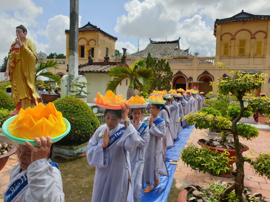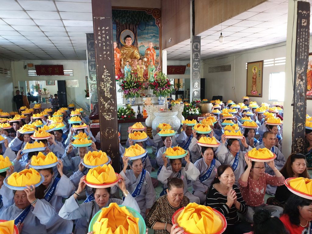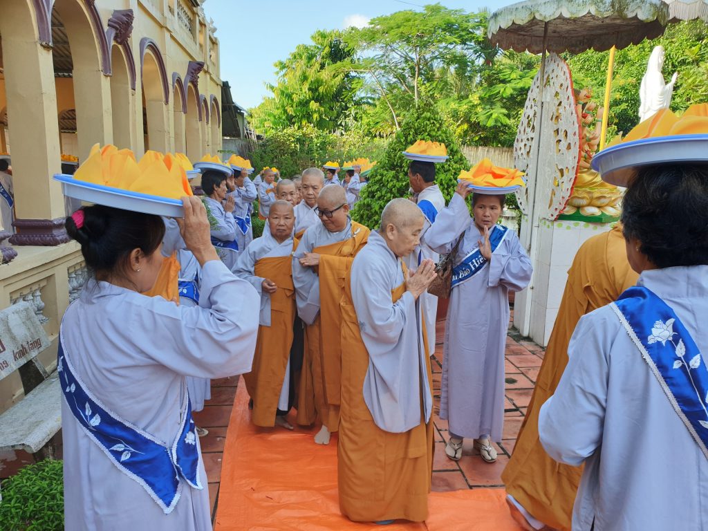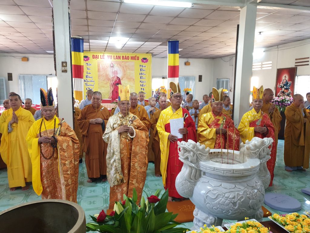 Buổi lễ viên mãn sau khi HT.Thích Minh Thành và chư Tôn đức Tăng Ni tụng Kinh Vu Lan, quý Phật tử đội Pháp y kinh hành và đồng hiệp tụng.