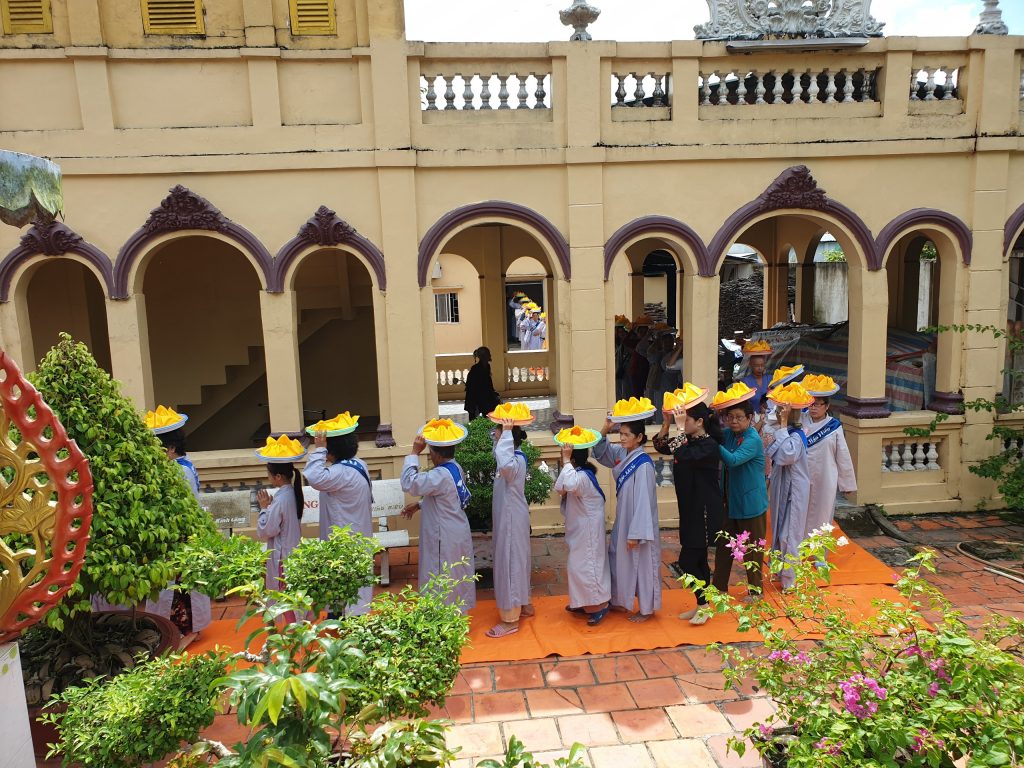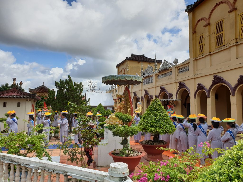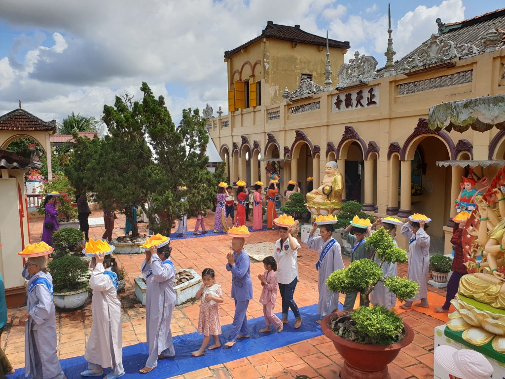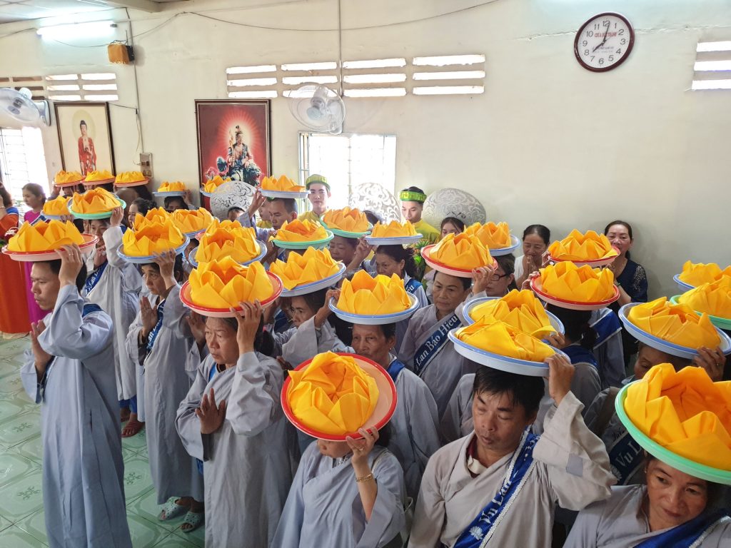 Buổi lễ viên mãn sau khi HT.Thích Minh Thành và chư Tôn đức Tăng Ni tụng Kinh Vu Lan, quý Phật tử đội Pháp y kinh hành và đồng hiệp tụng.