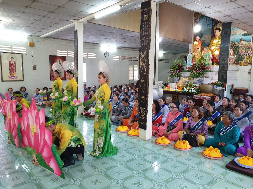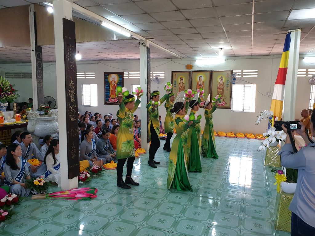 Vào lễ, ban tổ chức và Phật tử cung thỉnh chư tôn đức Tăng Ni quang lâm Chánh điện niệm hương lễ Tam bảo và an tọa chứng minh. Các Phật tử múa và hát những bài gợi nhớ về công ơn cha mẹ và chào mừng chư Tôn đức, quý quan khách và toàn thể đạo tràng.