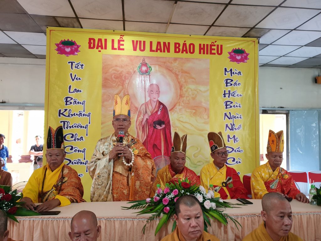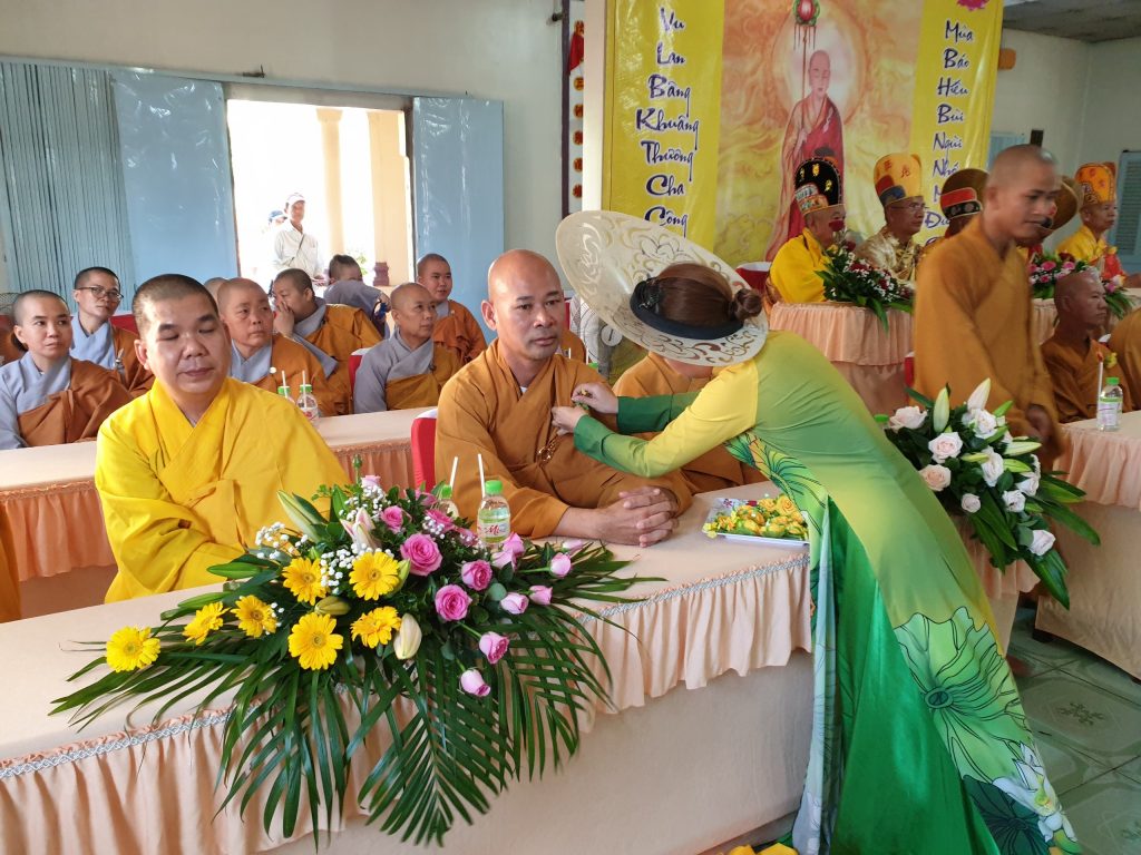 TT.Thích Minh Hạnh - UV HĐTS, Phó trưởng Ban Thường trực BTS Phật giáo tỉnh ban đạo từ: tán thán công đức Sư cô Trụ trì chùa Chánh Thiên Cơ với những công tác từ thiện đã làm được trong mùa Vu lan Thắng hội năm nay, đã thể hiện tinh thần từ bi của đạo Phật đến với mọi người. Thượng tọa hứa khả và nạp thọ Pháp y, giảng rõ về ý nghĩa và công đức của sự cúng dường. Chư tôn đức Tăng Ni thành tâm chú nguyện để âm siêu dương thới, pháp giới chúng sanh đều thành Phật đạo.