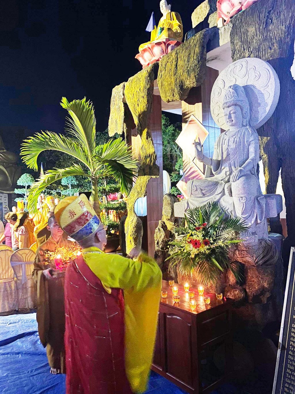 PSO - Tối ngày 05/11/2020 (nhằm ngày 20/9 năm Canh Tý) Thượng tọa Thích Trung Túc - Trưởng ban Kinh tế Tài chánh GHPGVN tỉnh Sóc Trăng, Trụ trì chùa Hương Sơn (105 Trương Công Định, phường 2, TP.Sóc Trăng) cùng Công ty Nông sản Minh Đức và bổn đạo Phật tử trang nghiêm tổ chức lễ an vị Tôn tượng Bồ tát Quán Thế Âm trên núi nhân tạo với kinh phí 300 triệu đồng.