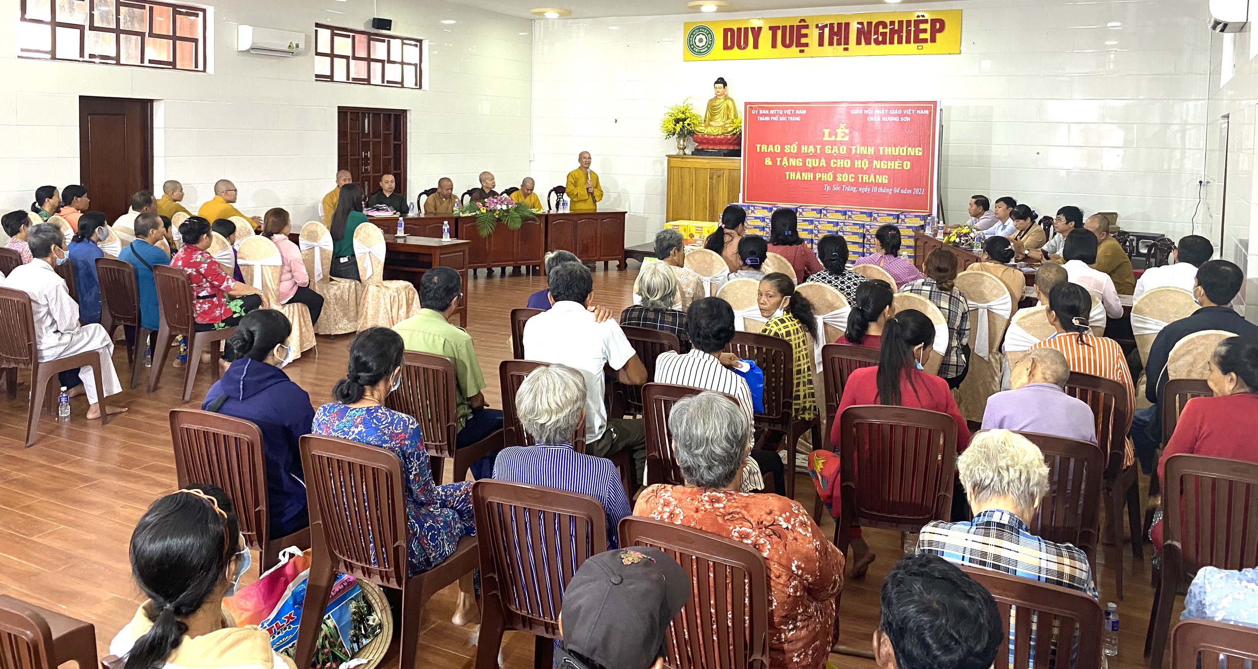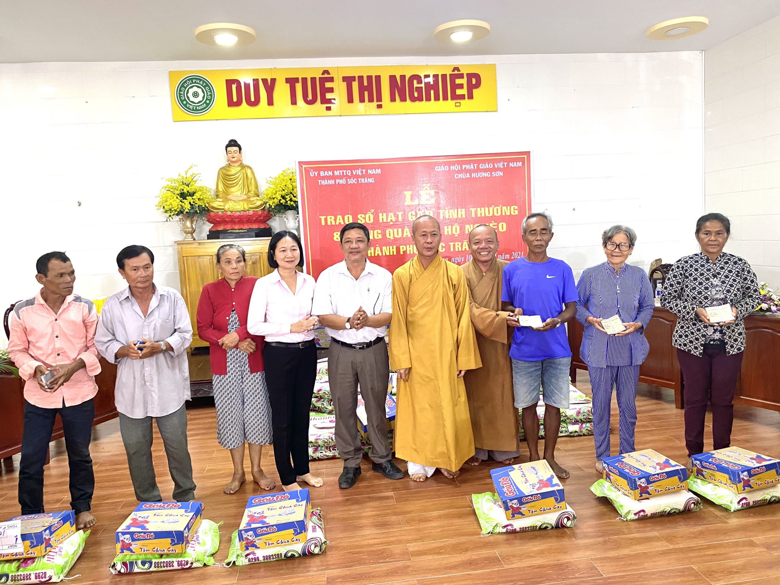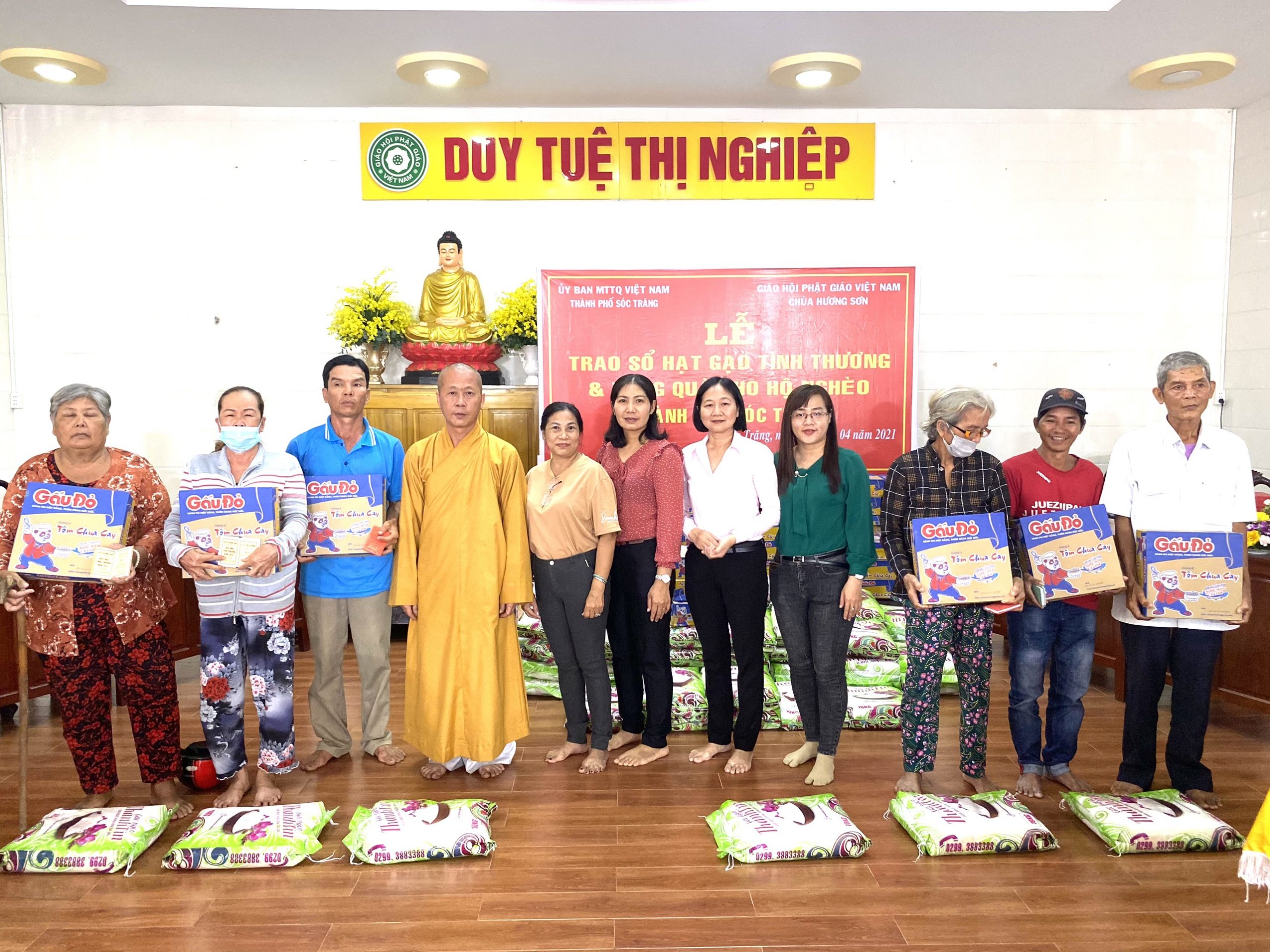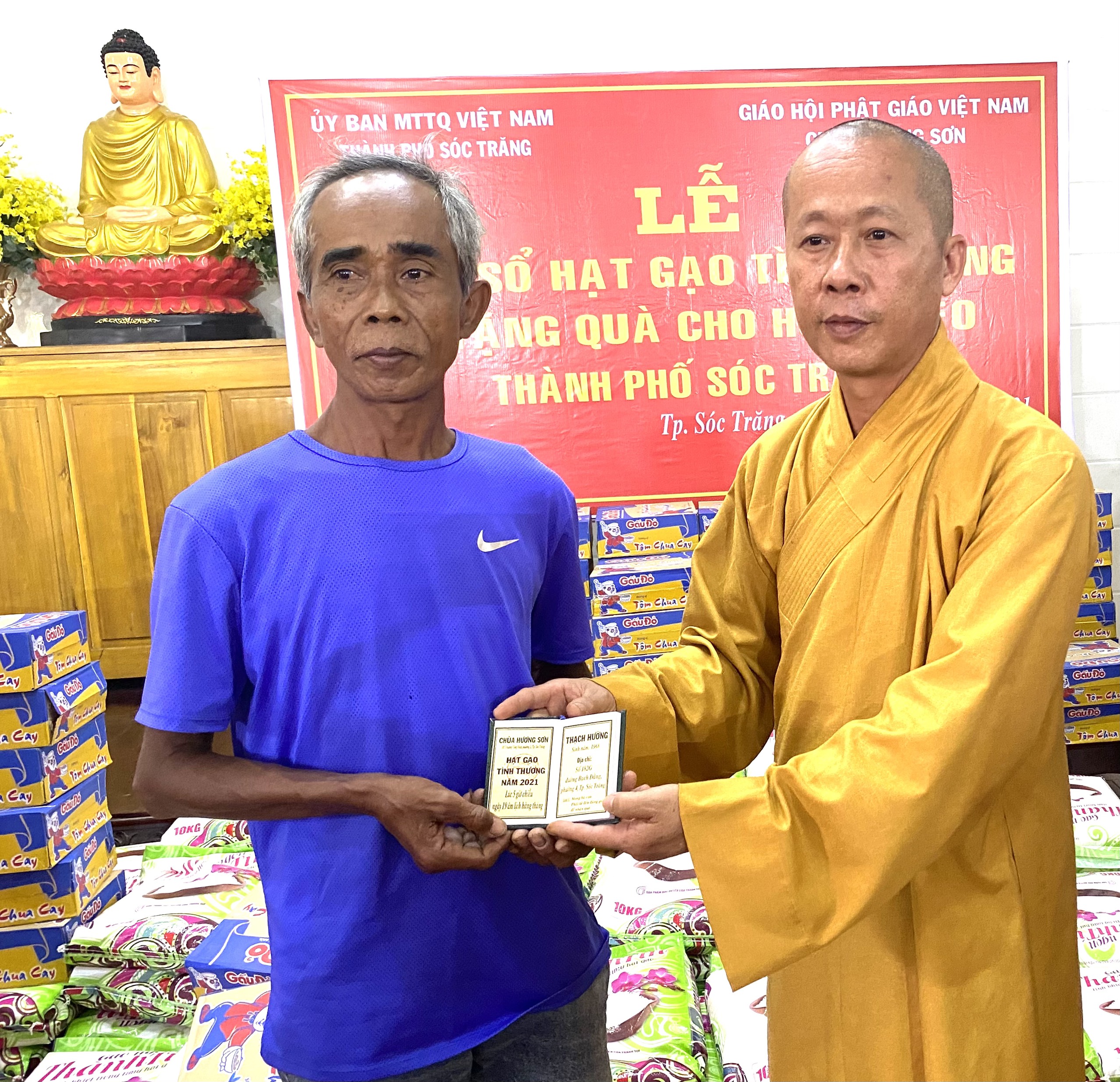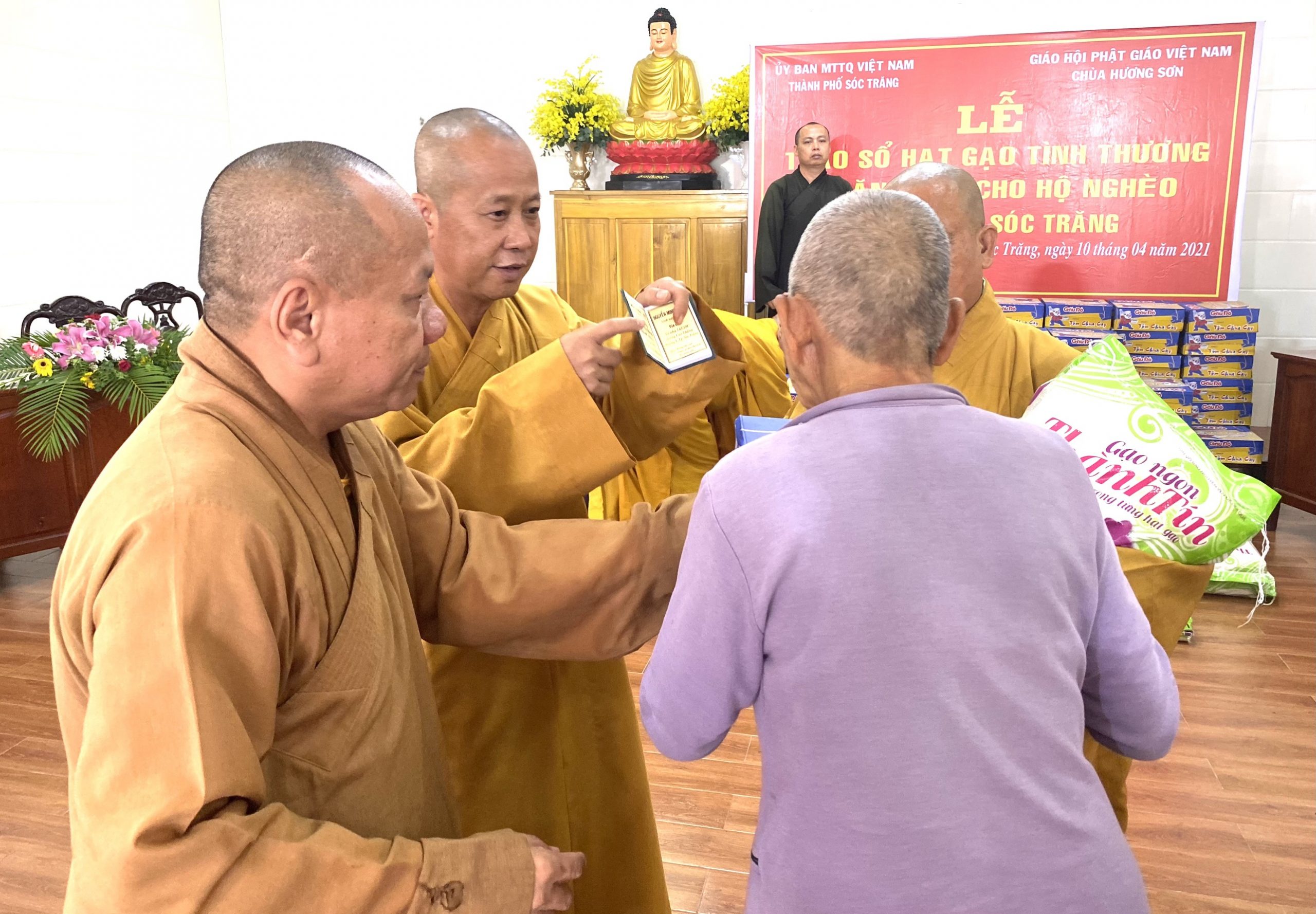 PSO - Sáng ngày 10/04/2021 (nhằm ngày 29/02 năm Tân Sửu) Thượng tọa Thích Trung Túc - Trưởng ban Kinh tế Tài chánh GHPGVN tỉnh Sóc Trăng, Trụ trì chùa Hương Sơn (105 Trương Công Định, phường 2, TP.Sóc Trăng) kết hợp cùng UB MTTQVN TP.Sóc Trăng tổ chức trao tặng quà hàng tháng cho các hộ nghèo và cận nghèo năm 2021.