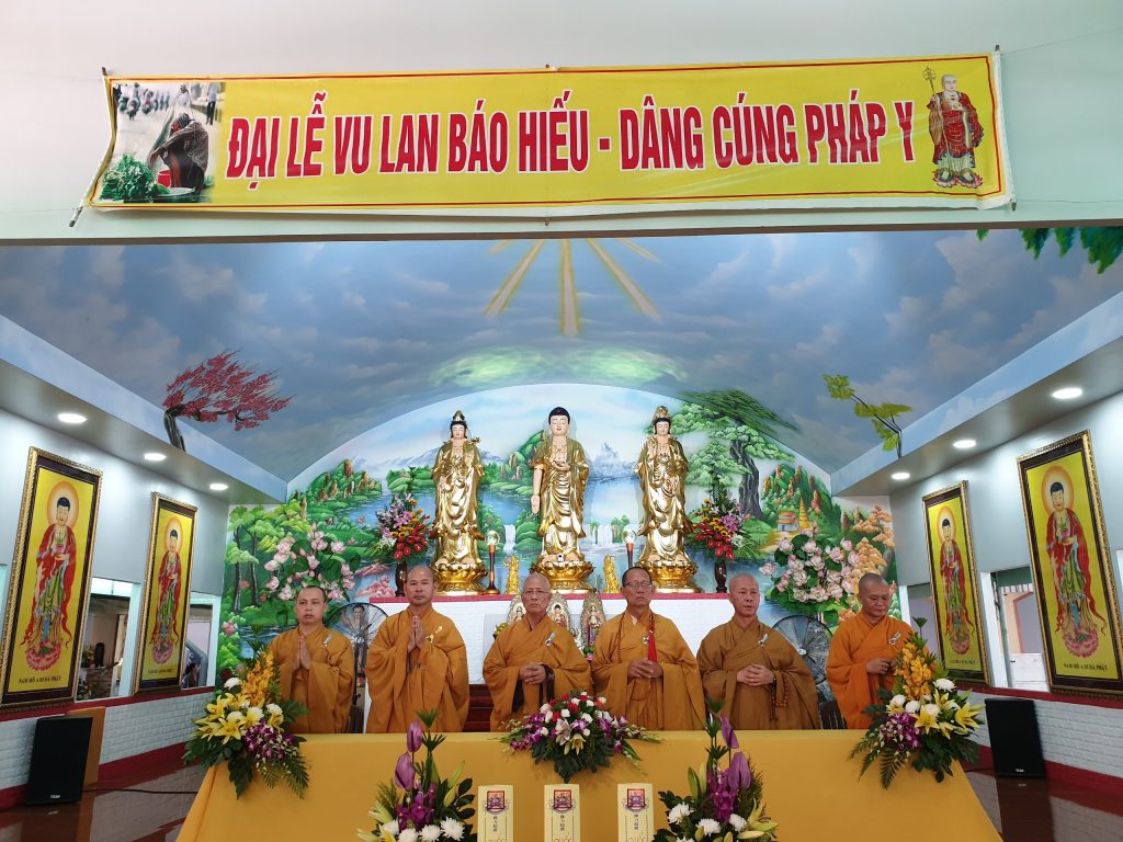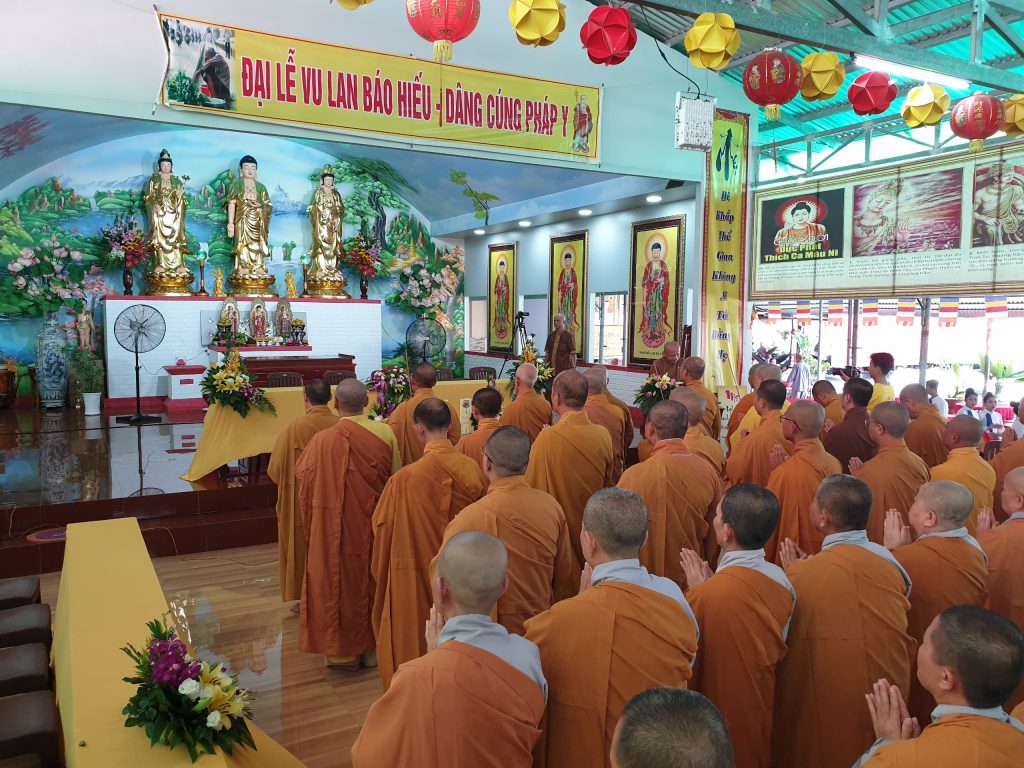 Phần cuối của buổi lễ, chư Tôn đức Tăng Ni và Phật tử hiệp tụng bài Kinh Vu Lan và hồi hướng viên mãn.