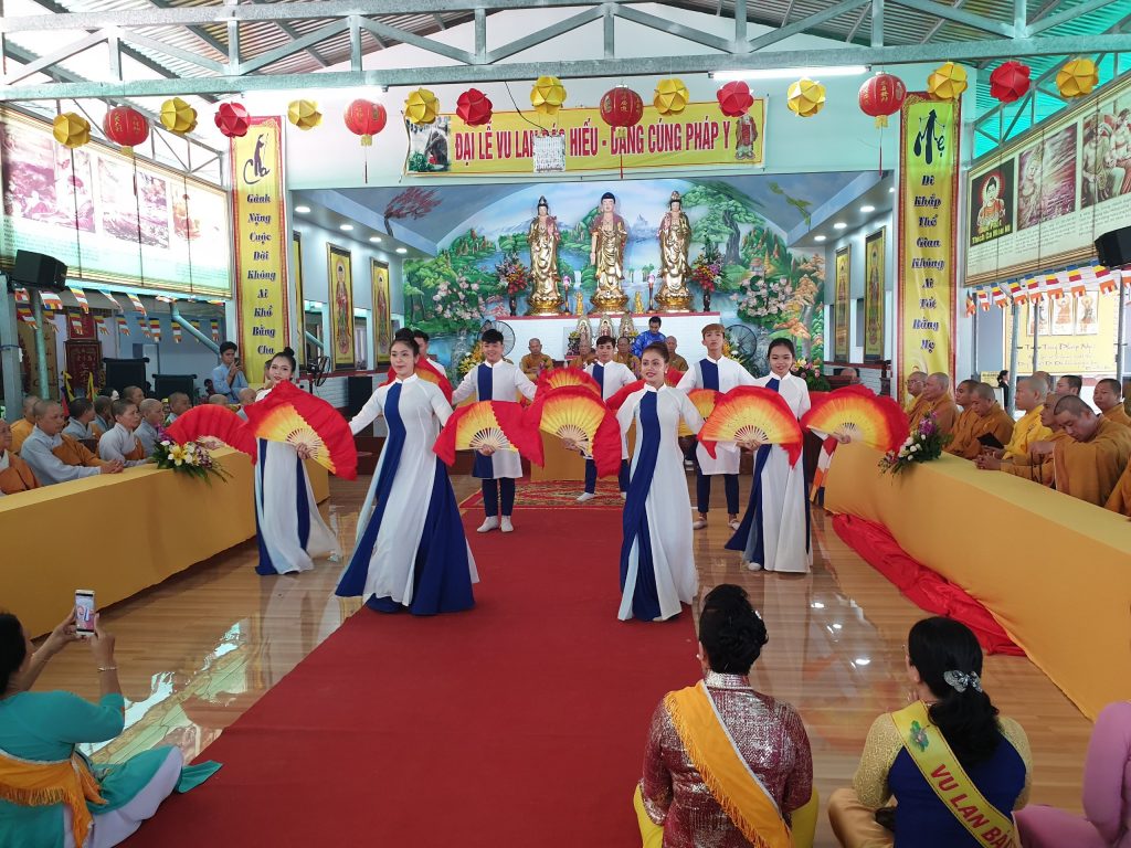 HT.Thích Minh Thành - UV HĐTS, Phó BTS, Trưởng ban Pháp chế Phật giáo tỉnh ban đạo từ chứng minh buổi lễHT.Thích Minh Thành - UV HĐTS, Phó BTS, Trưởng ban Pháp chế Phật giáo tỉnh ban đạo từ; Hòa thượng lượt qua quá trình hình thành ngôi chùa Lộc Minh, từ lúc bắt đầu chỉ là miếng ruộng do Phật tử hiến cúng, với sự kiên trì, chịu cực khổ, Sư cô Thích Nữ Phương Minh đã tạo ra một cơ sở mới cho Giáo hội. Thay mặt BTS Phật giáo tỉnh, xin biểu dương và tán thán công đức Sư cô Trụ trì và bổn đạo Phật tử nơi đây đã hết lòng vì đạo pháp và dân tộc. 100 món đồ ăn, trái cây 5 màu là công sức rất lớn của bà con Phật tử, thể hiện sự quyết tâm đền ơn và báo ơn đối với ông bà, cha mẹ. Cách làm này mang ý nghĩa cao đẹp qua tinh thần kinh Vu lan, điều này cho thấy Phật tử chúng ta hiếu thảo biết chừng nào. Đạo Phật đi vào lòng người bởi luôn xây dựng con người tôn trọng truyền thống đạo đức, luân lý của xã hội. Đây là một phương pháp hữu hiệu khi chúng ta hoằng dương Chánh pháp. Nguyện cầu chư Phật gia hộ Sư cô Trụ trì thân an tâm lạc, luôn hoàn thành các công tác Phật sự. Kính chúc bà con Phật tử suốt bốn mùa thoát khỏi tai ương, trong tám tiết sống an vui hạnh phúc.
