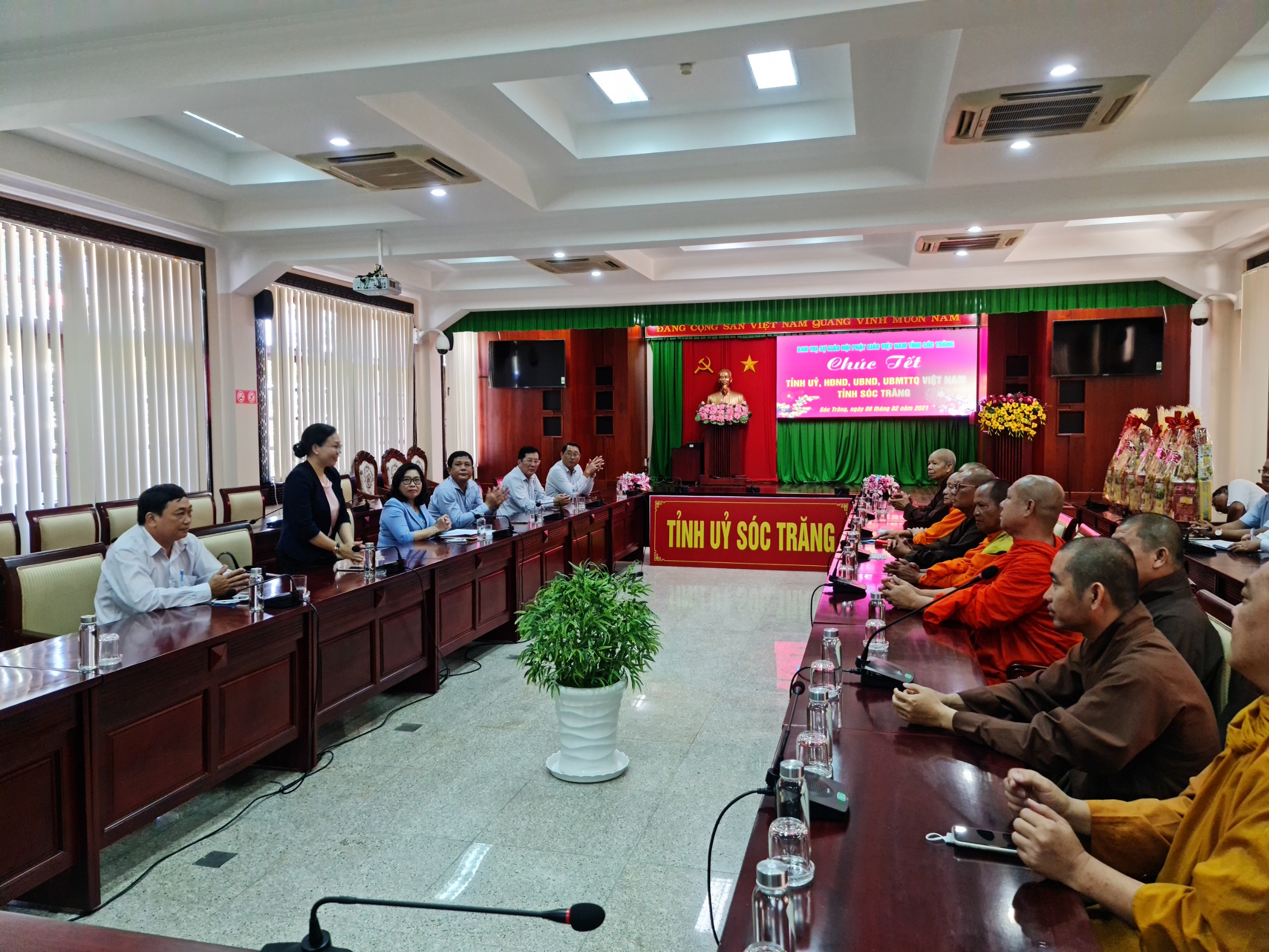 Lãnh đạo Chính quyền tiếp đoàn có bà Hồ Thị Cẩm Đào - Phó Bí thư Thường trực Tỉnh ủy, Trưởng đoàn đại biểu Quốc hội tỉnh Sóc Trăng; ông Dương Sà Kha - Ủy viên Thường vụ Tỉnh ủy, Trưởng Ban Dân vận, Chủ tịch UB MTTQVN tỉnh; bà Huỳnh Thị Diễm Ngọc - Tỉnh ủy viên, Phó Chủ tịch UBND tỉnh; ông Lưu Văn Xem - Phó Ban Dân vận Tỉnh ủy; ông Lâm Dũng Liêm - Phó Chủ tịch UB MTTQVN tỉnh; ông Văn Quốc Tâm - Trưởng Ban Tôn giáo tỉnh cùng cán bộ, công chức thuộc văn phòng Tỉnh ủy Sóc Trăng.