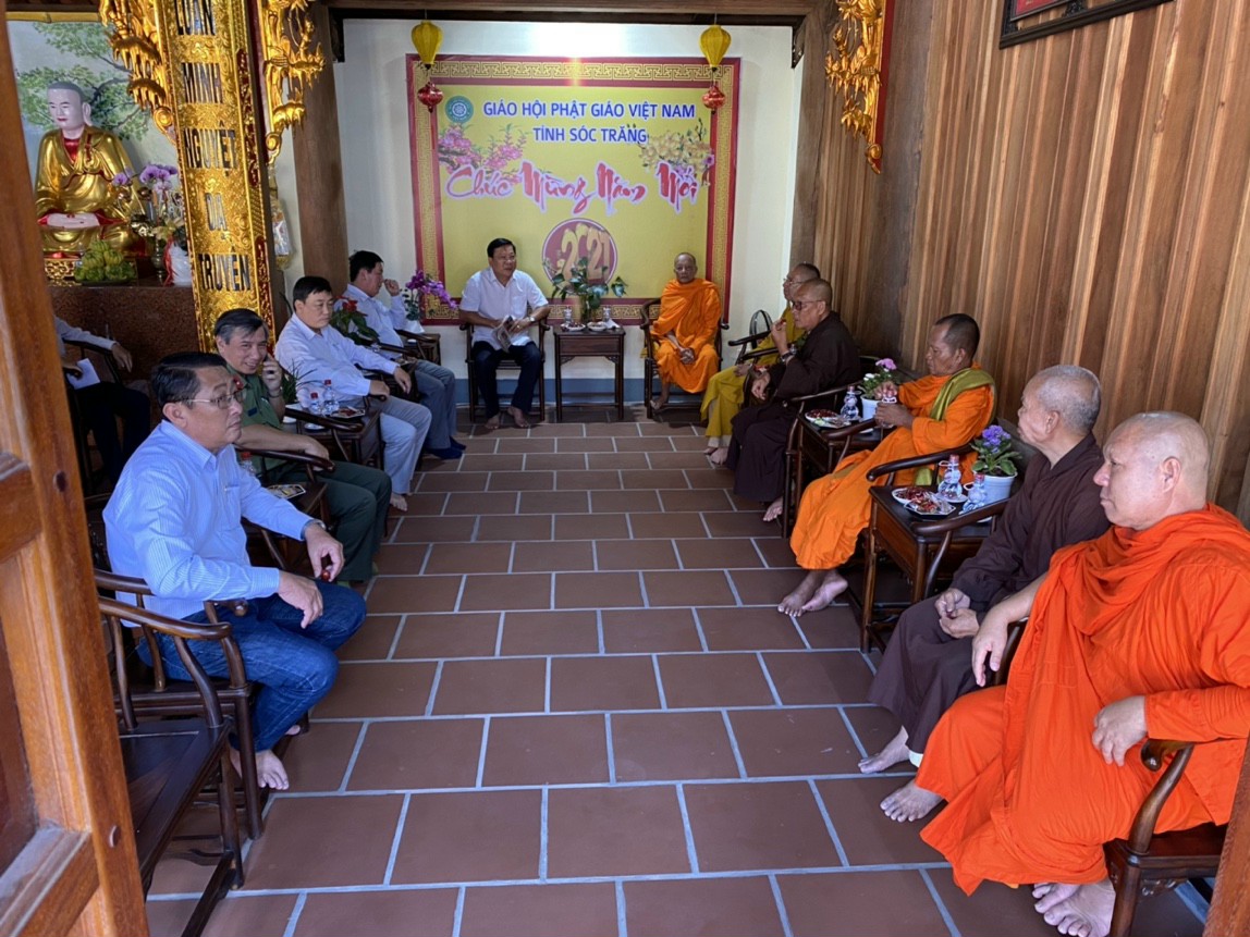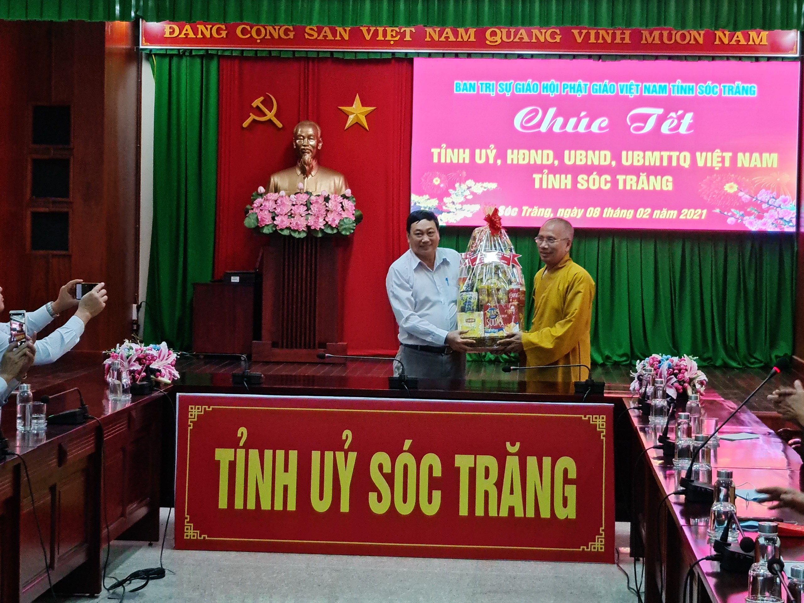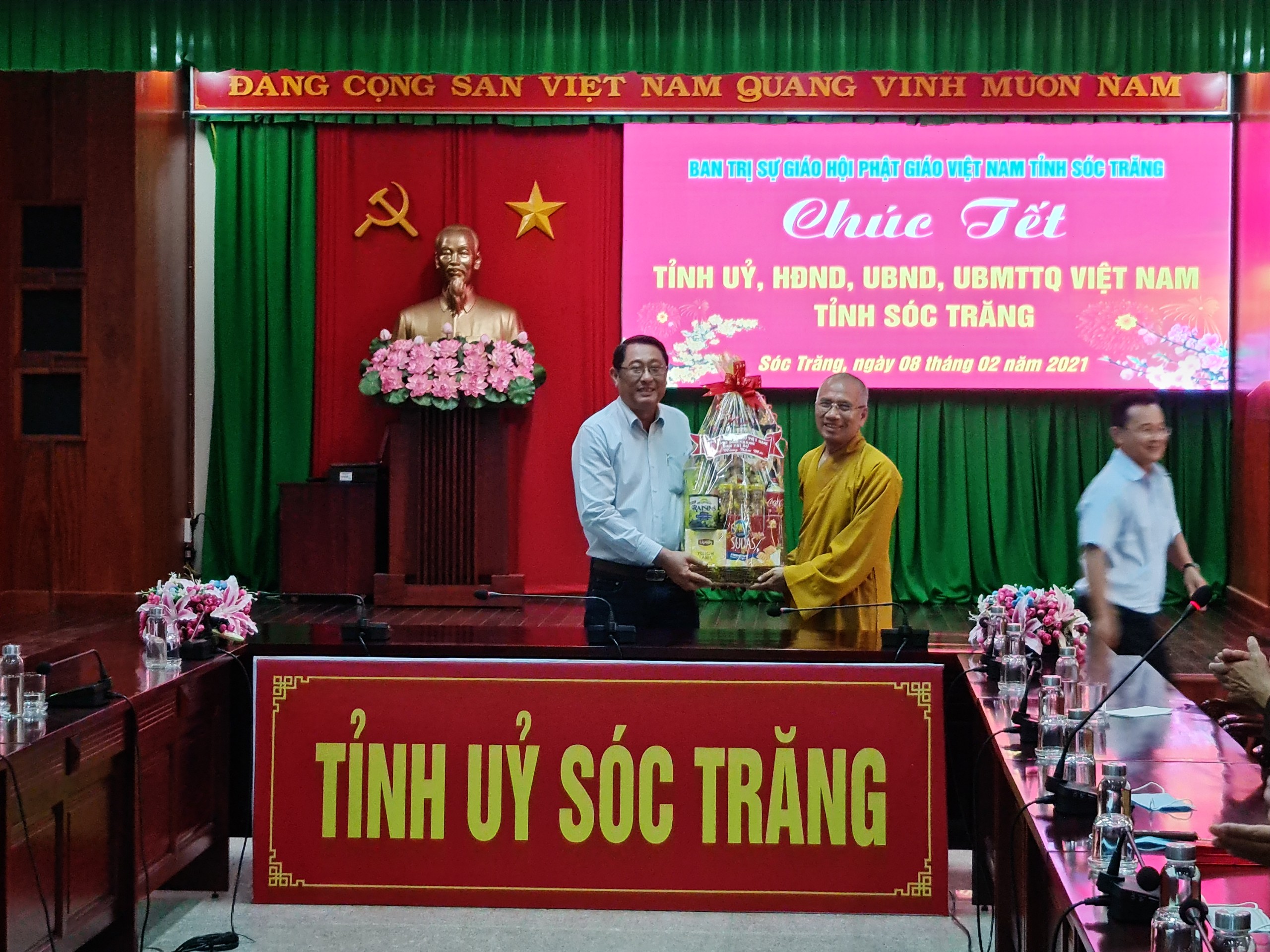 PSO - Trưa ngày 08/02/2021 (nhằm ngày 27/12 năm Canh Tý) tại trụ sở Tỉnh ủy (số 2, Trần Phú, TP.Sóc Trăng) phái đoàn Ban Thường trực BTS GHPGVN tỉnh Sóc Trăng do HT.Tăng Nô - Ủy viên Thường trực HĐTS, Phó Ban Kiểm Soát TƯ, Trưởng BTS Phật giáo tỉnh làm Trưởng đoàn đã đến thăm và chúc tết quý cơ quan: Tỉnh ủy, HĐND, UBND, UB MTTQVN tỉnh Sóc Trăng.