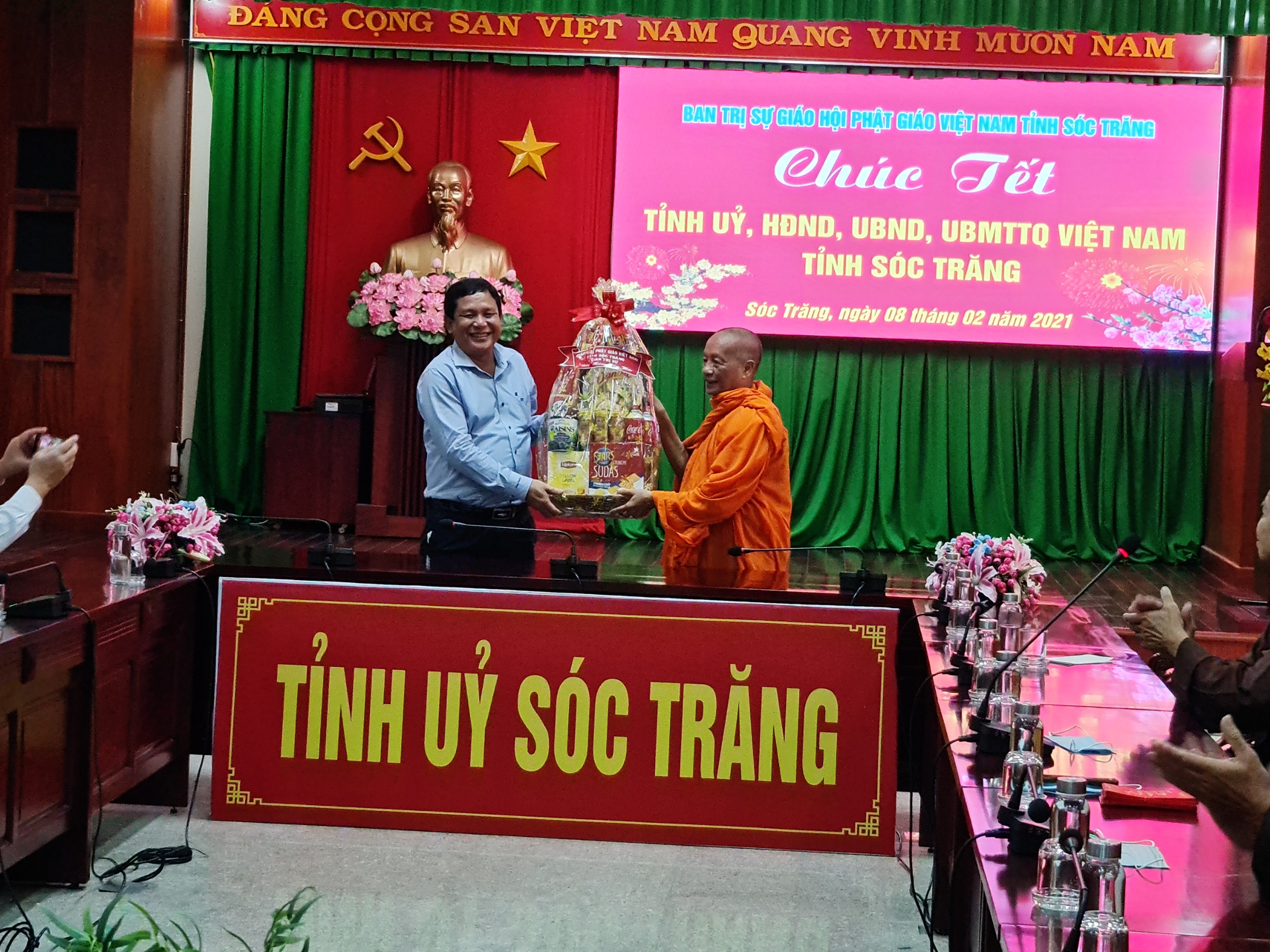 HT.Tăng Nô -UV Thường trực HĐTS, Phó Ban Kiểm soát TƯ, Trưởng BTS Phật giáo tỉnh tặng quà chúc tết Tỉnh ủy Sóc Trăng