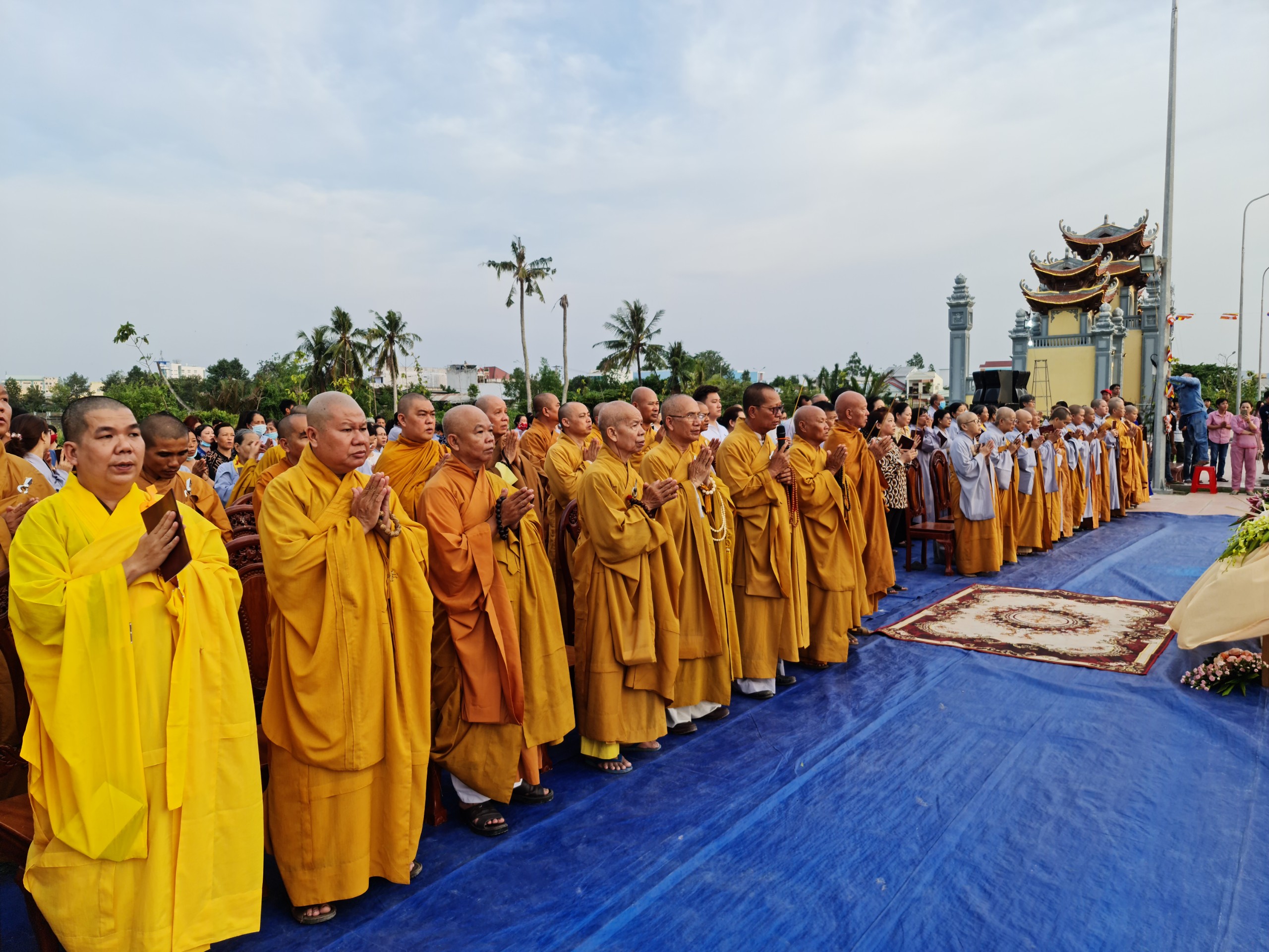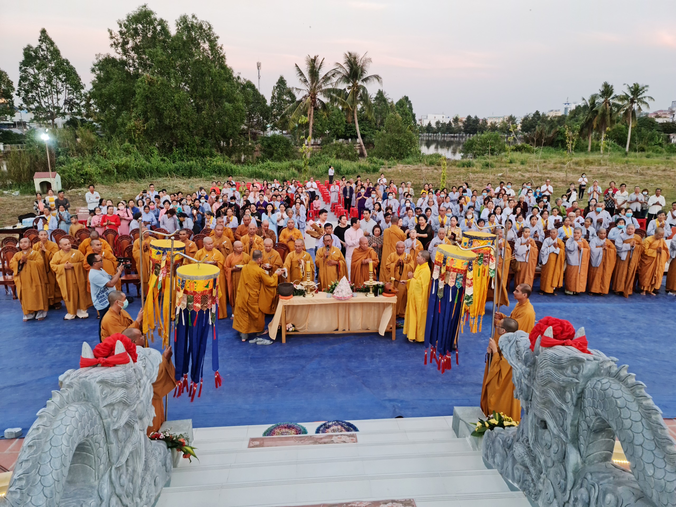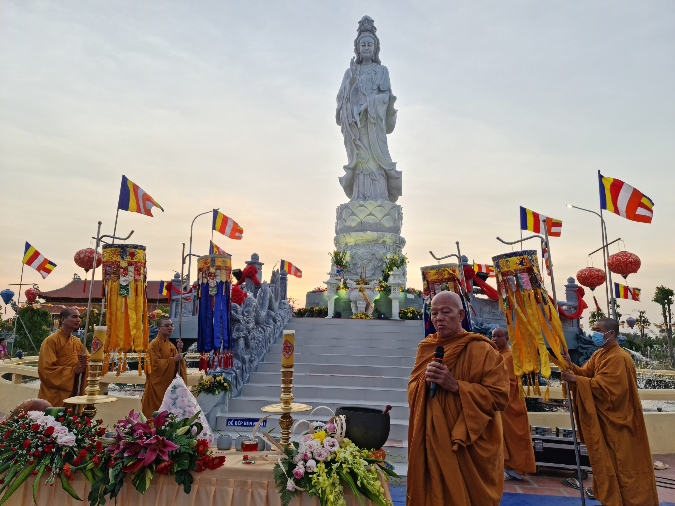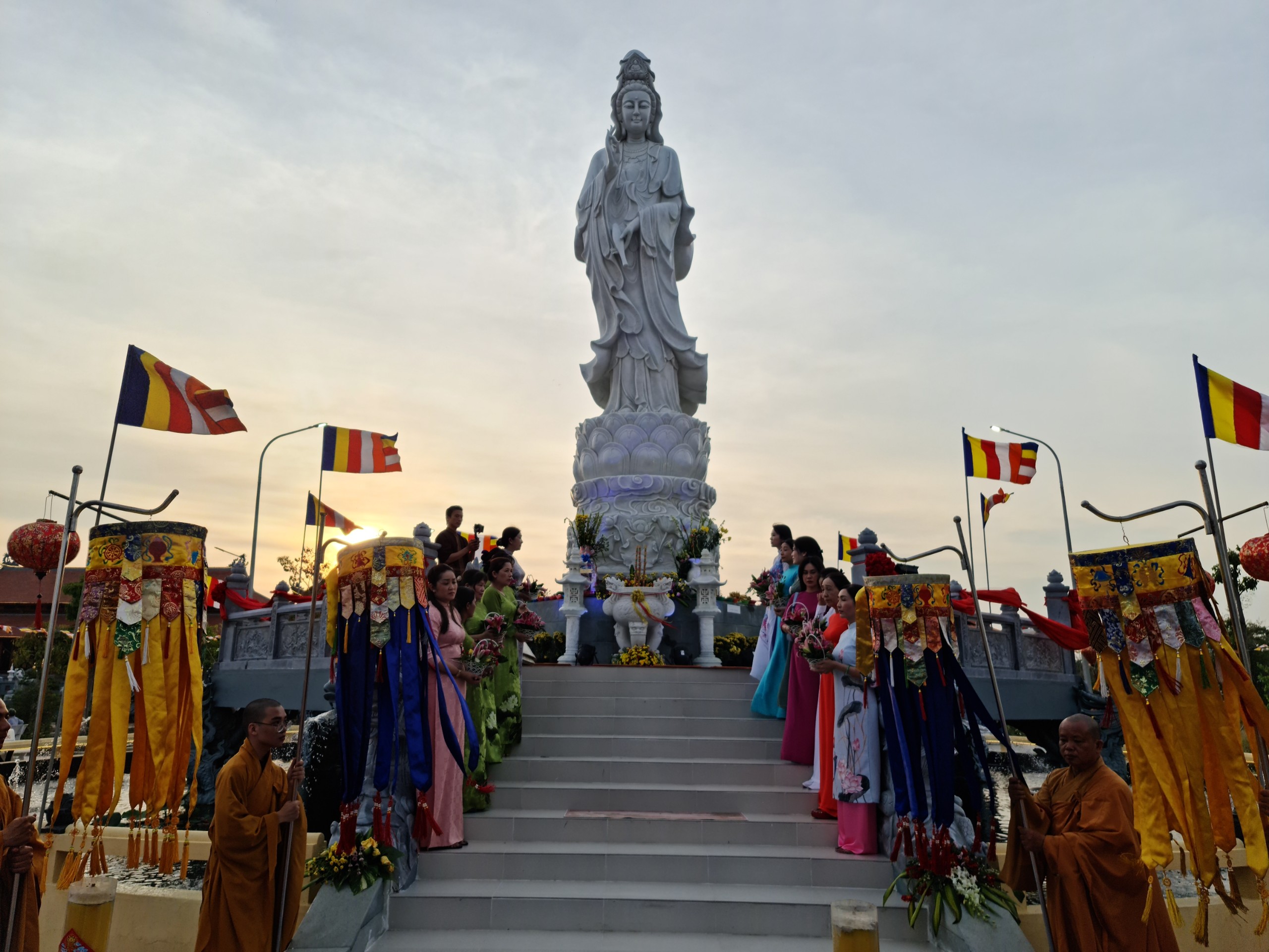 Cùng ngày, ĐĐ.Thích Thiện Nguyện - Trụ trì thiền viện Trúc Lâm Sóc Trăng cùng bổn đạo Phật tử cung thỉnh chư Tôn đức Tăng Ni cử hành lễ sái tịnh, an vị tôn tượng Bồ tát Quán Thế Âm.