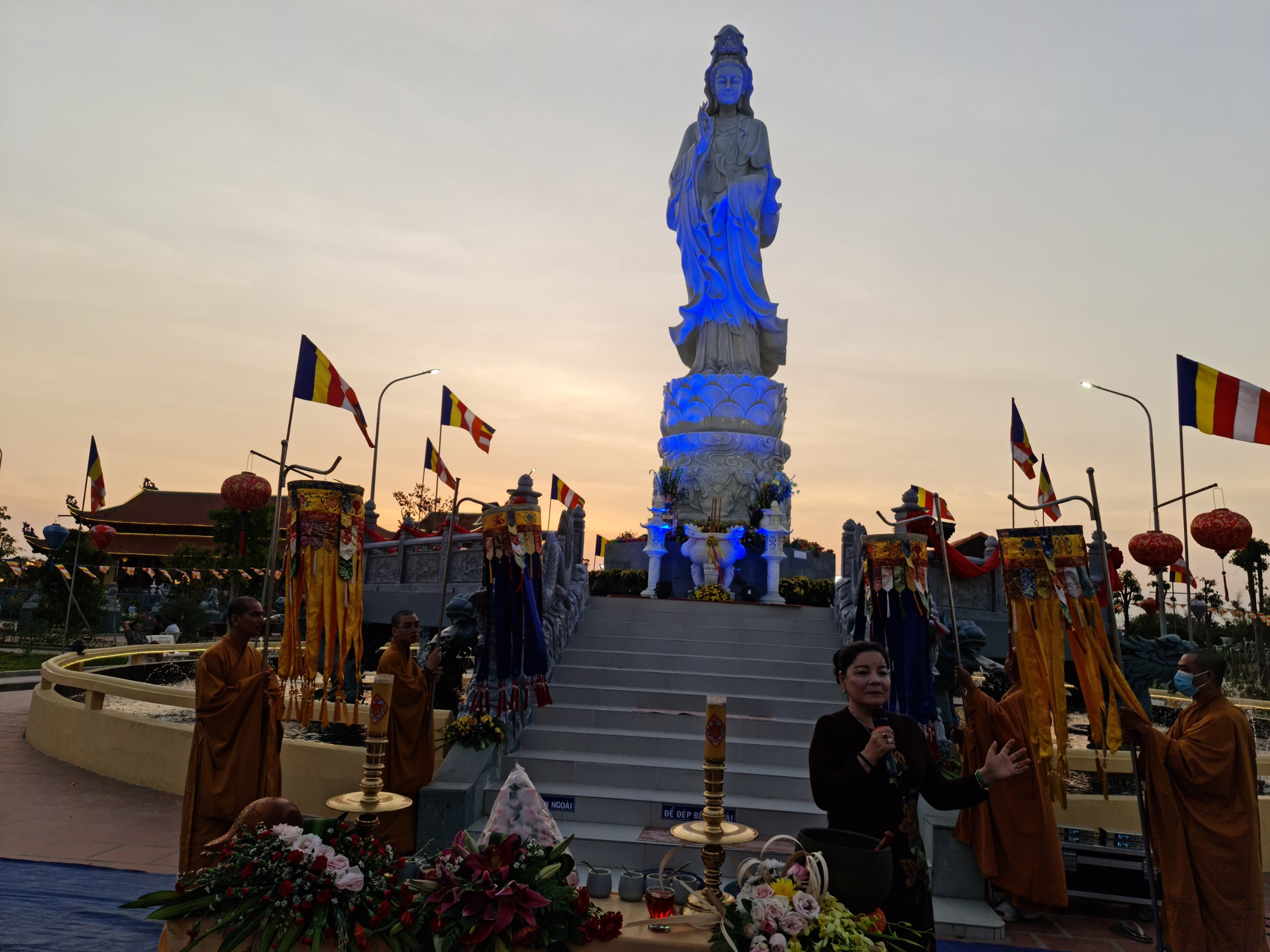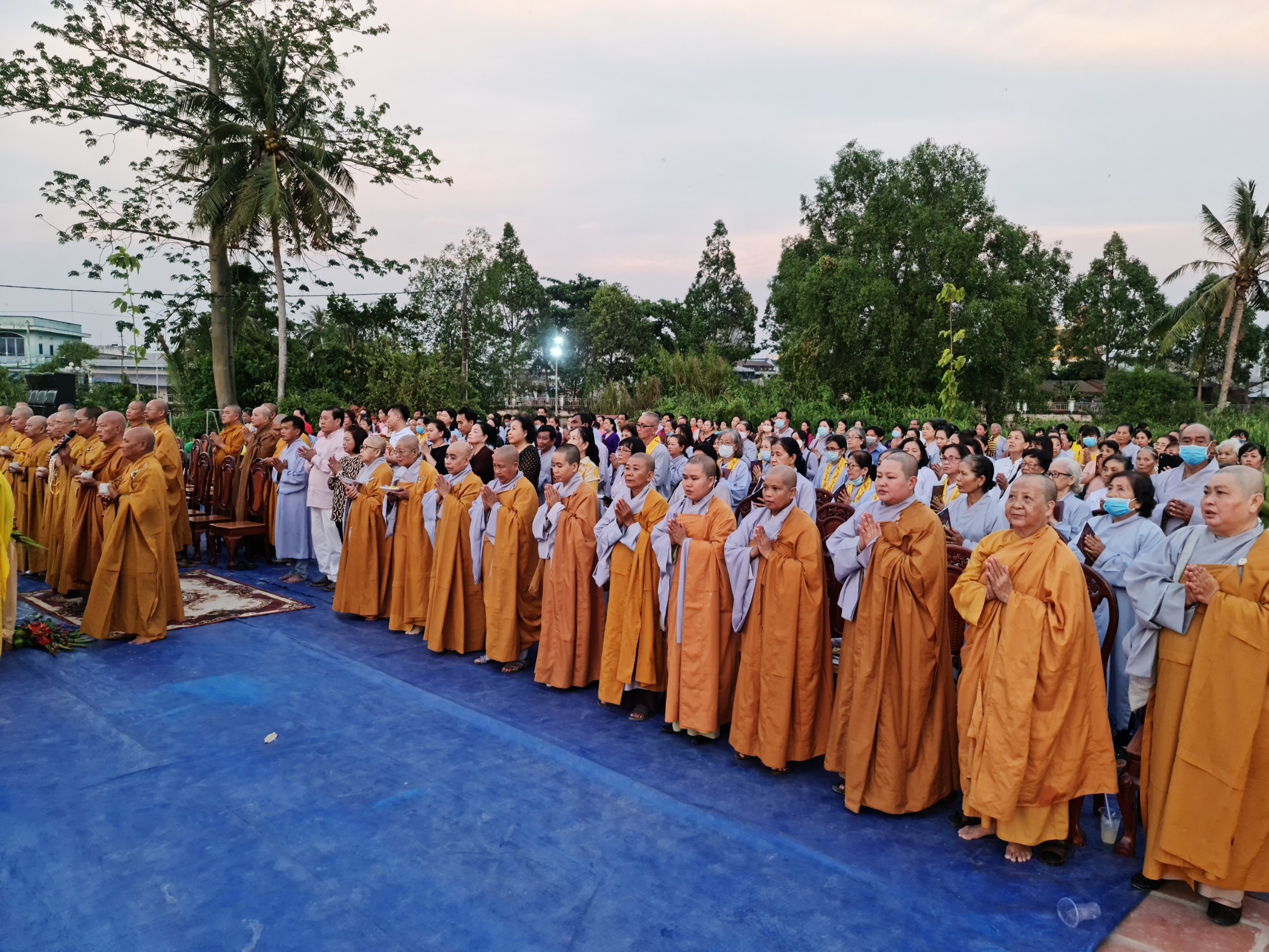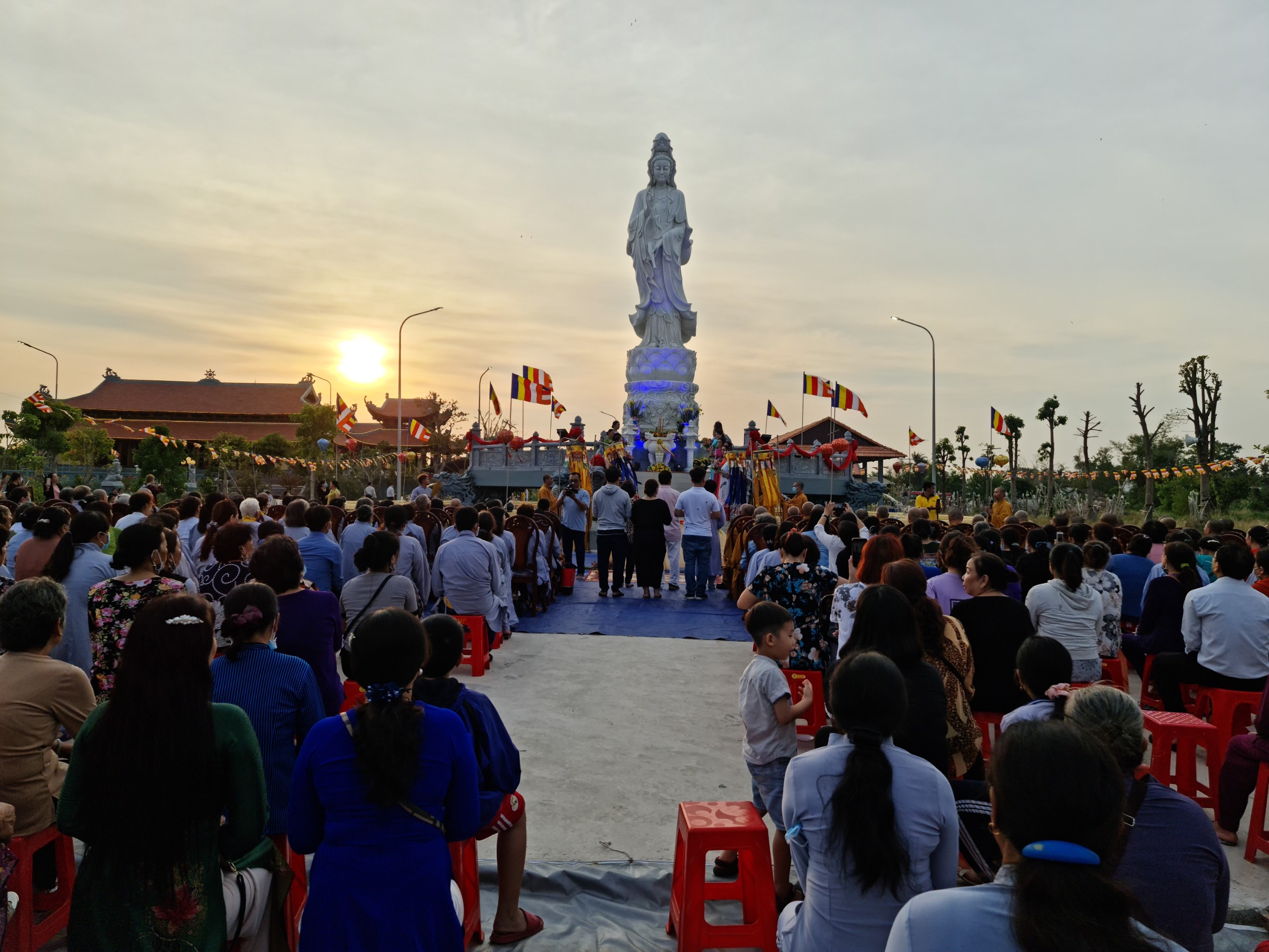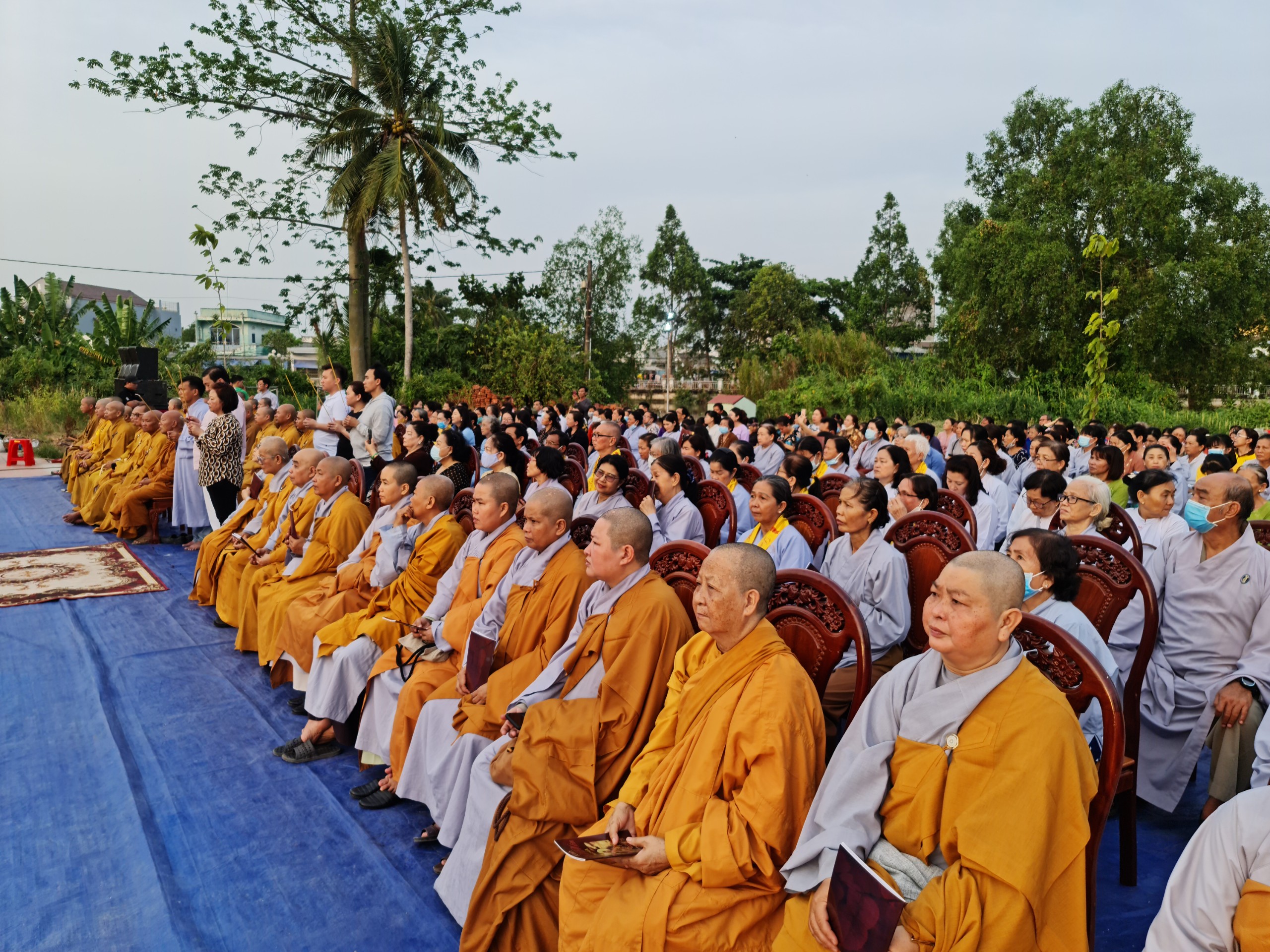 Cùng ngày, ĐĐ.Thích Thiện Nguyện - Trụ trì thiền viện Trúc Lâm Sóc Trăng cùng bổn đạo Phật tử cung thỉnh chư Tôn đức Tăng Ni cử hành lễ sái tịnh, an vị tôn tượng Bồ tát Quán Thế Âm.