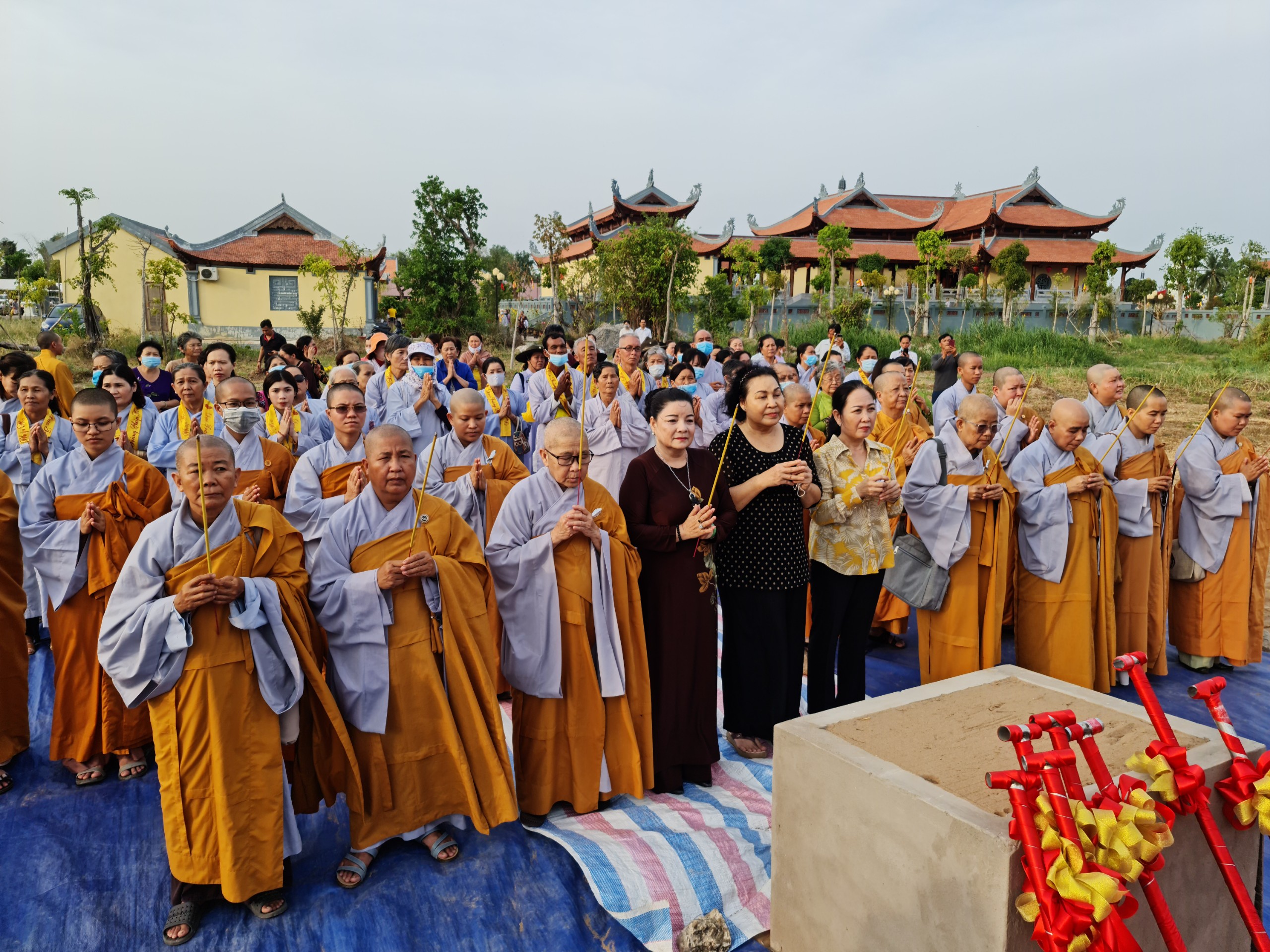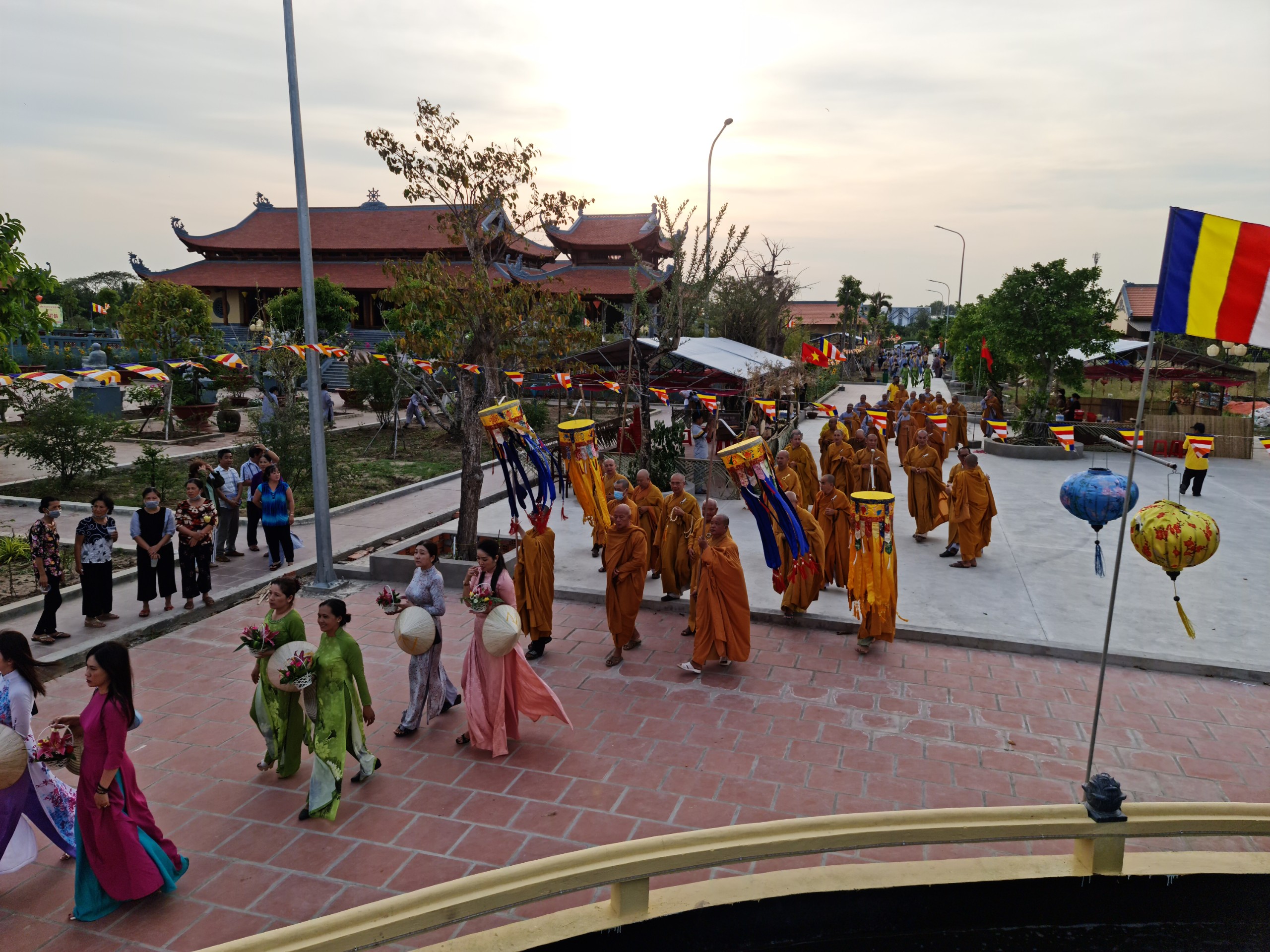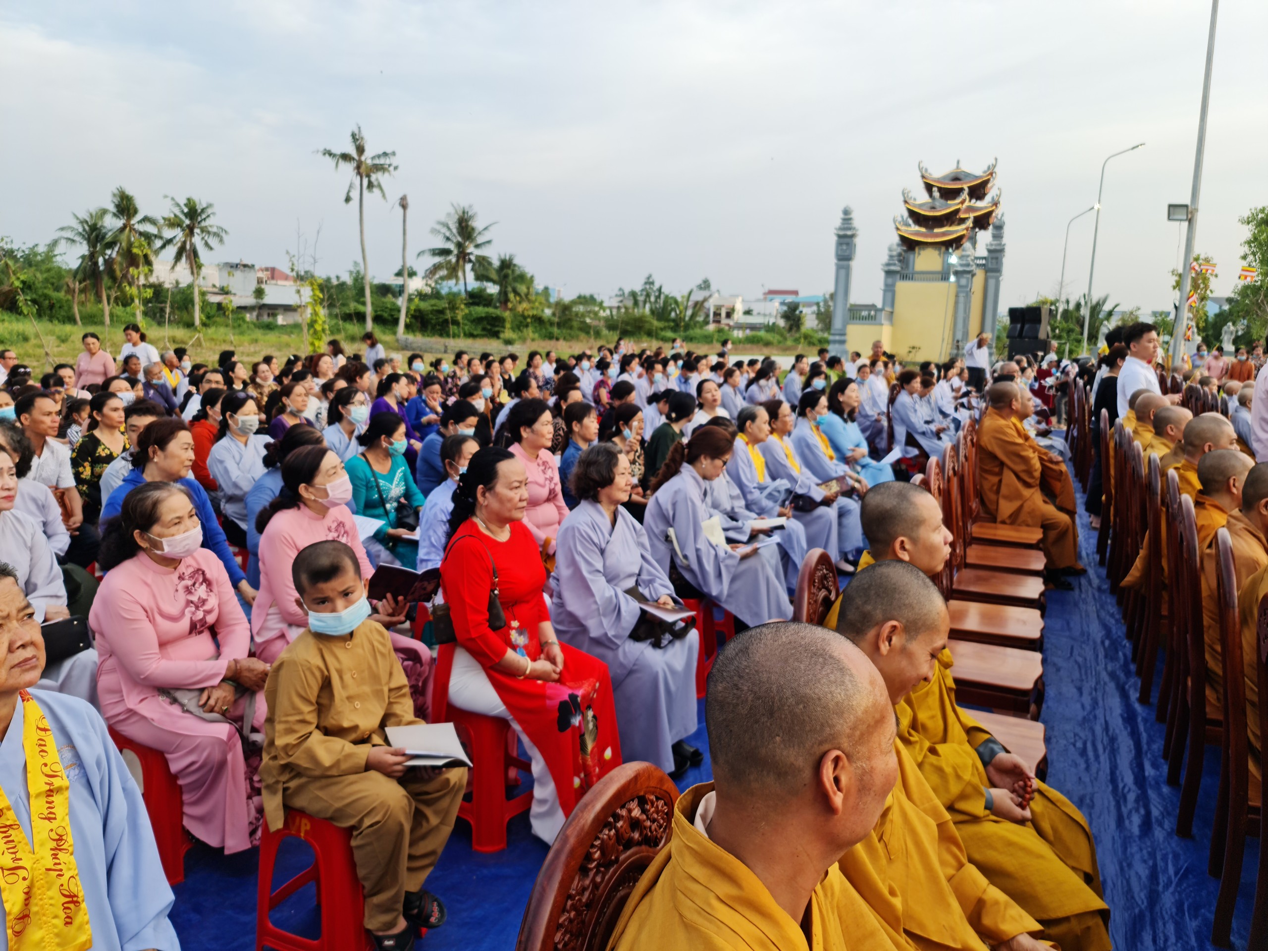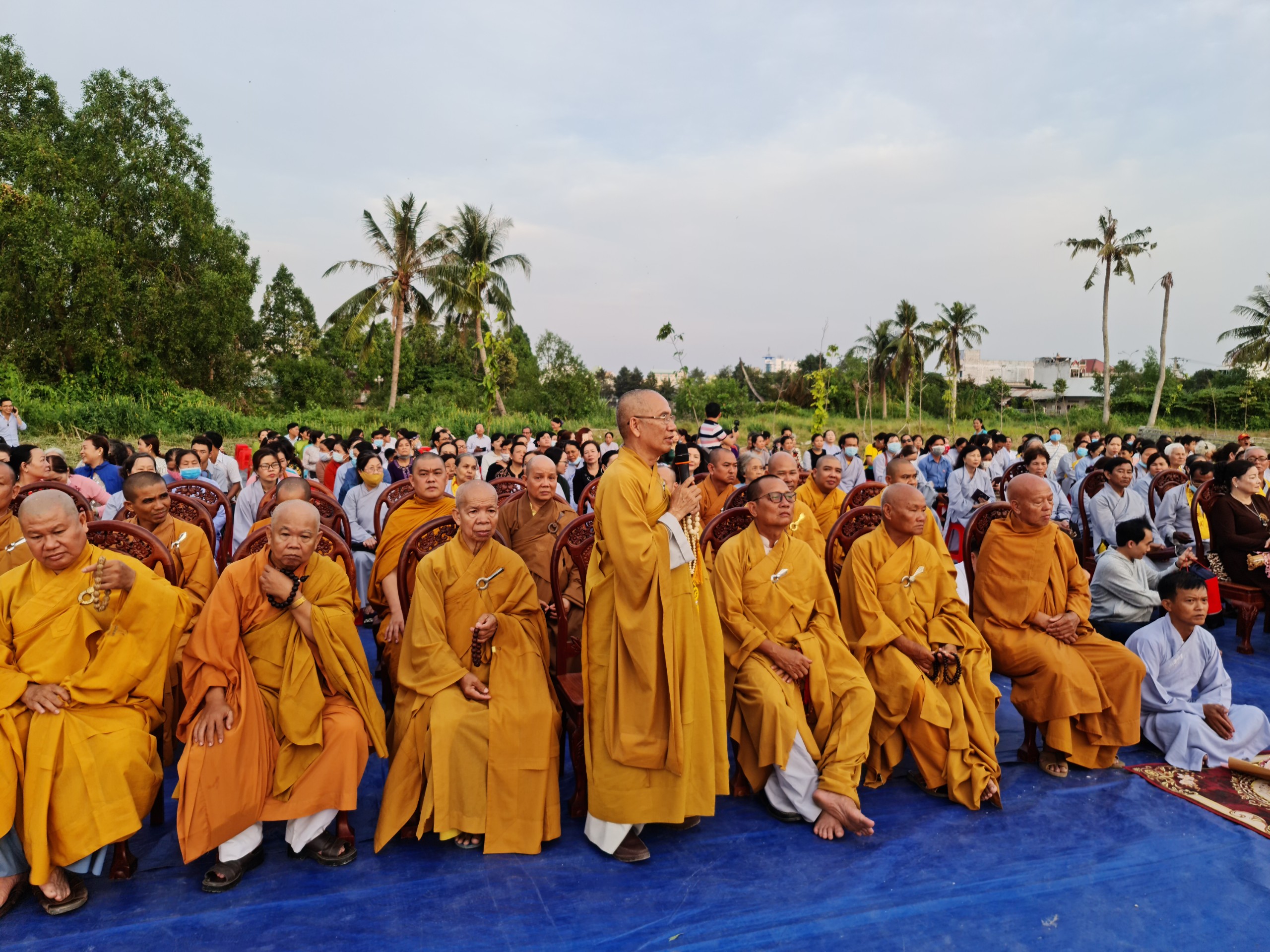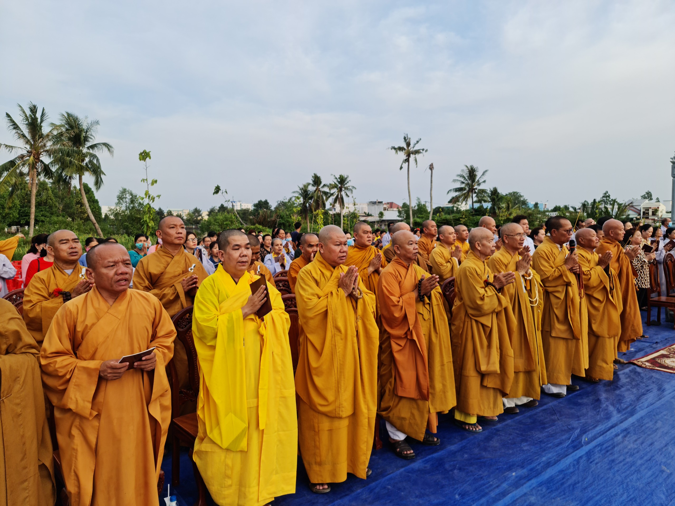 Cùng ngày, ĐĐ.Thích Thiện Nguyện - Trụ trì thiền viện Trúc Lâm Sóc Trăng cùng bổn đạo Phật tử cung thỉnh chư Tôn đức Tăng Ni cử hành lễ sái tịnh, an vị tôn tượng Bồ tát Quán Thế Âm.
