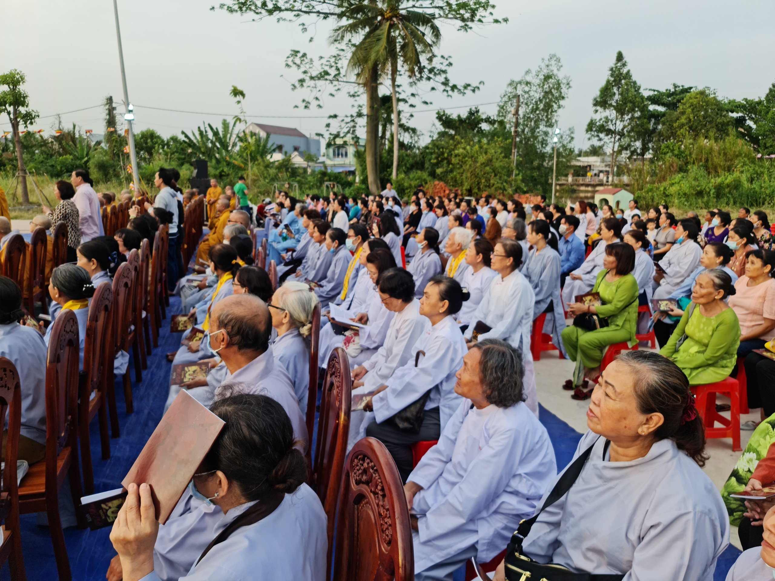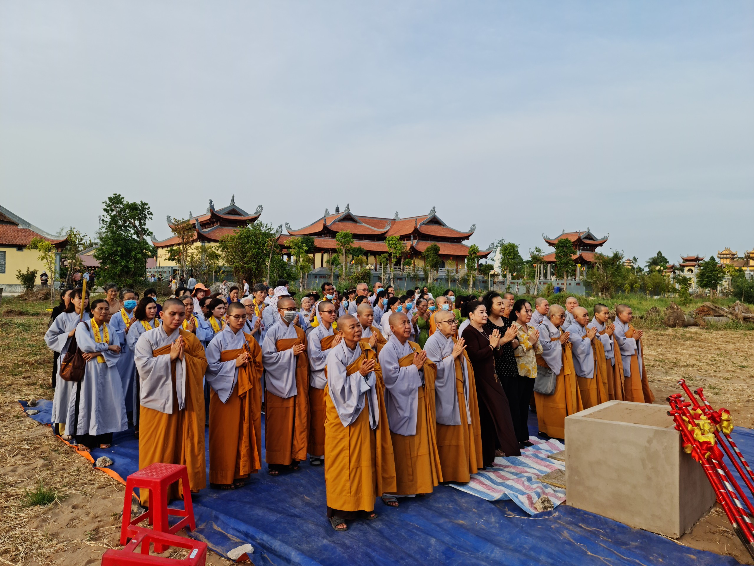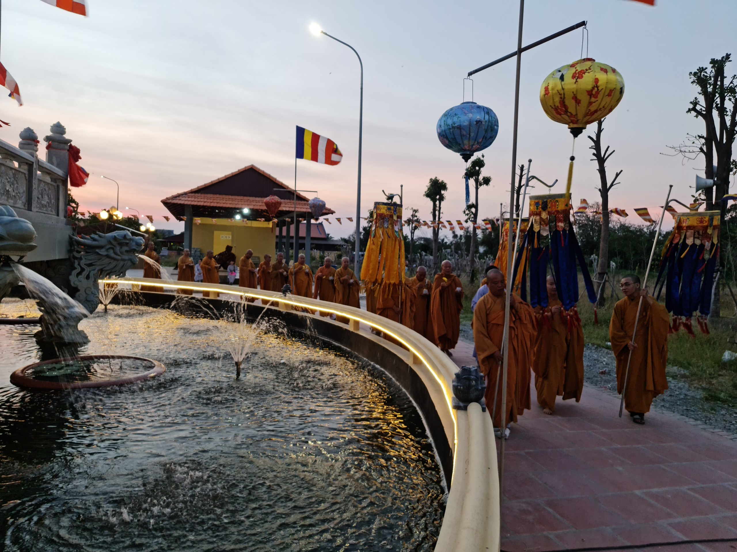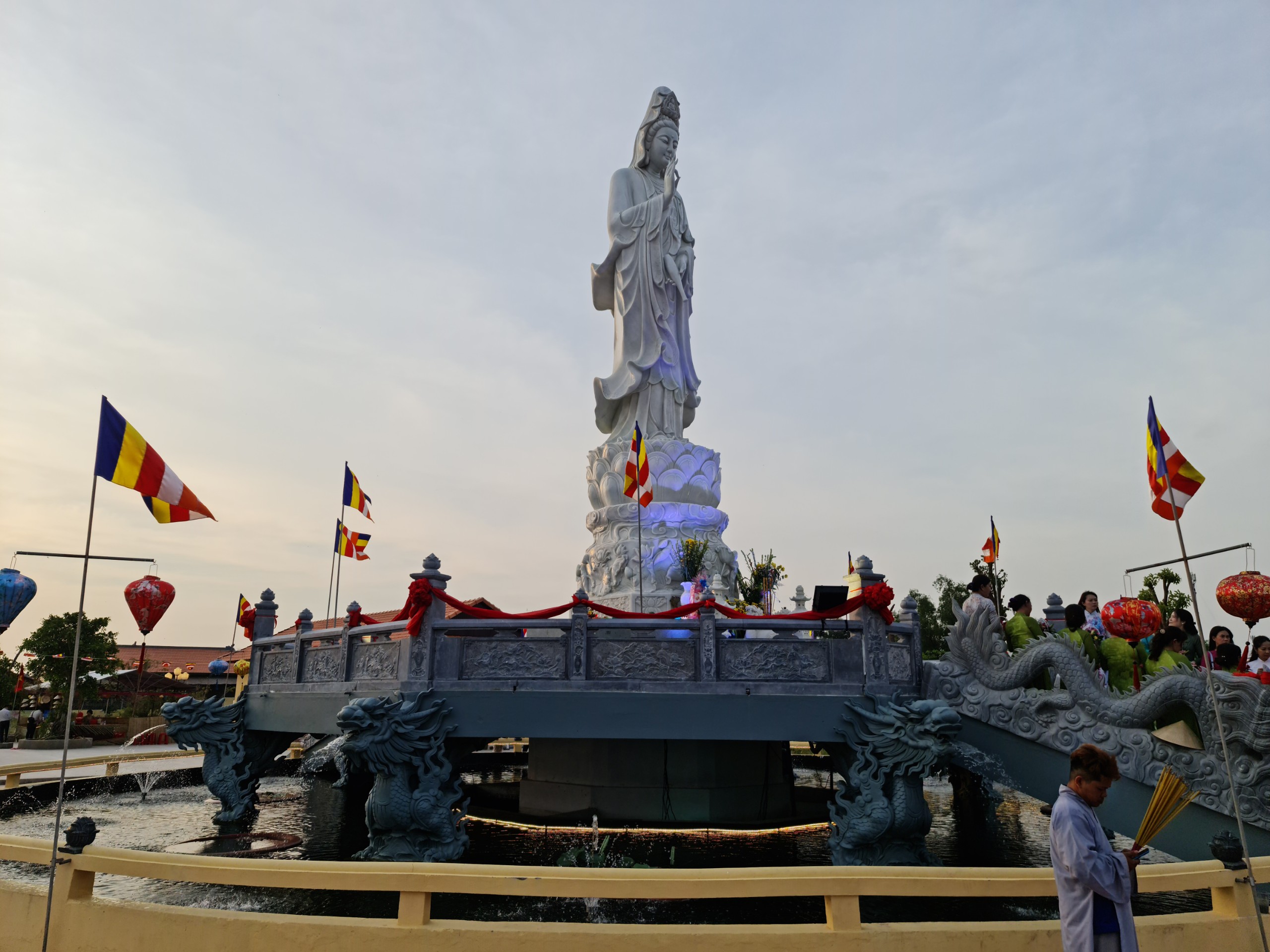 Cùng ngày, ĐĐ.Thích Thiện Nguyện - Trụ trì thiền viện Trúc Lâm Sóc Trăng cùng bổn đạo Phật tử cung thỉnh chư Tôn đức Tăng Ni cử hành lễ sái tịnh, an vị tôn tượng Bồ tát Quán Thế Âm.
