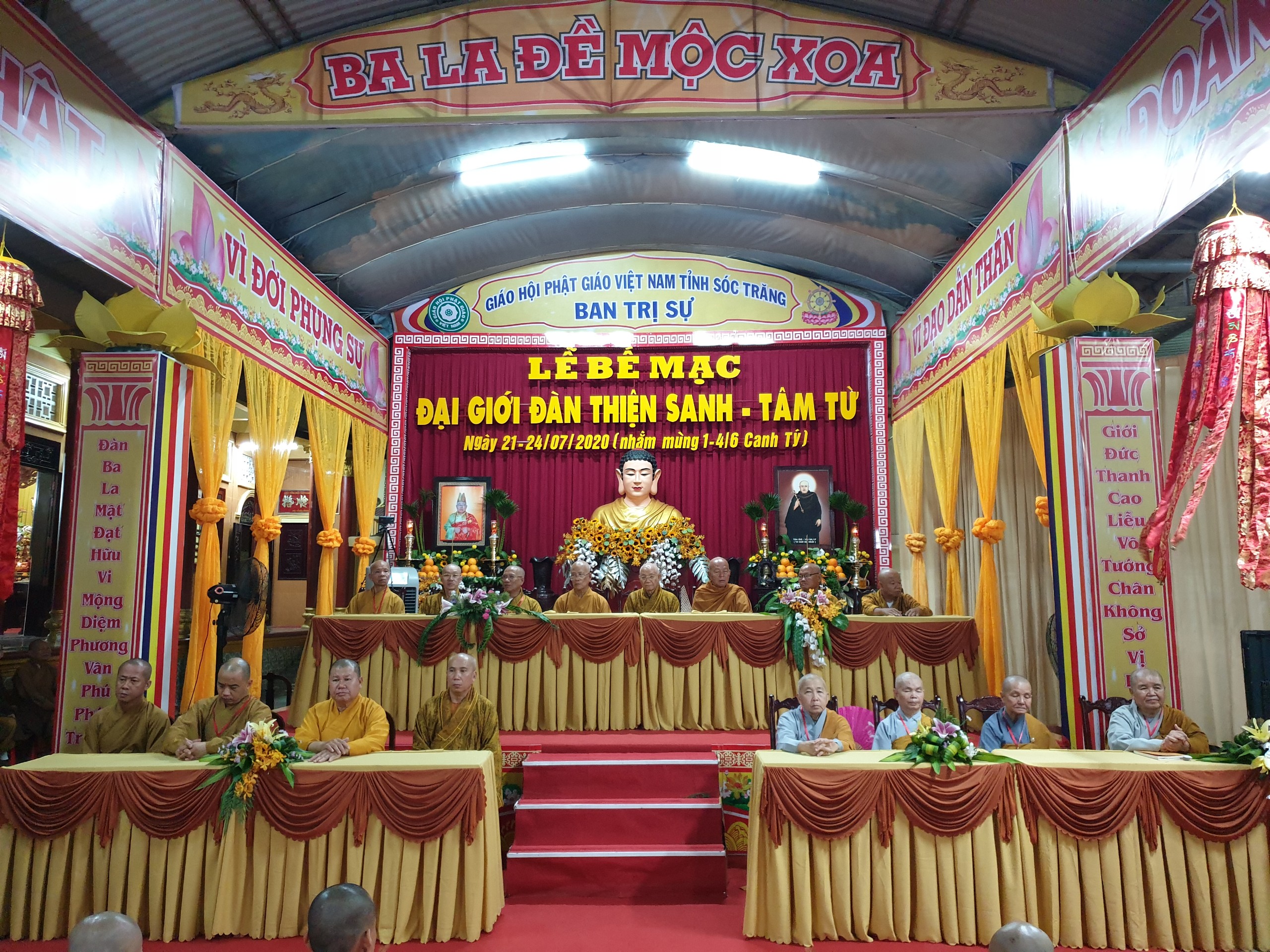 PSO - Tối ngày 23/07/2020 (nhằm ngày 3/6 năm Canh Tý) tại chùa Khánh Sơn - Văn phòng BTS GHPGVN tỉnh Sóc Trăng (30 Ngô Gia Tự, phường 6, TP.Sóc Trăng) Ban Thường trực BTS GHPGVN tỉnh và Ban Tổ chức Đại giới đàn cùng các Giới tử trang nghiêm cử hành lễ Bế mạc Đại giới đàn "Thiện Sanh - Tâm Từ" sau 3 ngày tổ chức.