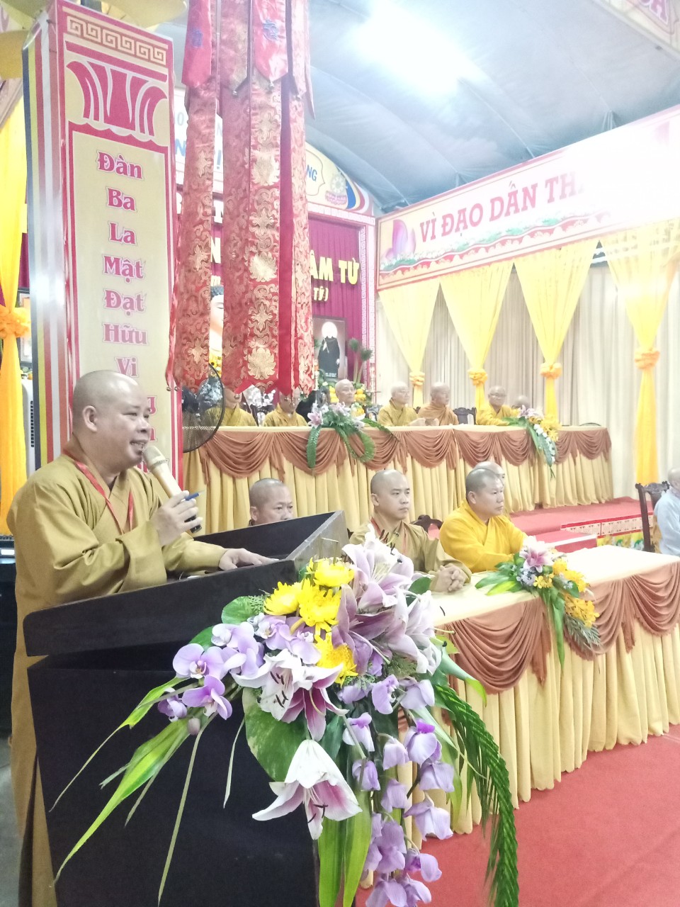 TT.Thích Thiện Thạnh - Phó BTS, Trưởng ban Tăng sự Phật giáo tỉnh phát biểu cảm tạ, thành kính cảm niệm công đức chư tôn giáo phẩm HĐCM, HĐTS, chư tôn giáo phẩm tham gia Hội đồng Thập sư, chư tôn đức tham gia Ban tổ chức, ngoại hộ cúng dường, chính quyền các cấp, quý Phật tử xa gần đã nhiệt tình hỗ trợ, giúp đỡ để công tác tổ chức Đại giới đàn thành công viên mãn.
