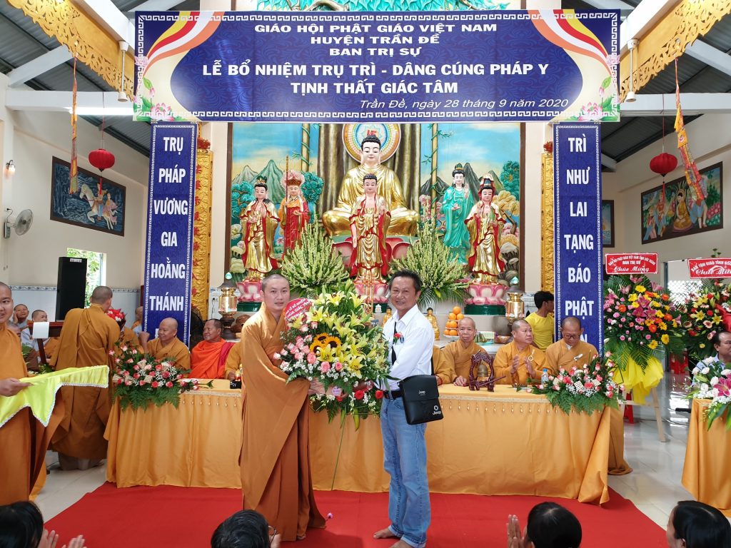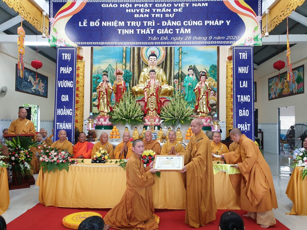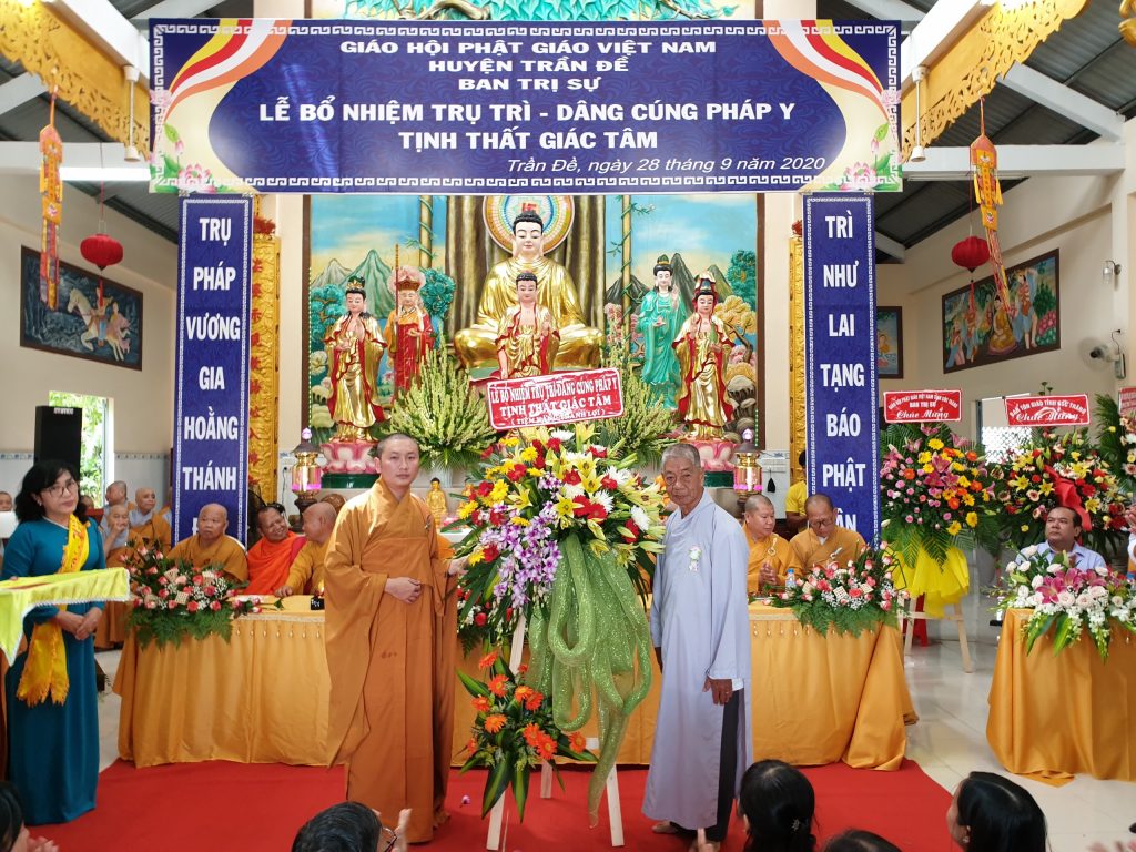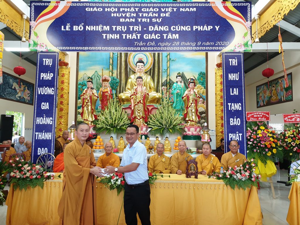 TT.Thích Thiện Thạnh - Phó BTS, Trưởng ban Tăng sự Phật giáo tỉnh trao Quyết định Bổ nhiệm Trụ trì tịnh thất Giác TâmĐược sự đồng thuận của Sở Nội vụ tỉnh Sóc Trăng, xét đề nghị của BTS Phật giáo huyện Trần Đề; đồng thời thể theo duy nguyện của cố Sư cô Thích Nữ Chơn Đạt, Ban Thường trực BTS GHPGVN tỉnh Sóc Trăng ra Quyết định Bổ nhiệm Đại đức Thích Minh Bảo, sinh năm 1990 làm Trụ trì tịnh thất Giác Tâm.