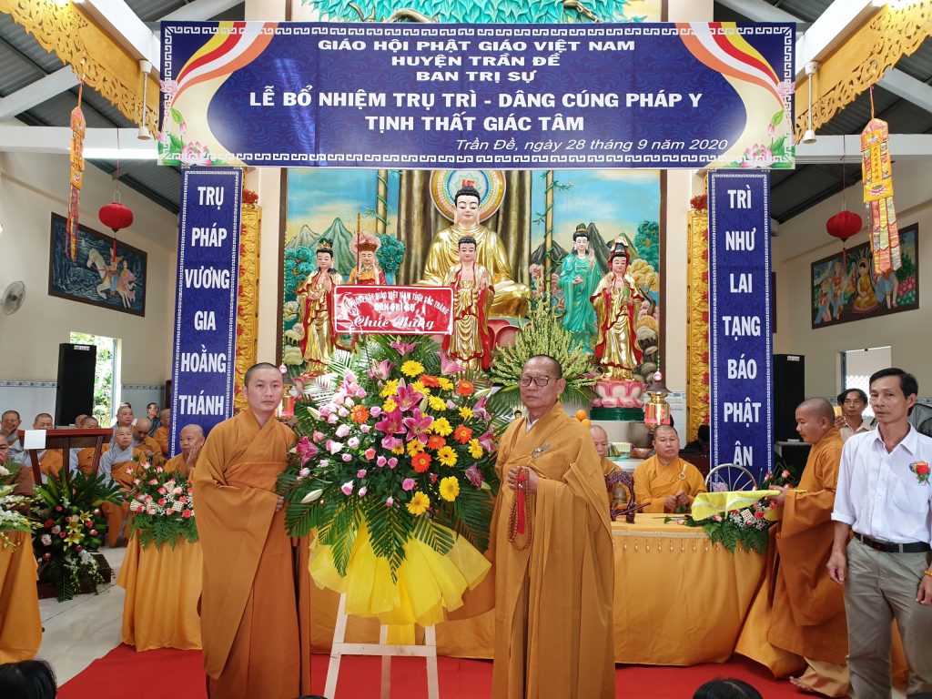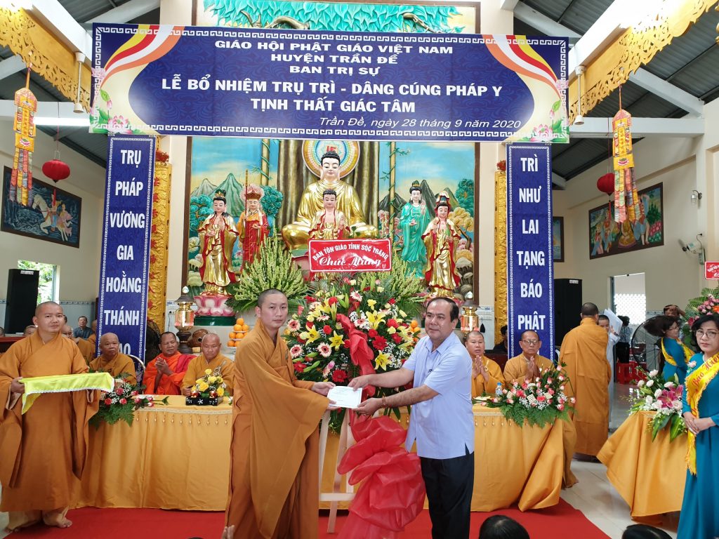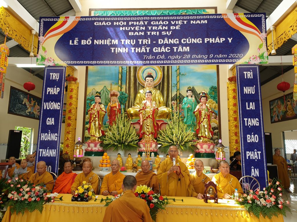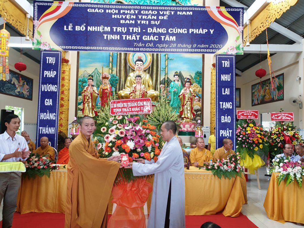 TT.Thích Thiện Thạnh - Phó BTS, Trưởng ban Tăng sự Phật giáo tỉnh trao Quyết định Bổ nhiệm Trụ trì tịnh thất Giác TâmĐược sự đồng thuận của Sở Nội vụ tỉnh Sóc Trăng, xét đề nghị của BTS Phật giáo huyện Trần Đề; đồng thời thể theo duy nguyện của cố Sư cô Thích Nữ Chơn Đạt, Ban Thường trực BTS GHPGVN tỉnh Sóc Trăng ra Quyết định Bổ nhiệm Đại đức Thích Minh Bảo, sinh năm 1990 làm Trụ trì tịnh thất Giác Tâm.