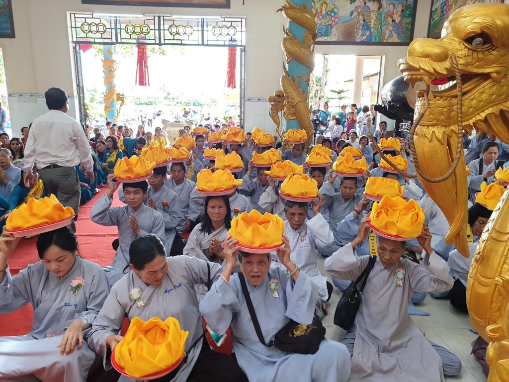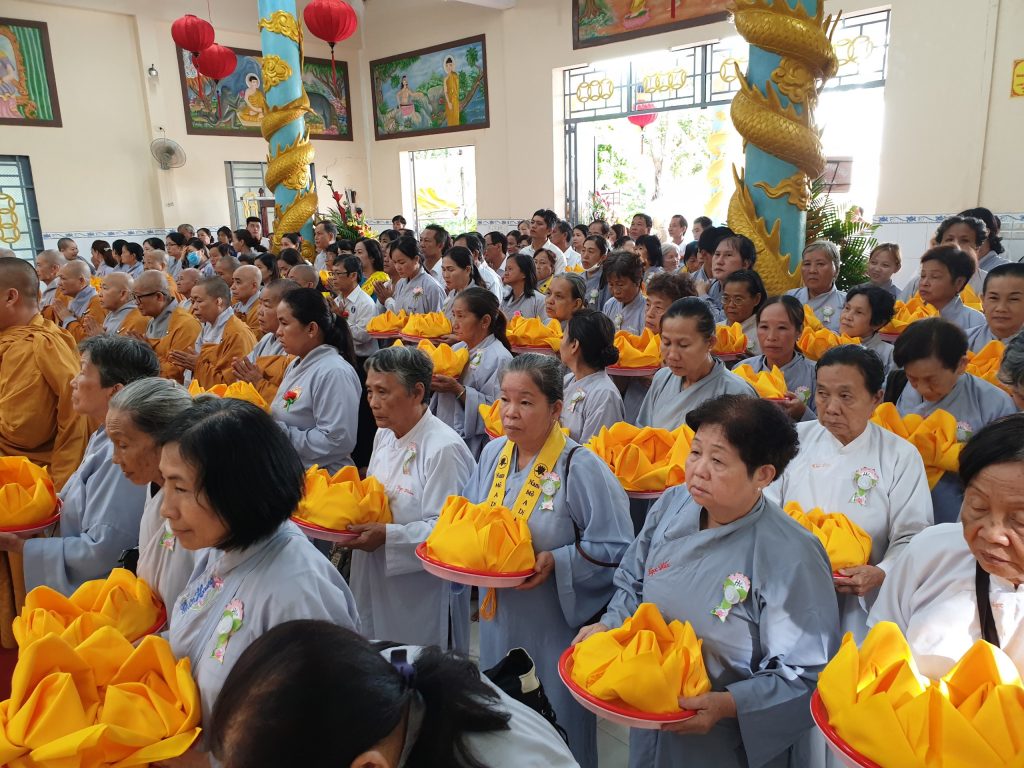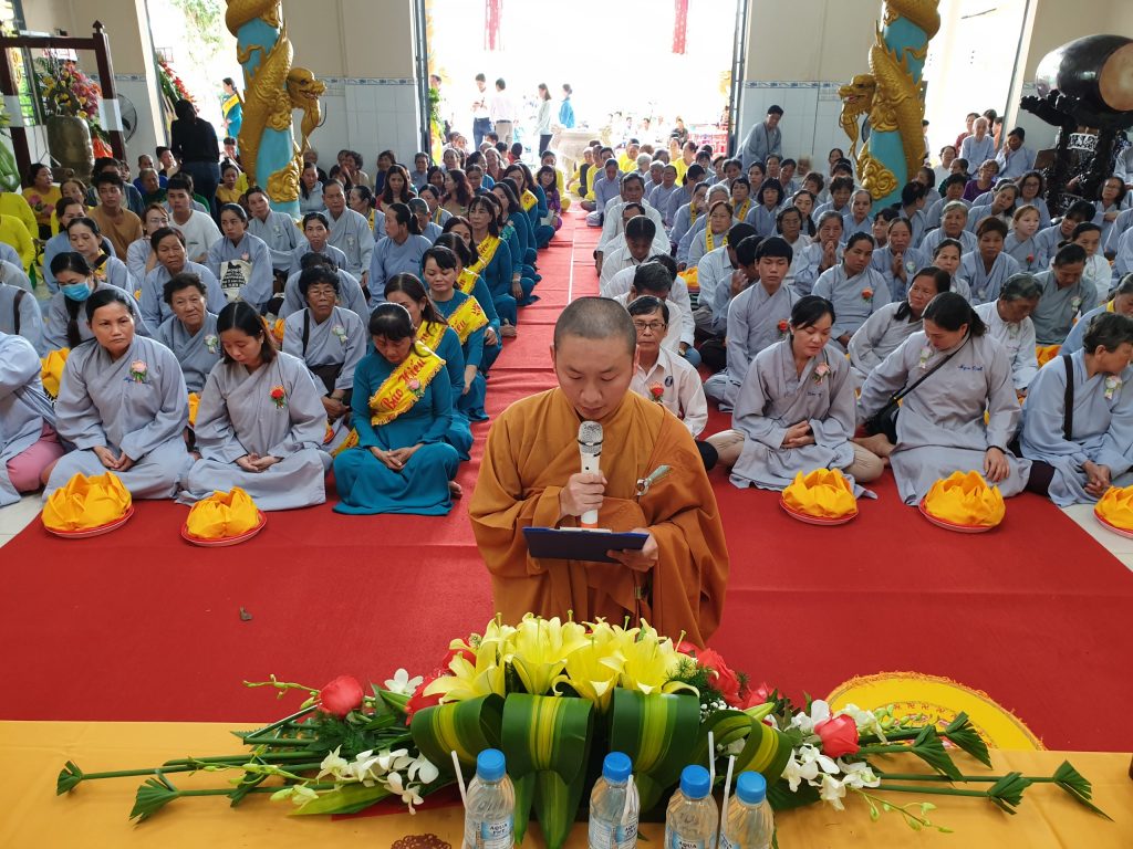Phần cuối của buổi lễ, HT.Thích Minh Thành và đại chúng đồng hiệp tụng bài sám Vu lan, phục nguyện hồi hướng viên mãn.