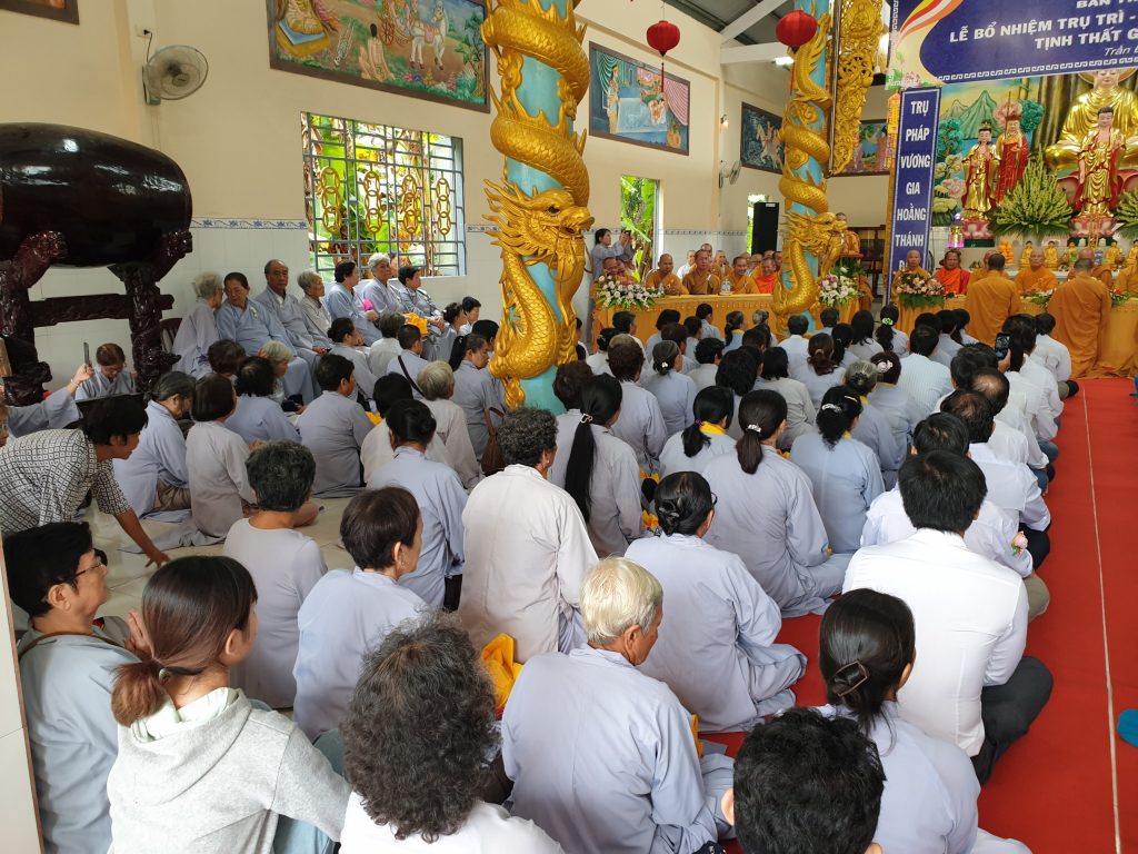 Cư sĩ Thái Trường Chinh phát biểu cảm tưởng và dâng lời tác bạch cúng dường Pháp y.Cư sĩ Thái Trường Chinh đại diện đạo tràng Phật tử phát biểu cảm tưởng và dâng lời tác bạch cúng dường Pháp y lên chư Tôn đức Tăng Ni nhân ngày lễ Bổ nhiệm tân Trụ trì tịnh thất Giác Tâm; với tâm hoan hỷ khi thấy tịnh thất có vị Trụ trì mới để hướng đạo cho hàng Phật tử tại gia tu tập, Phật tử sẽ hết lòng hỗ trợ Đại đức tân Trụ trì hoàn thành các công tác Phật sự.