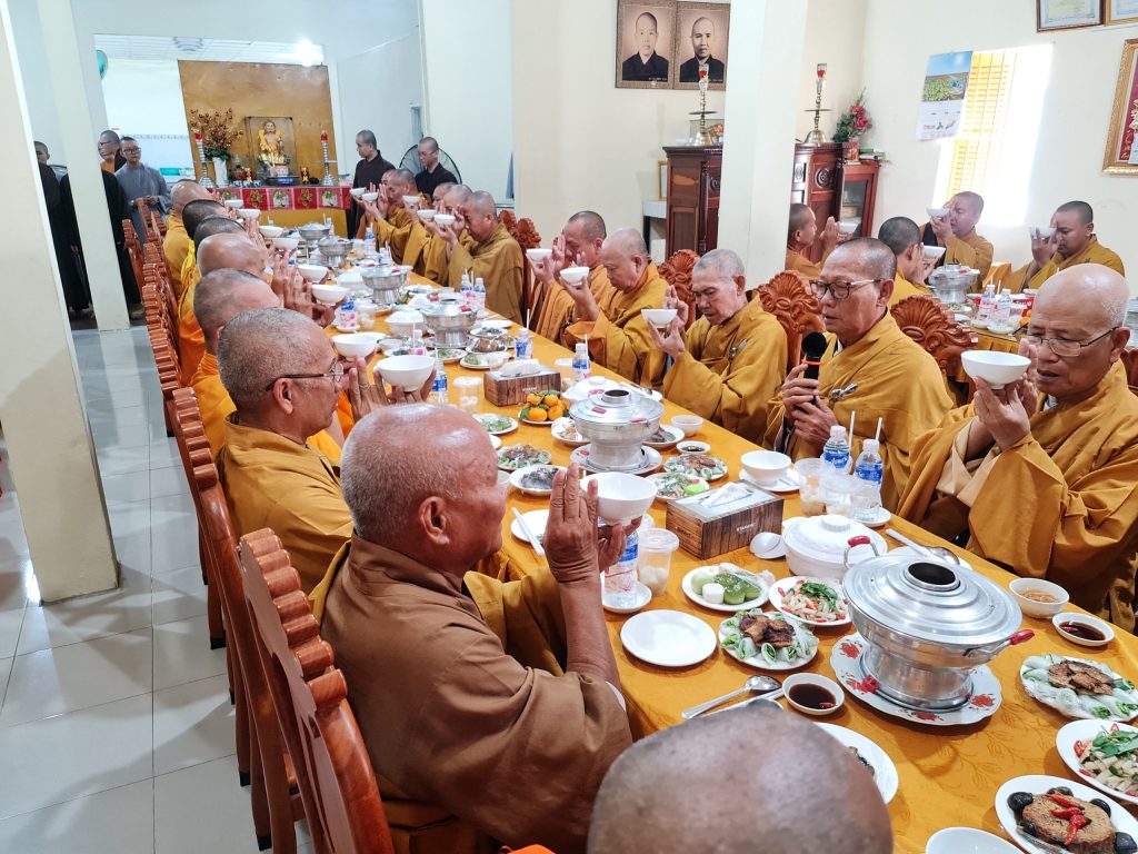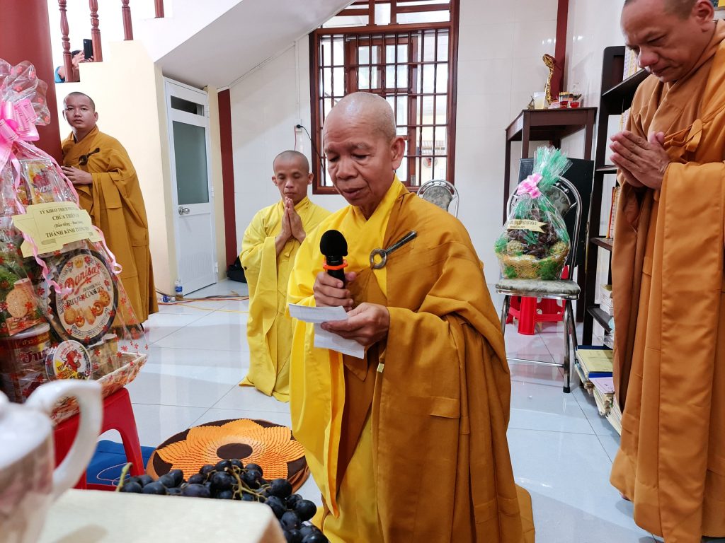 TT.Thích Thiện Thạnh - Phó BTS, Trưởng ban Tăng sự Phật giáo tỉnh Sóc Trăng, Trụ trì chùa Vạn Phước cảm tạ chư Tôn đức Tăng Ni trong buổi lễ.Buổi lễ viên mãn sau nghi thức cúng Quả đường và thọ trai của chư Tôn đức Tăng Ni.