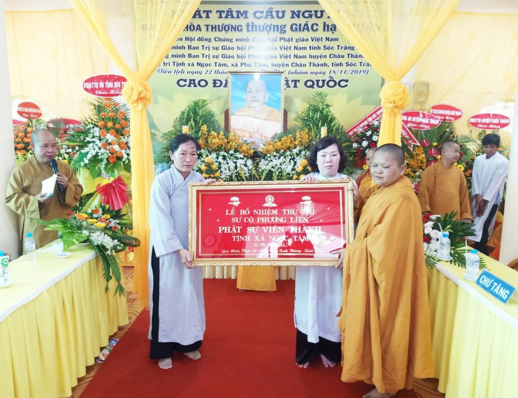 HT.Thích Minh Thành - UV HĐTS, Phó BTS, Trưởng ban Pháp chế Phật giáo tỉnh trao Quyết định bổ nhiệm Tân Trụ trì tịnh xá Ngọc Tâm cho SC.Thích Nữ Phương Liên.ĐĐ.Thích Định Hương - Phó thư ký, Chánh văn phòng BTS Phật giáo tỉnh công bố Quyết định và cung thỉnh HT.Thích Minh Thành - UV HĐTS, Phó BTS, Trưởng ban Pháp chế trao Quyết định và khuôn dấu cho Sư cô Tân Trụ trì tịnh xá Ngọc Tâm.